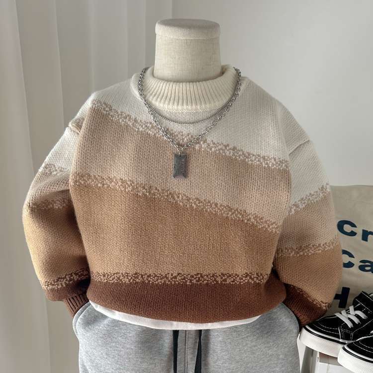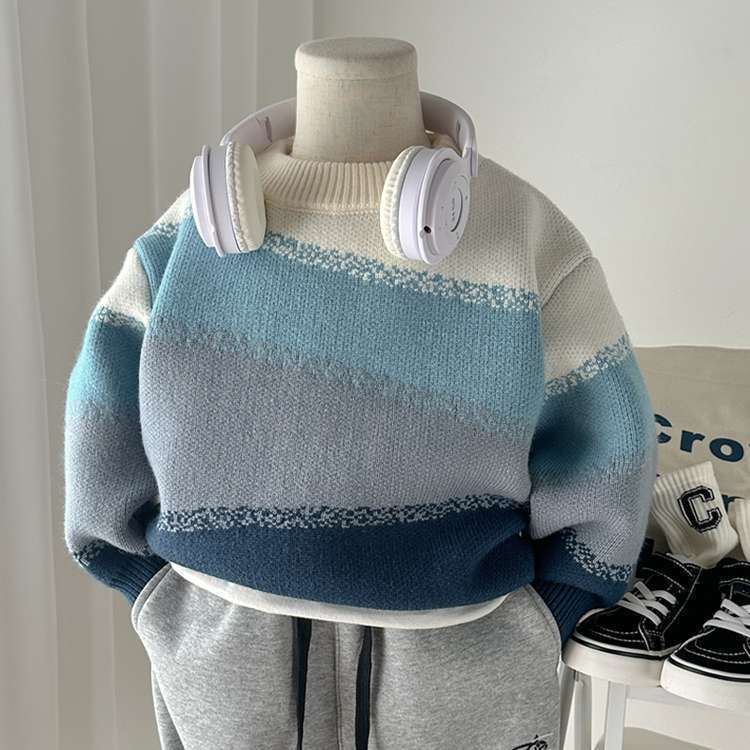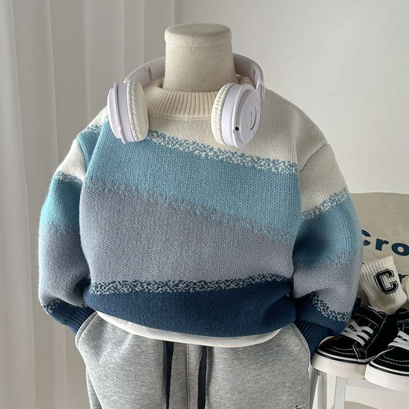 소년 스웨터 가을과 겨울 두꺼운 어린이 니트 베이스 셔츠 크루 넥 풀오버 어린이 소년의 아기 스웨터 핸들스토어 가기