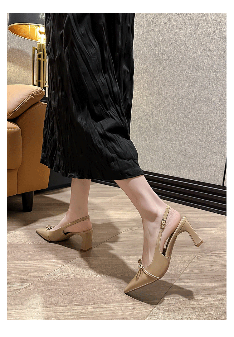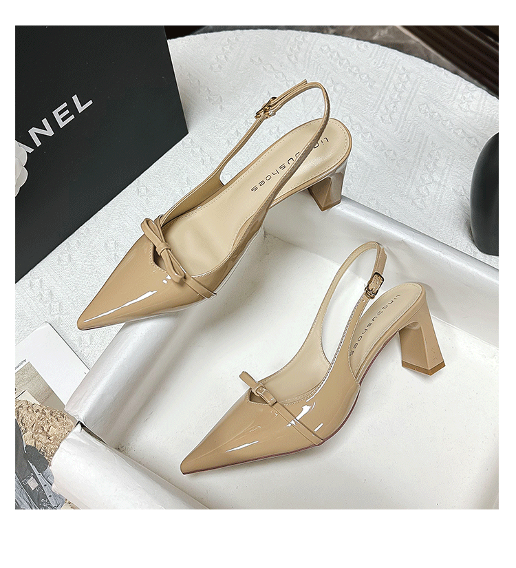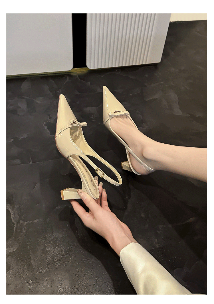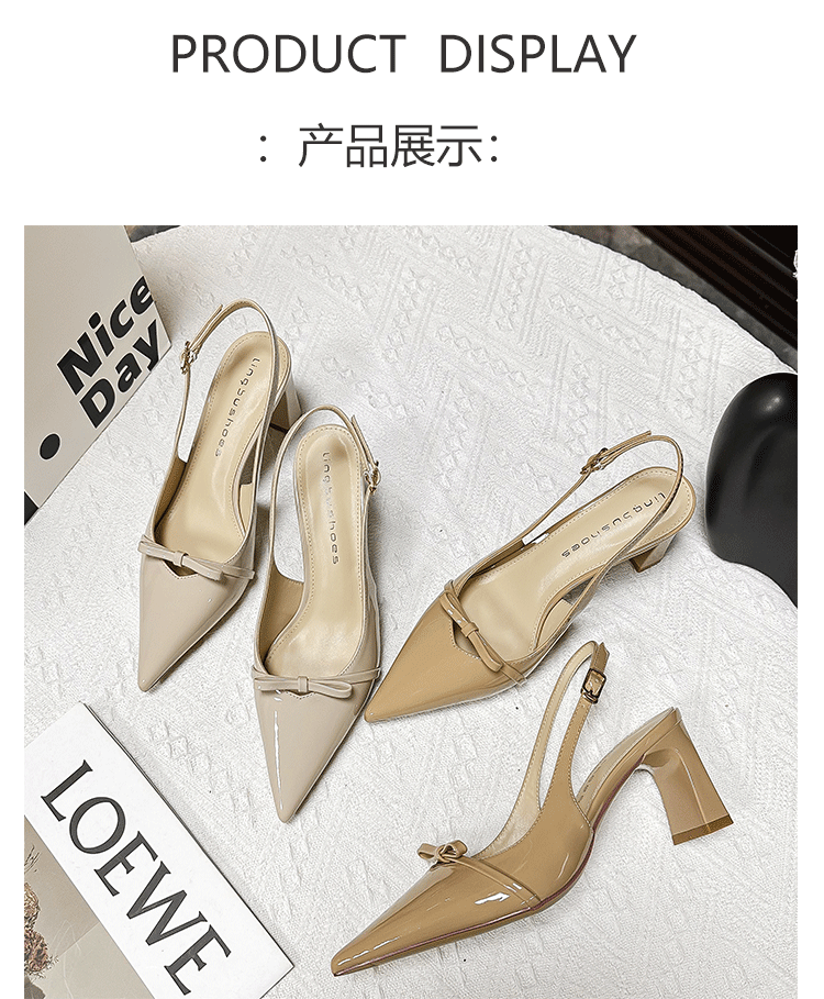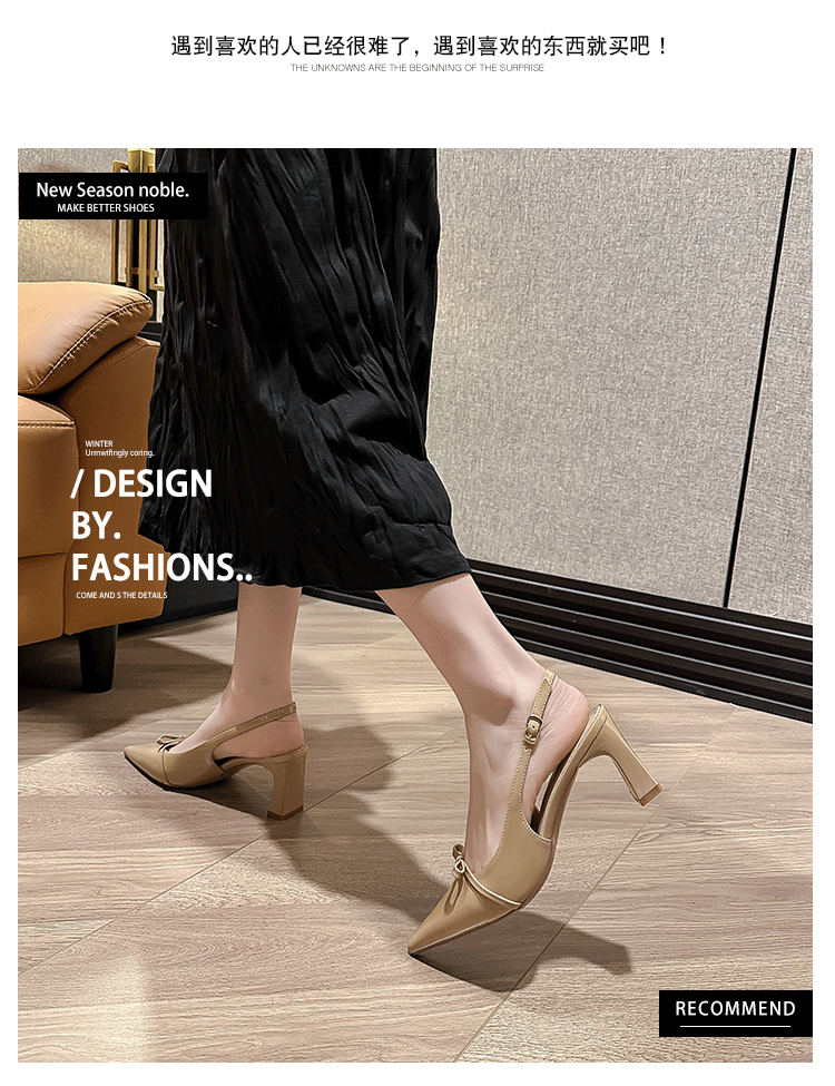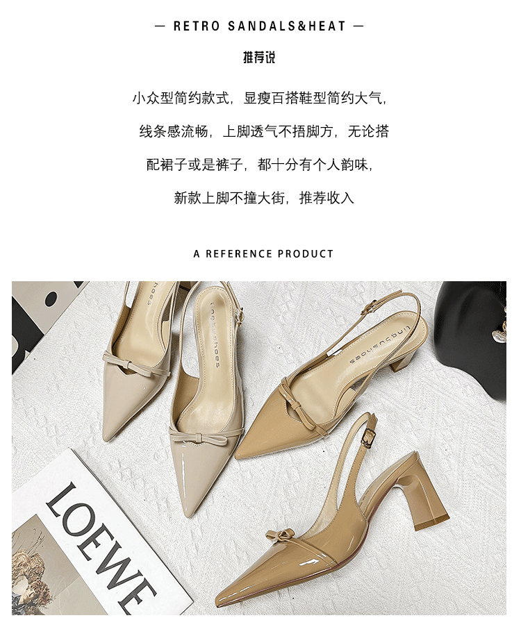368-6 봄과 가을 2025 새로운 여성 신발 디자인 보우 센스 빈 발가락 샌들 한국 스타일 두꺼운 힐 하이스토어 가기