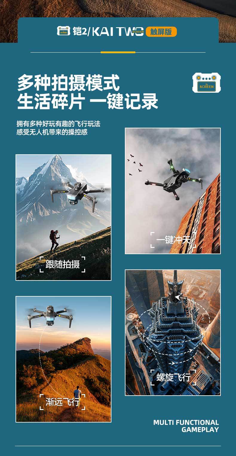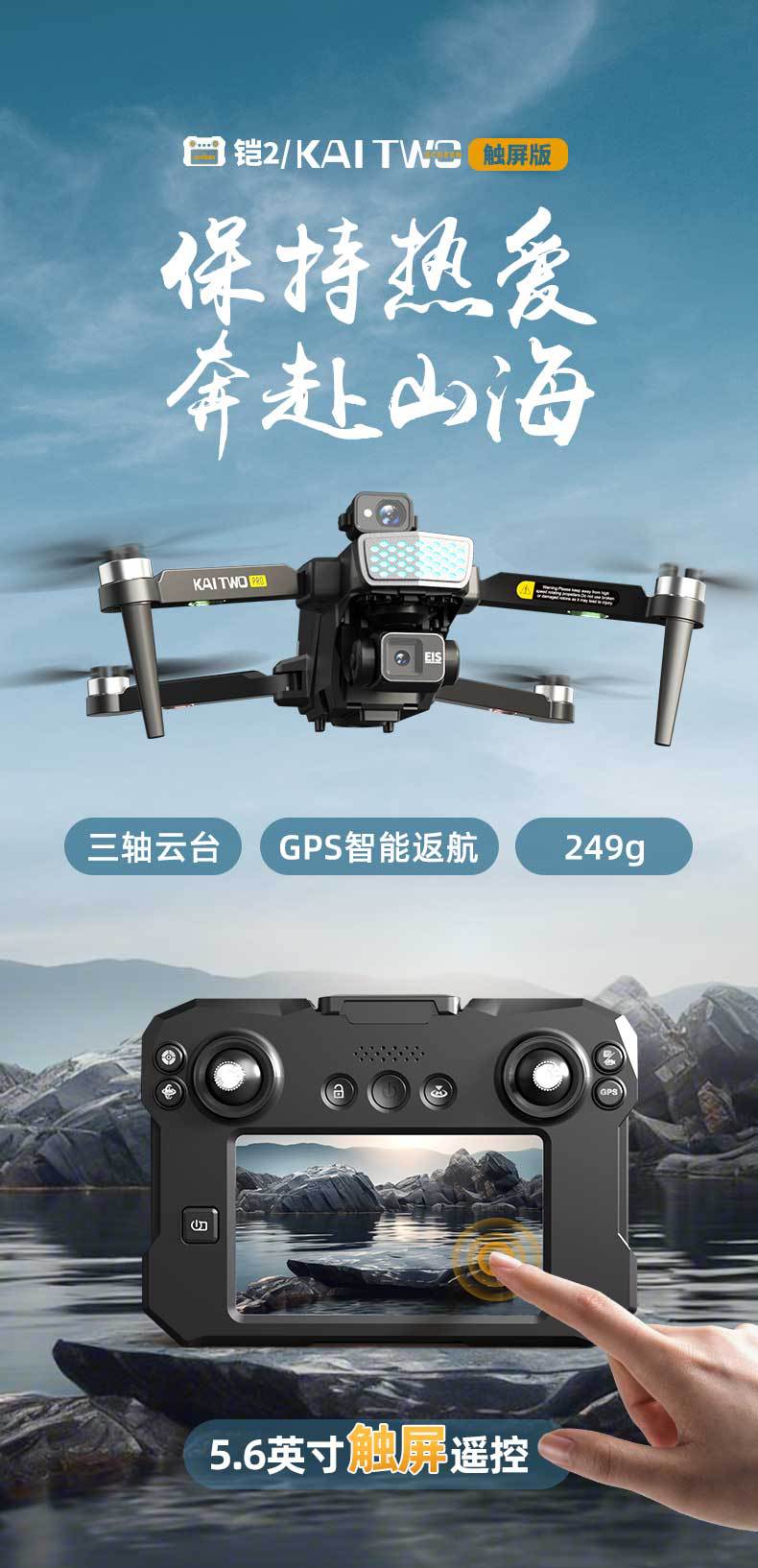 국경 간 갑옷 2 터치 스크린 제어 드론 3축 손떨림 방지 짐벌 4축 비행 8K 고화질 항공 사진 원격 제어 항공기