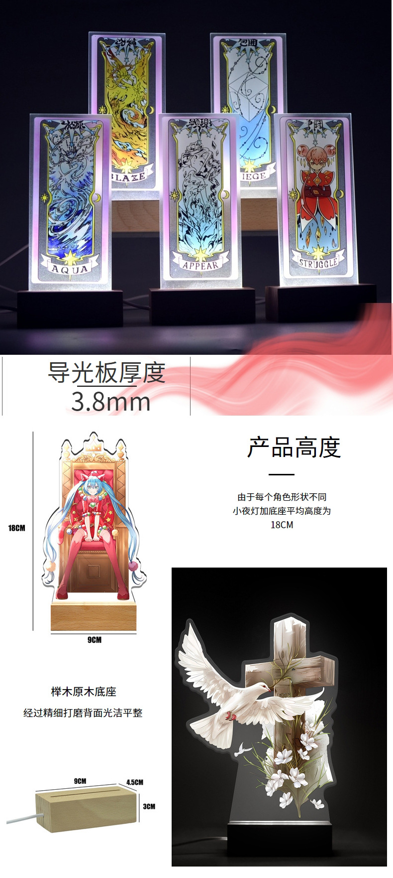 榉木底座亚克力LED小夜灯