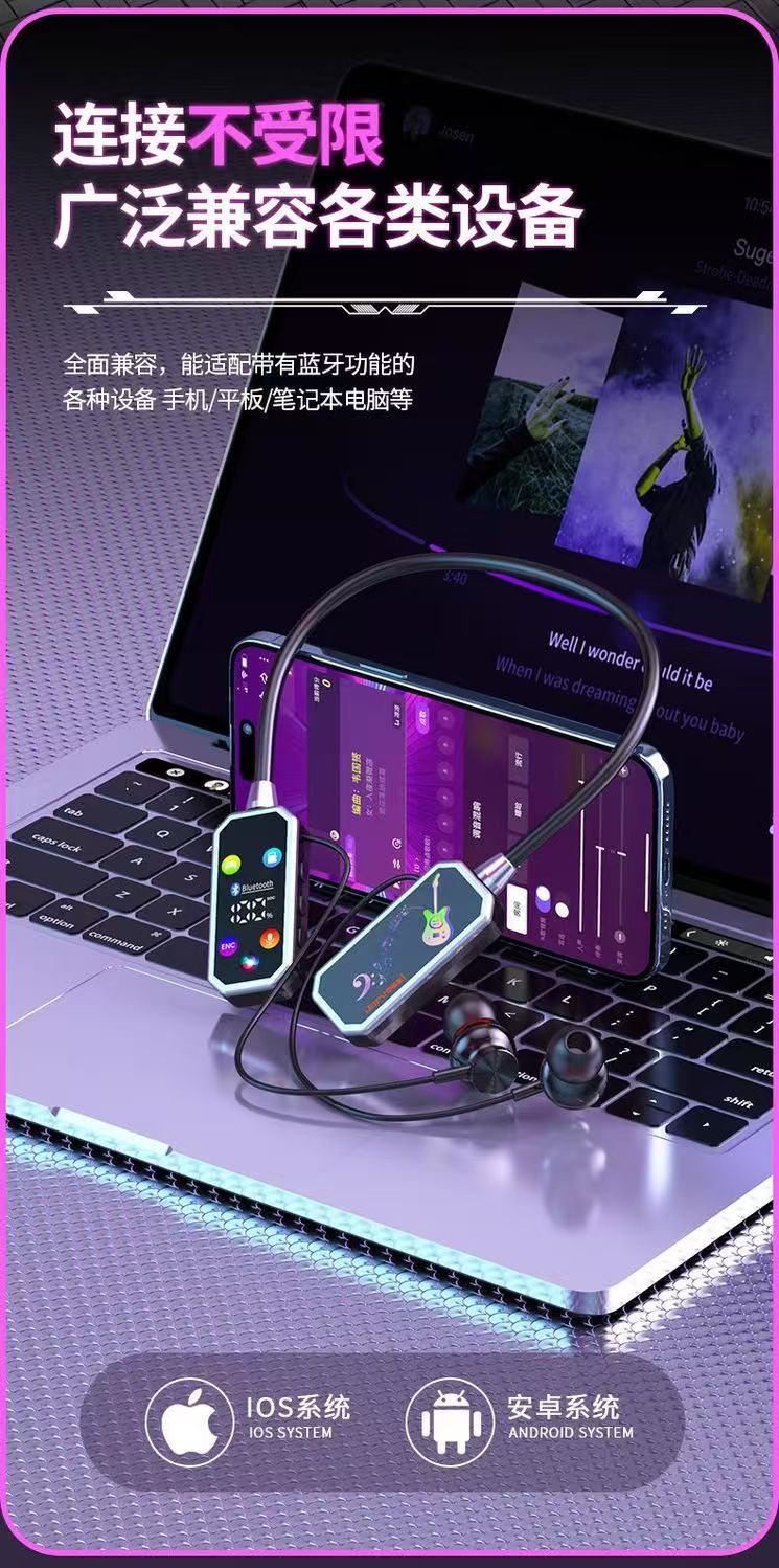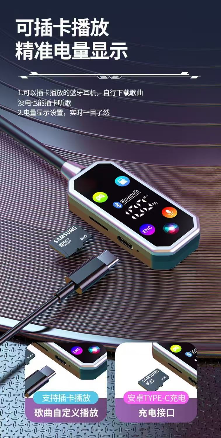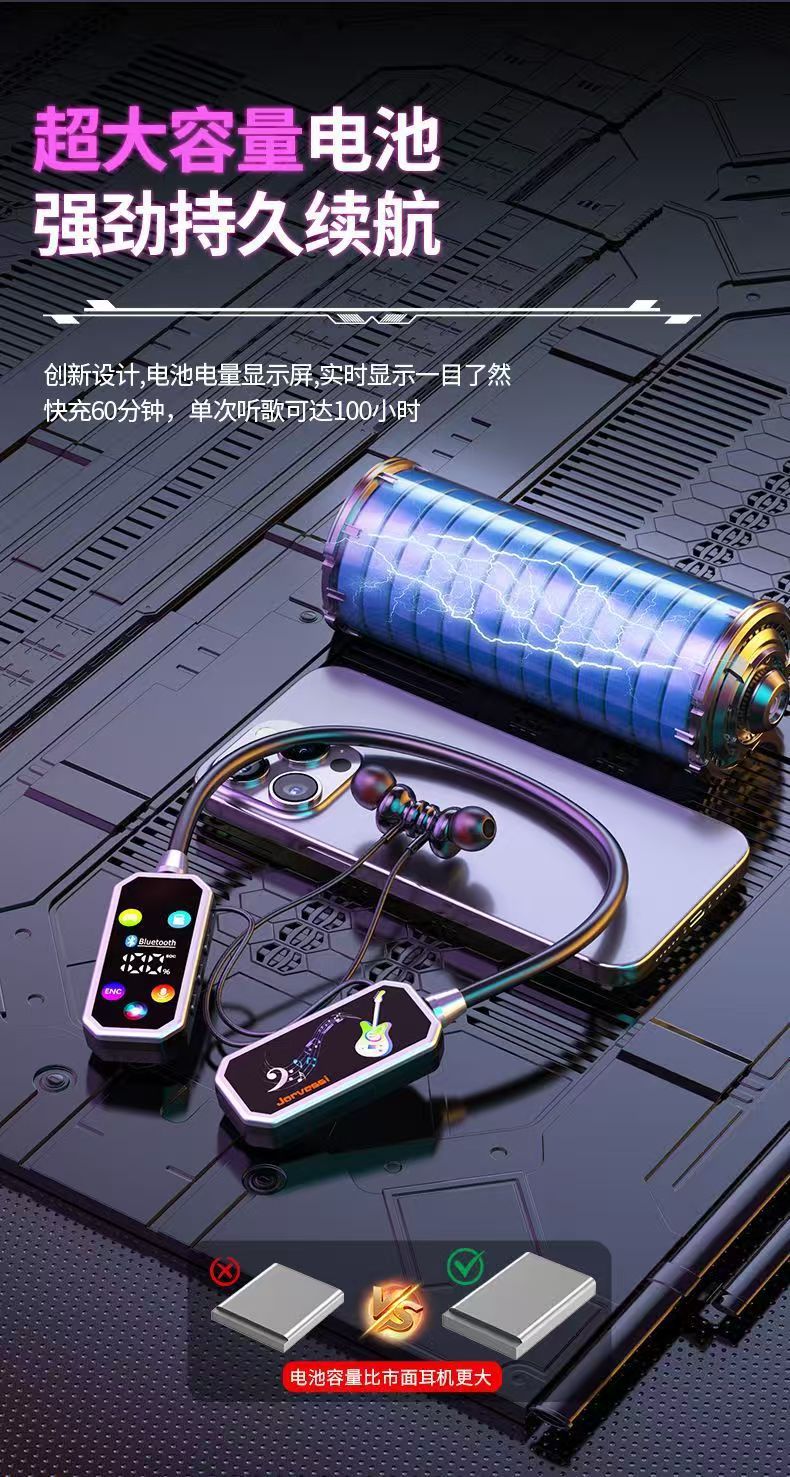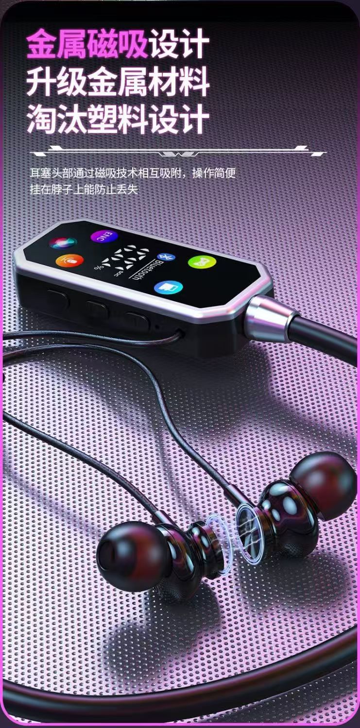 유니버설 무선 교수형 목 스포츠 블루투스 헤드셋 카드 소음 감소 긴 내구성 전원 디스플레이 높은 음질 HiFi 사운드 효과스토어 가기