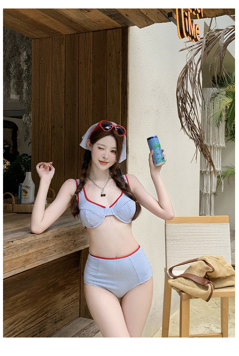 헤어 수영복 여성 한국 스플릿 스틸 지지대의 세대는 가슴 높은 허리 비키니 순수 바람 비키니 수영복 여성을 모았습니다.스토어 가기