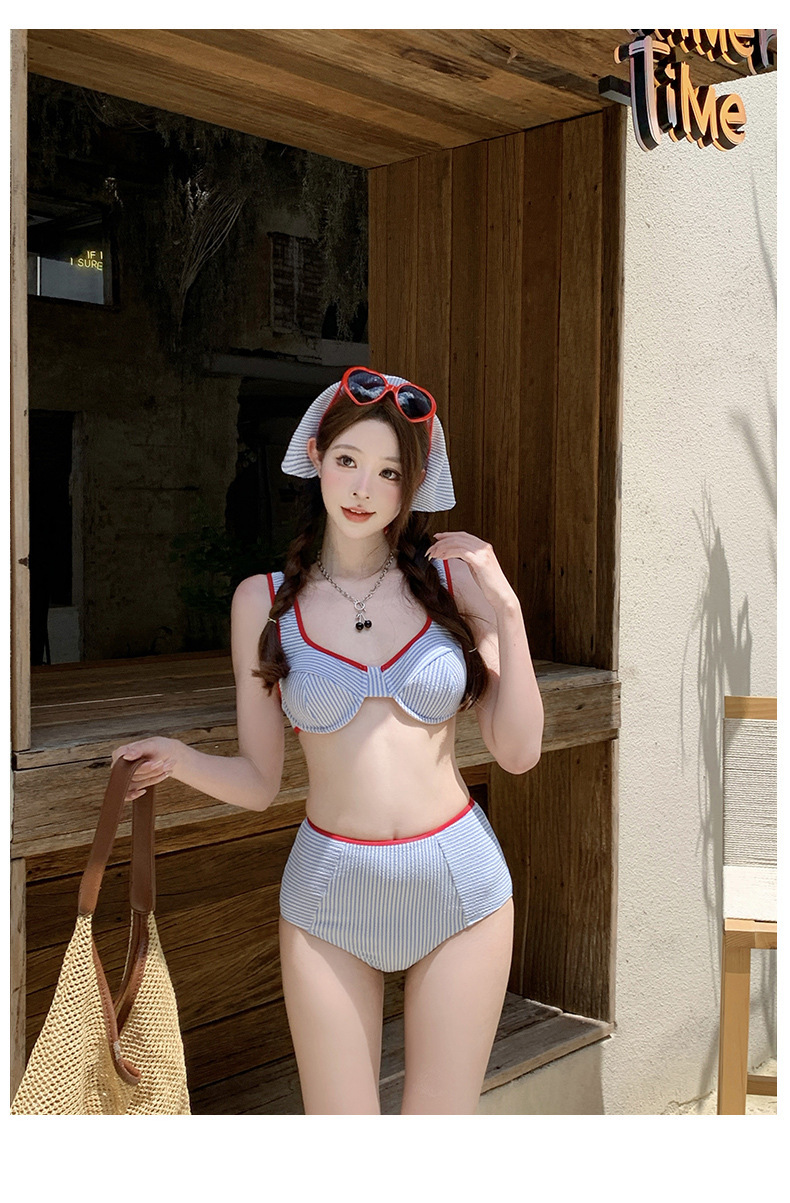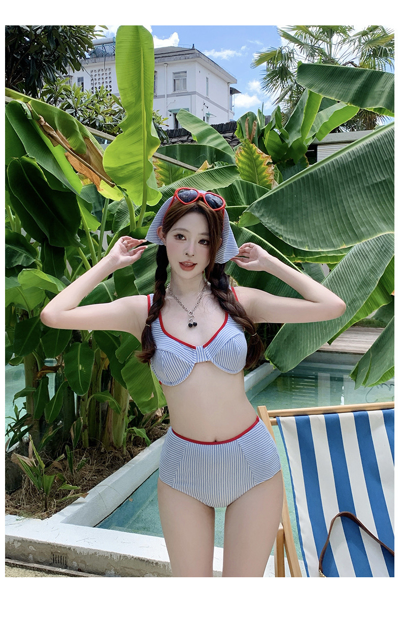 헤어 수영복 여성 한국 스플릿 스틸 지지대의 세대는 가슴 높은 허리 비키니 순수 바람 비키니 수영복 여성을 모았습니다.