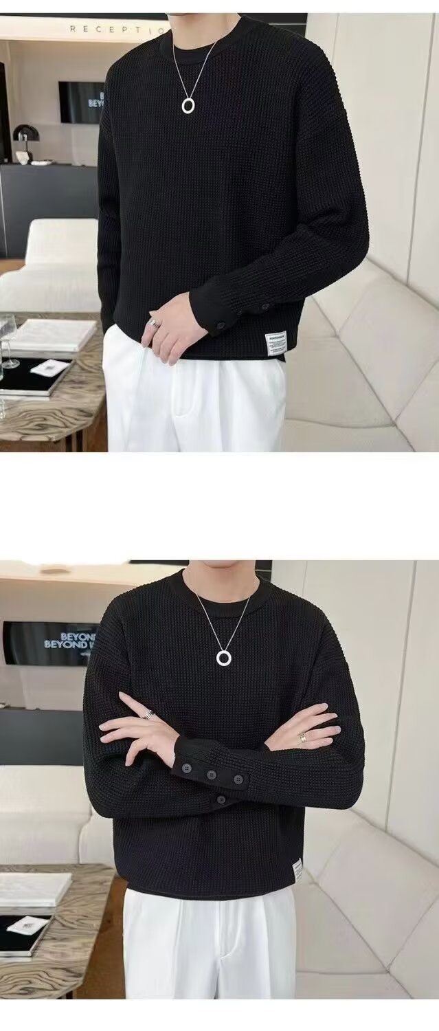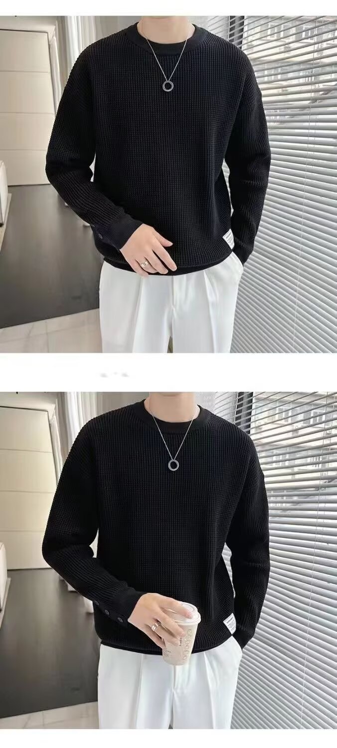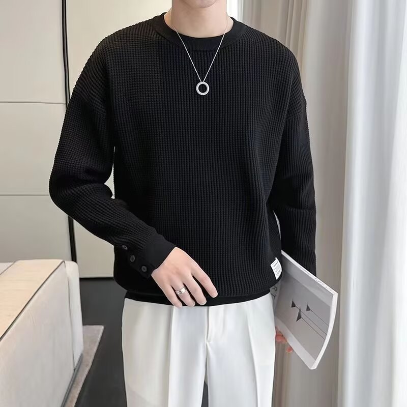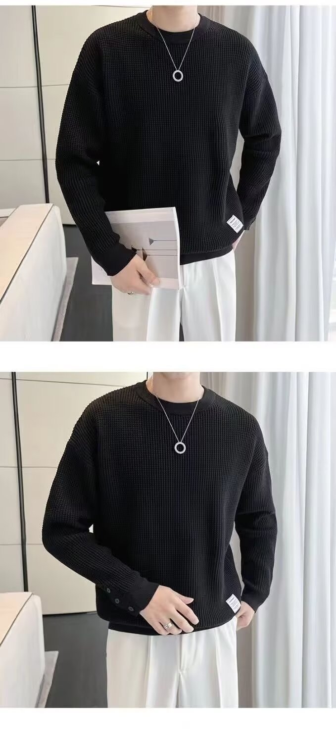 남자 스웨터 가을과 겨울 2024 가을베이스 셔츠와 함께 새로운 하이 엔드 와플 가을 탑