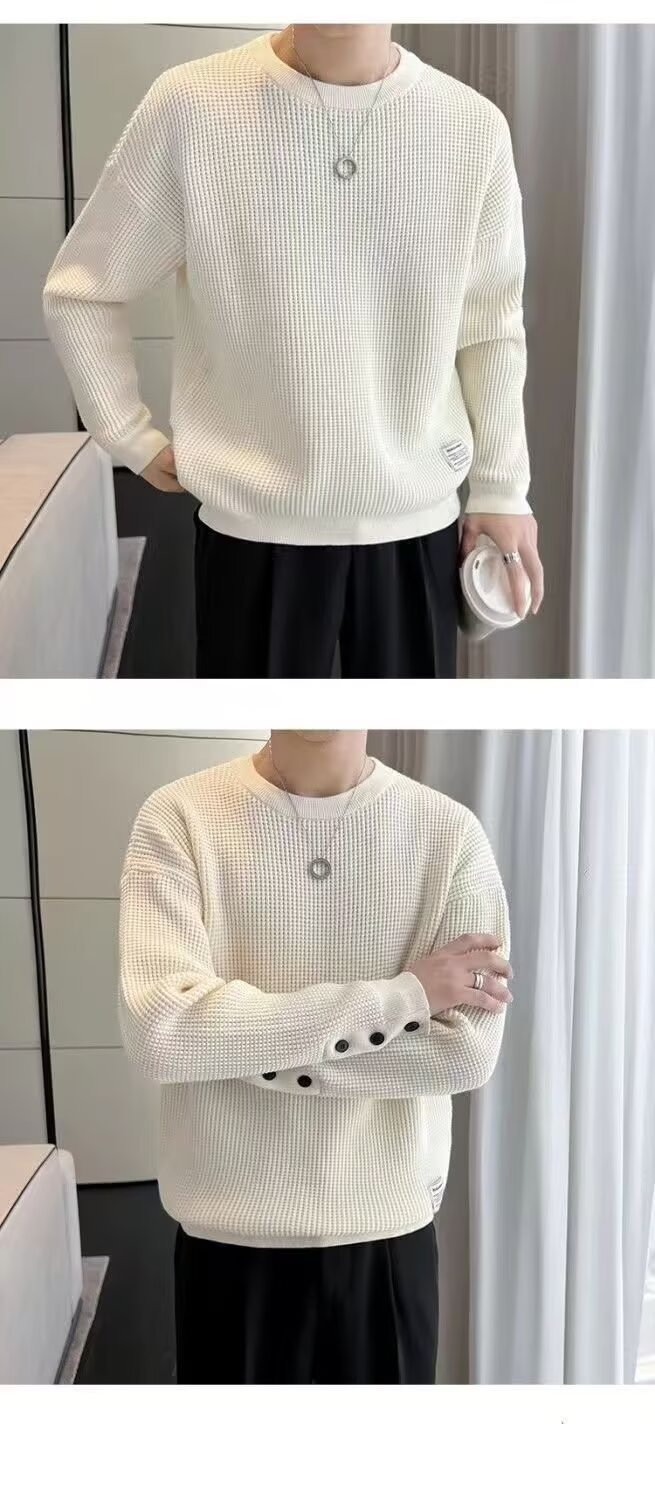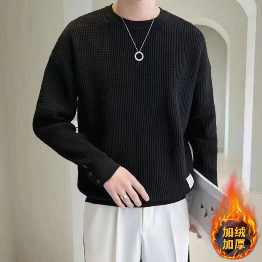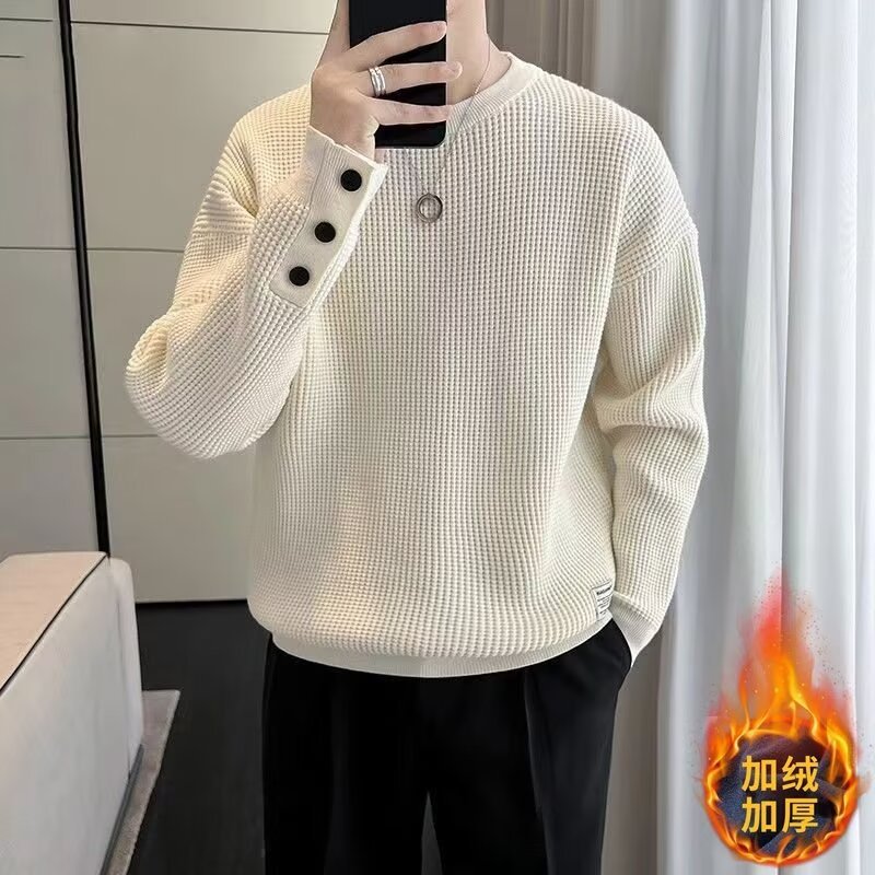 남자 스웨터 가을과 겨울 2024 가을베이스 셔츠와 함께 새로운 하이 엔드 와플 가을 탑