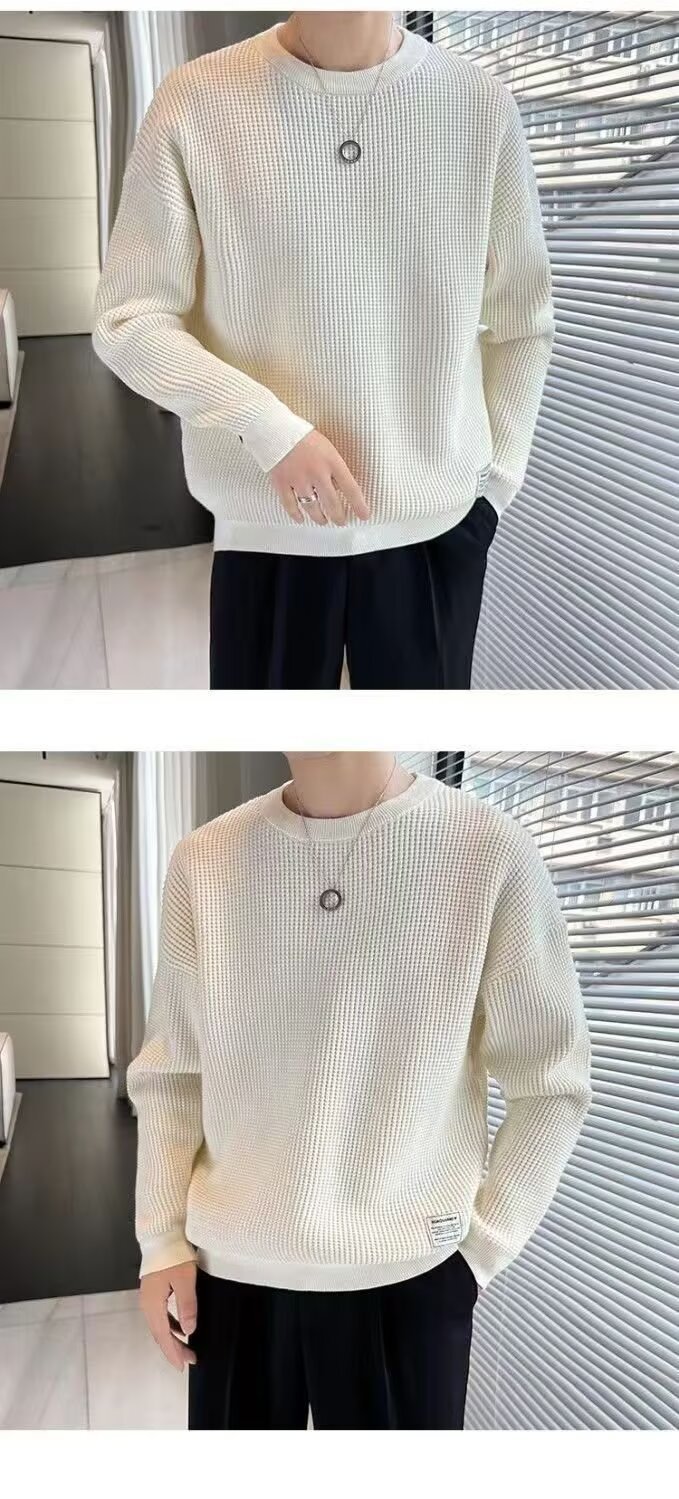 남자 스웨터 가을과 겨울 2024 가을베이스 셔츠와 함께 새로운 하이 엔드 와플 가을 탑스토어 가기