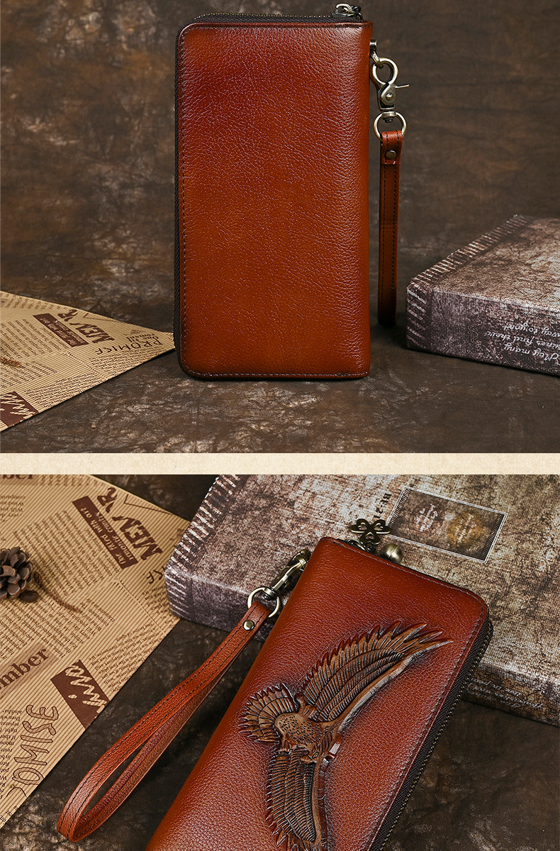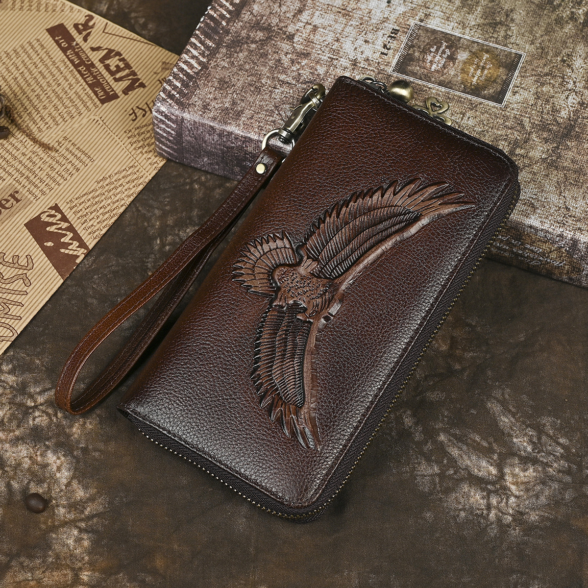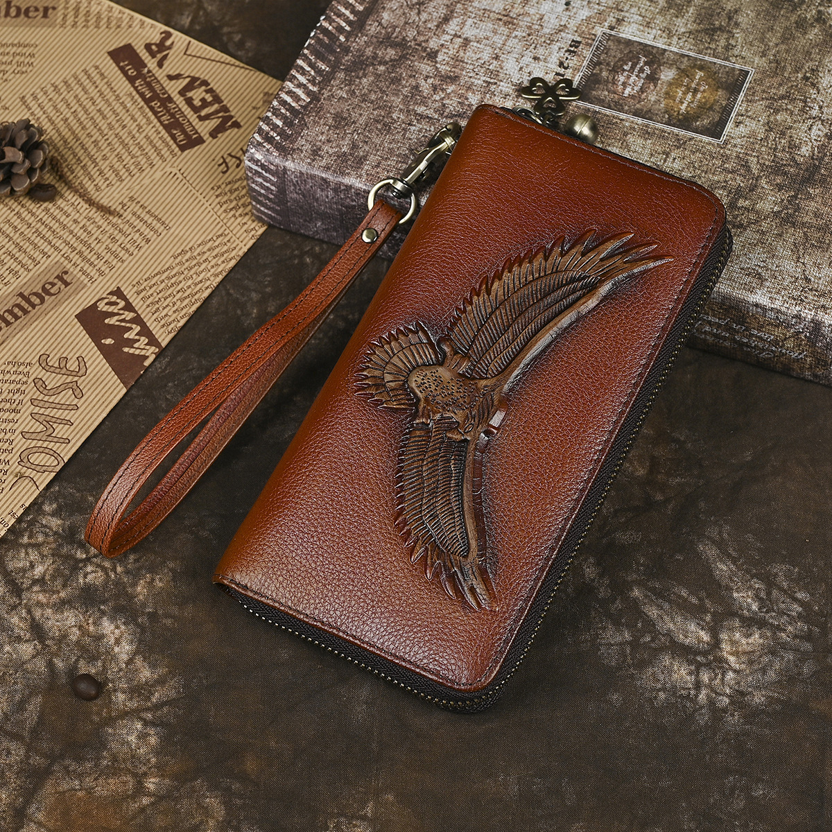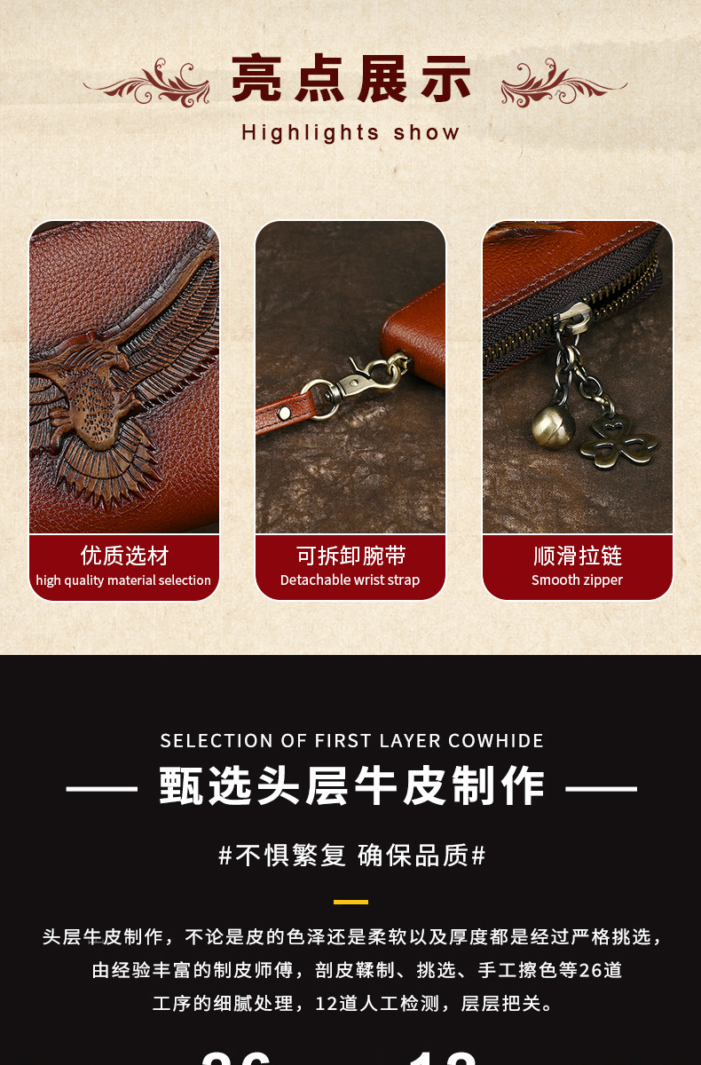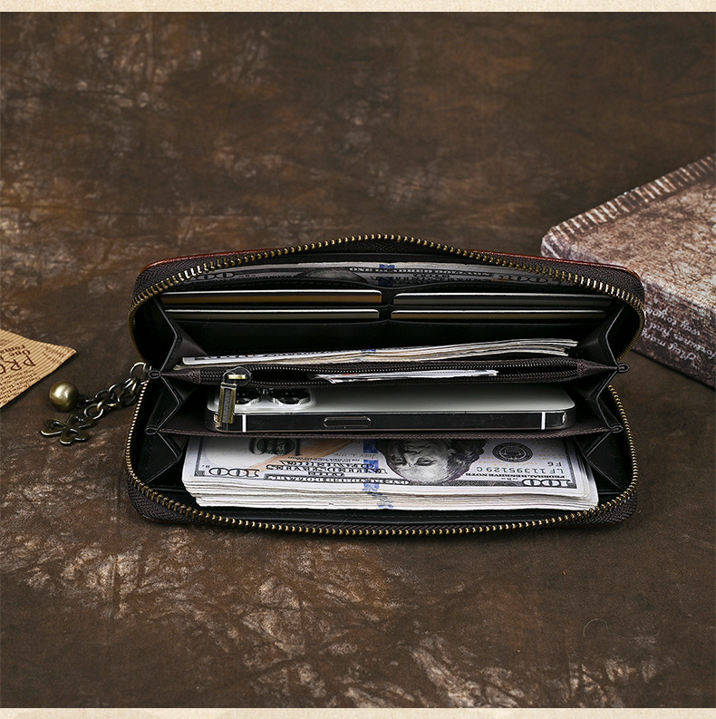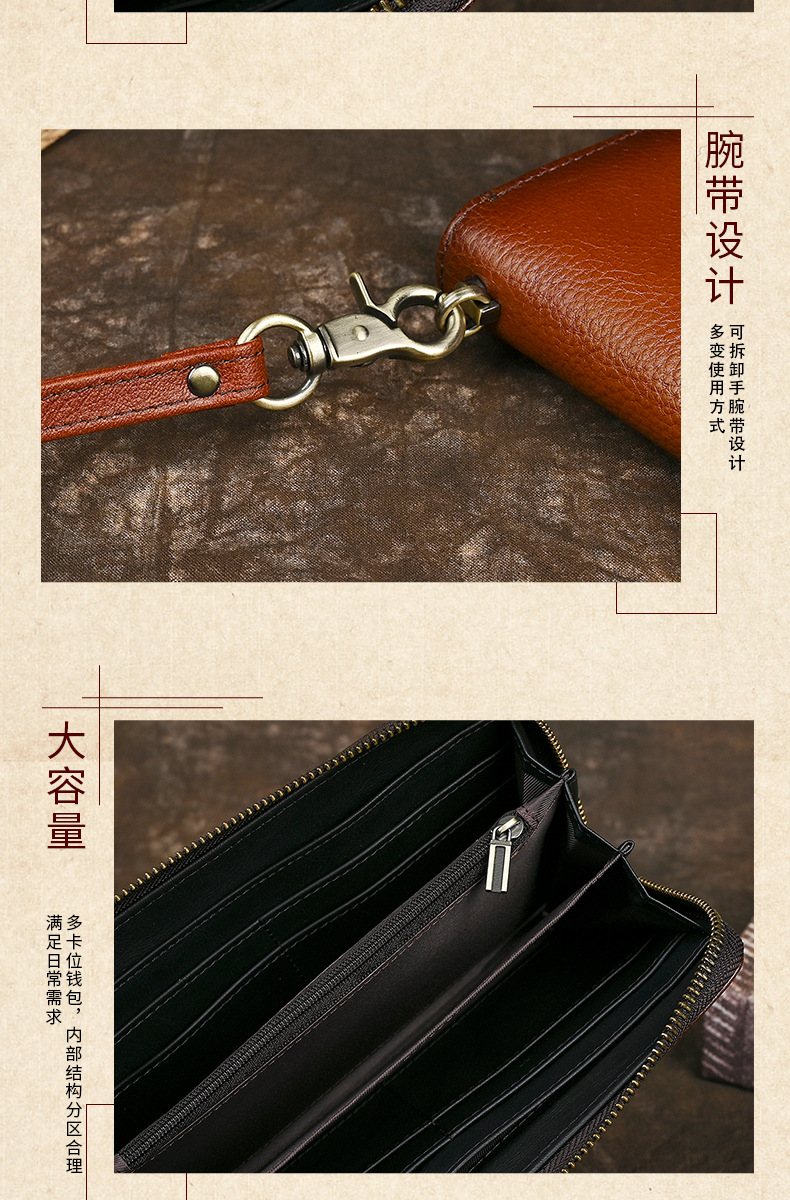 국경 새로운 탑 레이어 Cowhide Wallet 긴 남성과 여성의 유니버설 대용량 멀티 카드 지갑 가죽 휴대 전화 가방스토어 가기