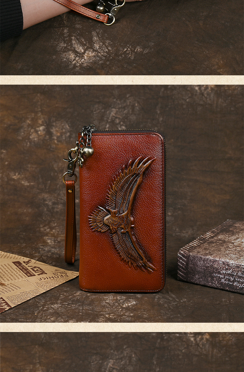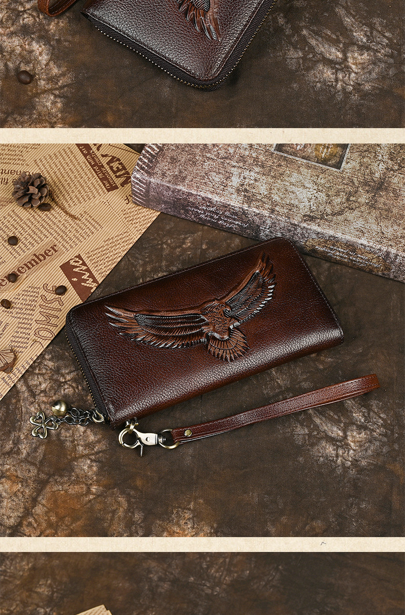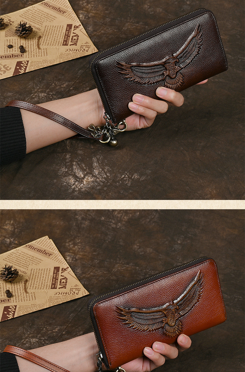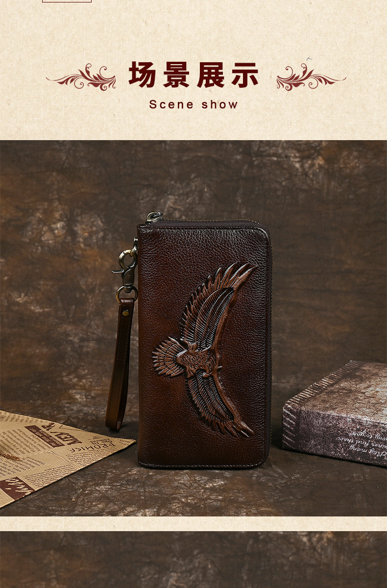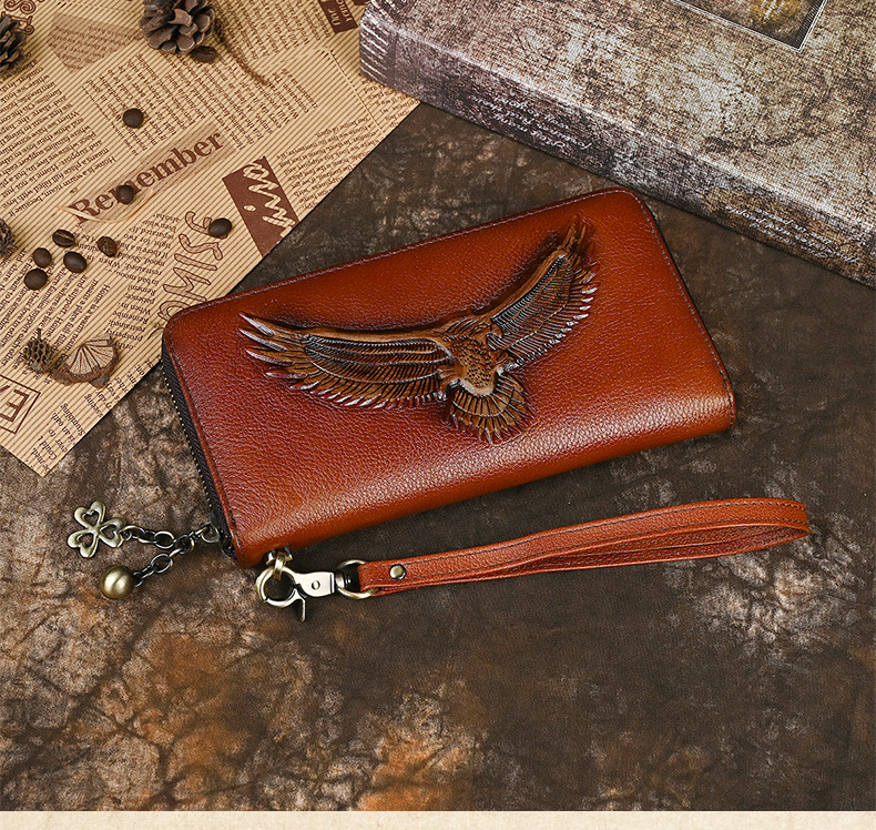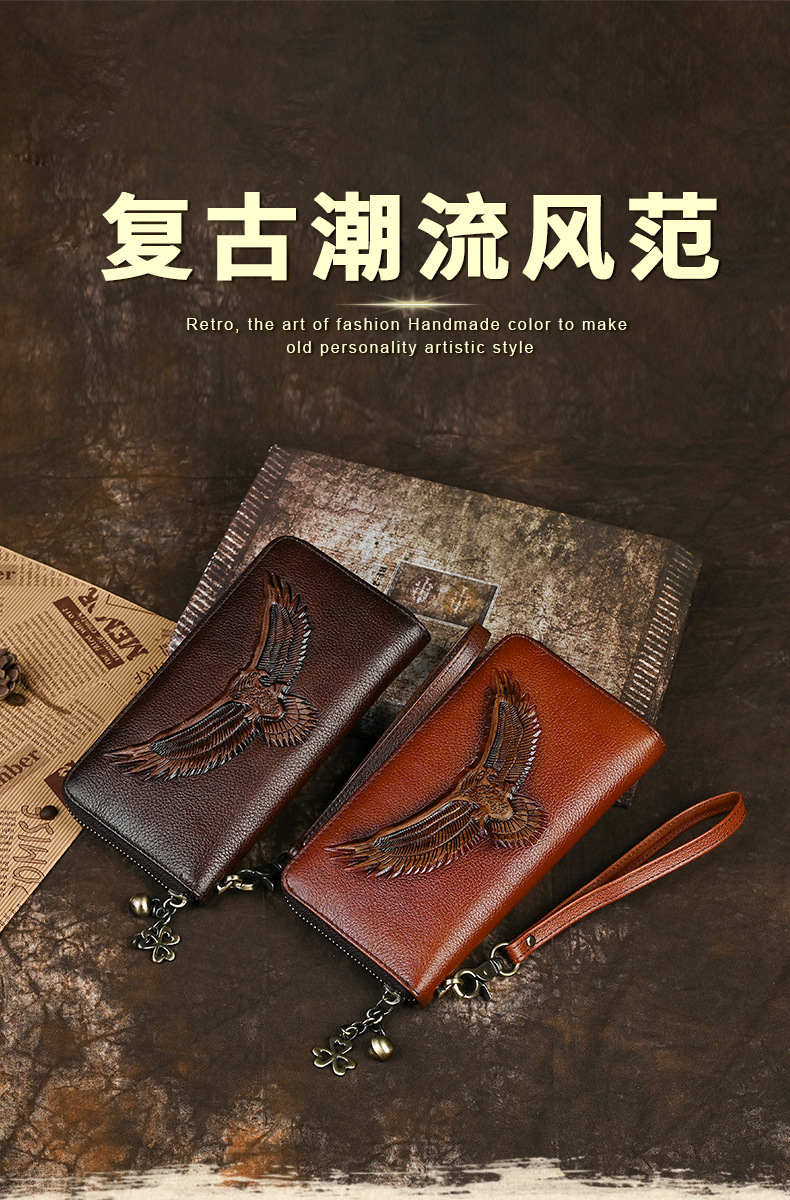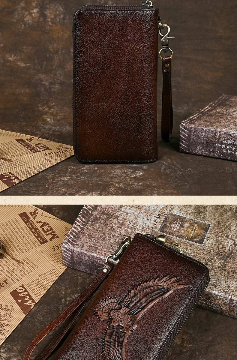 국경 새로운 탑 레이어 Cowhide Wallet 긴 남성과 여성의 유니버설 대용량 멀티 카드 지갑 가죽 휴대 전화 가방스토어 가기