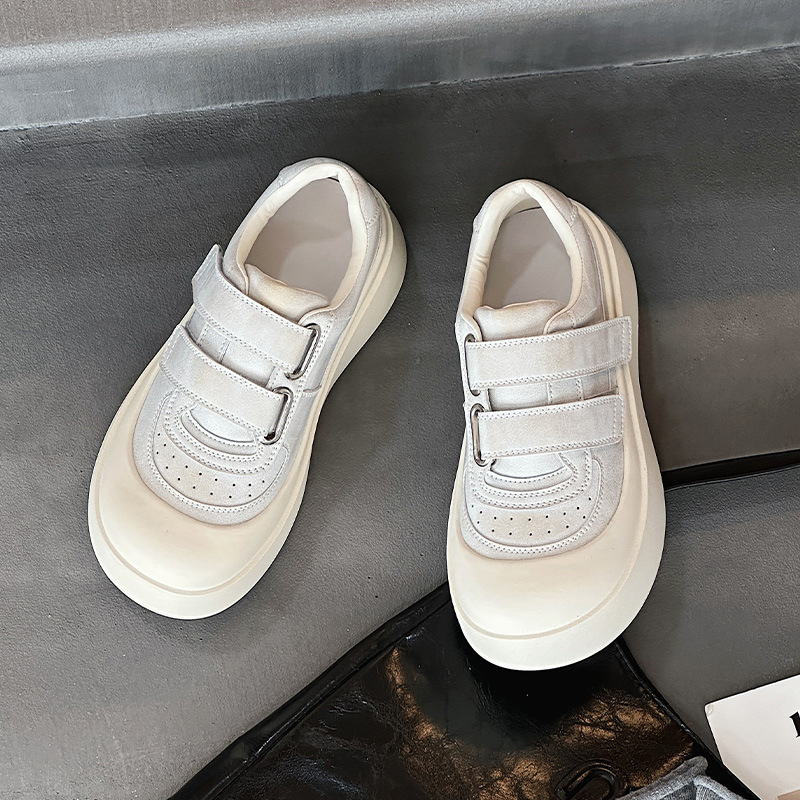 큰 머리 운동화 여성 인형 머리 캐주얼 신발 2025 새로운 모든 일치 못생긴 귀여운 빵 신발 진짜 가죽 두꺼운 단독 작은 흰색 신발 트렌디