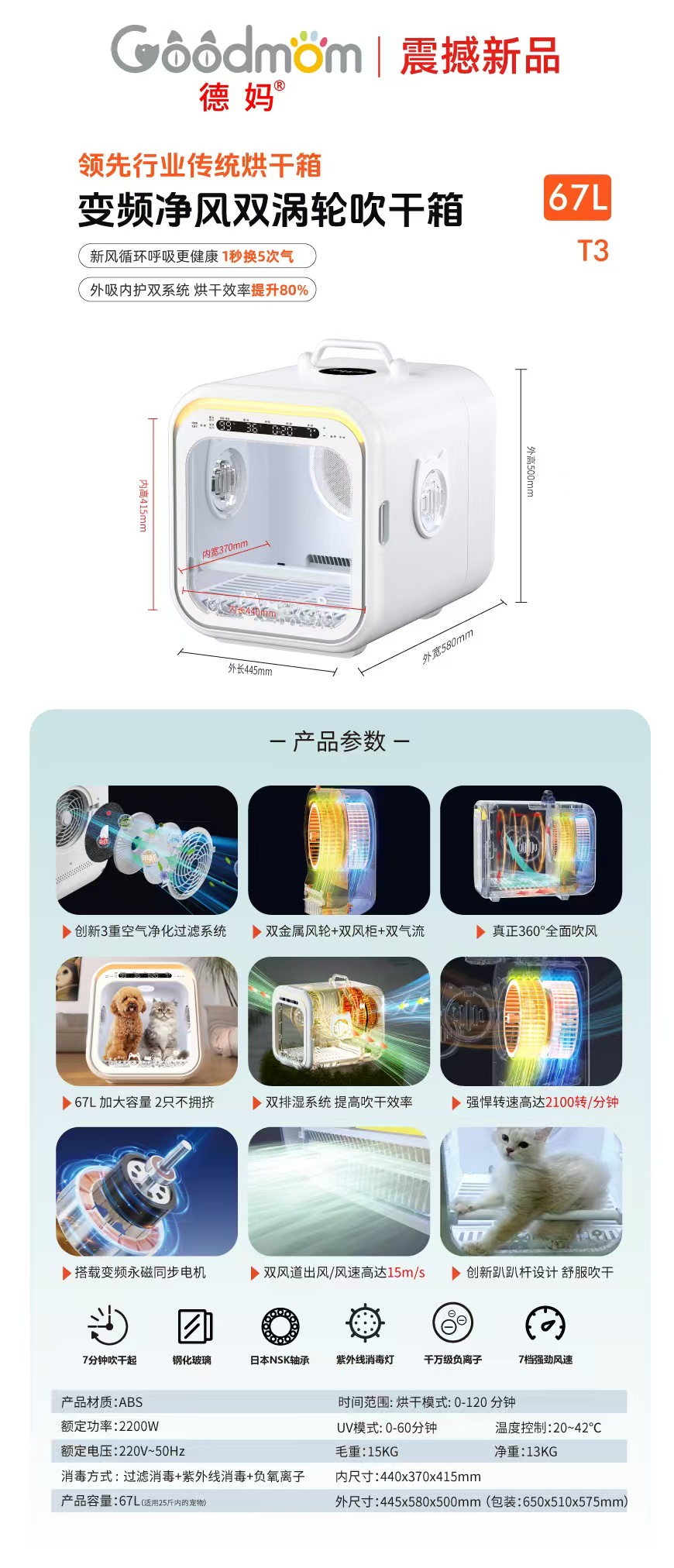 De Ma T3 애완 동물 건조 상자 고양이 건조기 개 자동 송풍기 기계 송풍기 목욕 머리 송풍기 가게 가구 사용스토어 가기
