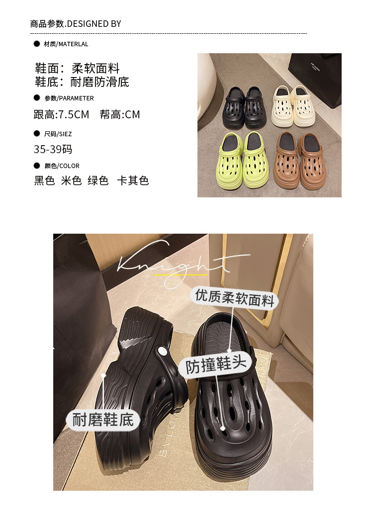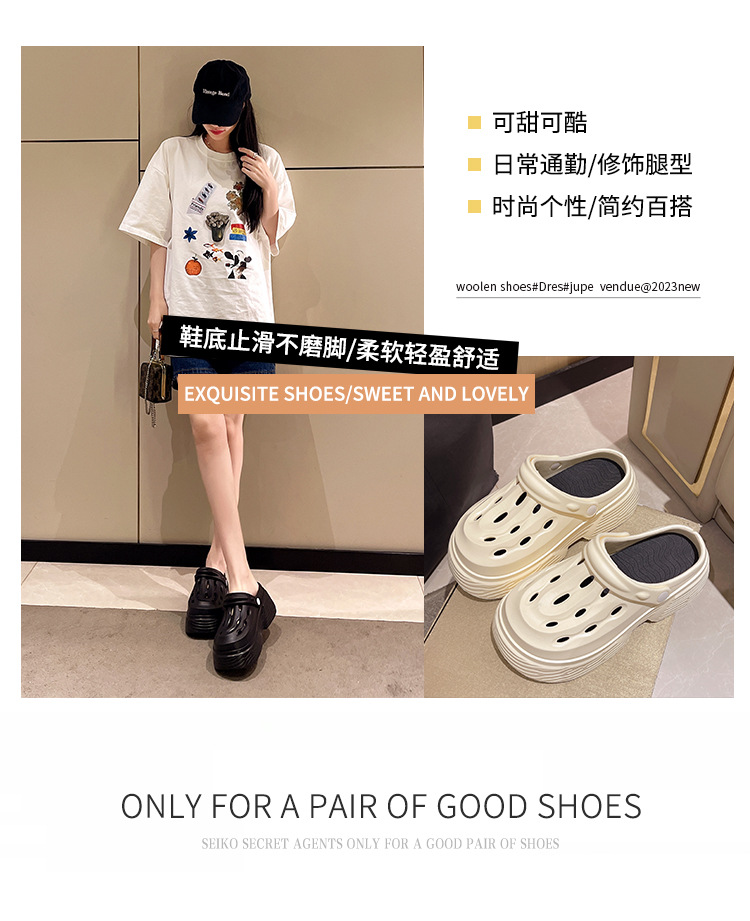 에바 슬리퍼 여성 캐주얼 한국식 샌들 및 슬리퍼 2 색 대비 컬러 슬라이드 두꺼운 밑창 구멍 신발 국경 대외 무역 8838스토어 가기