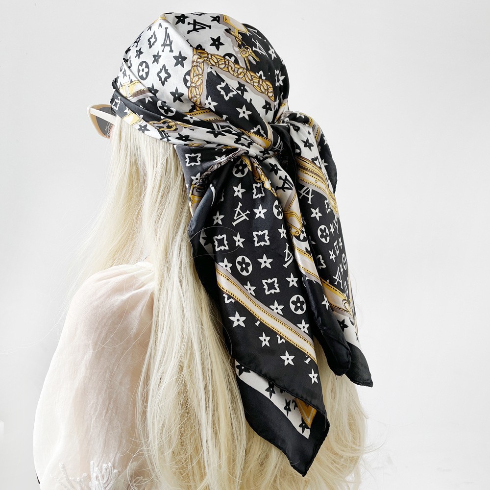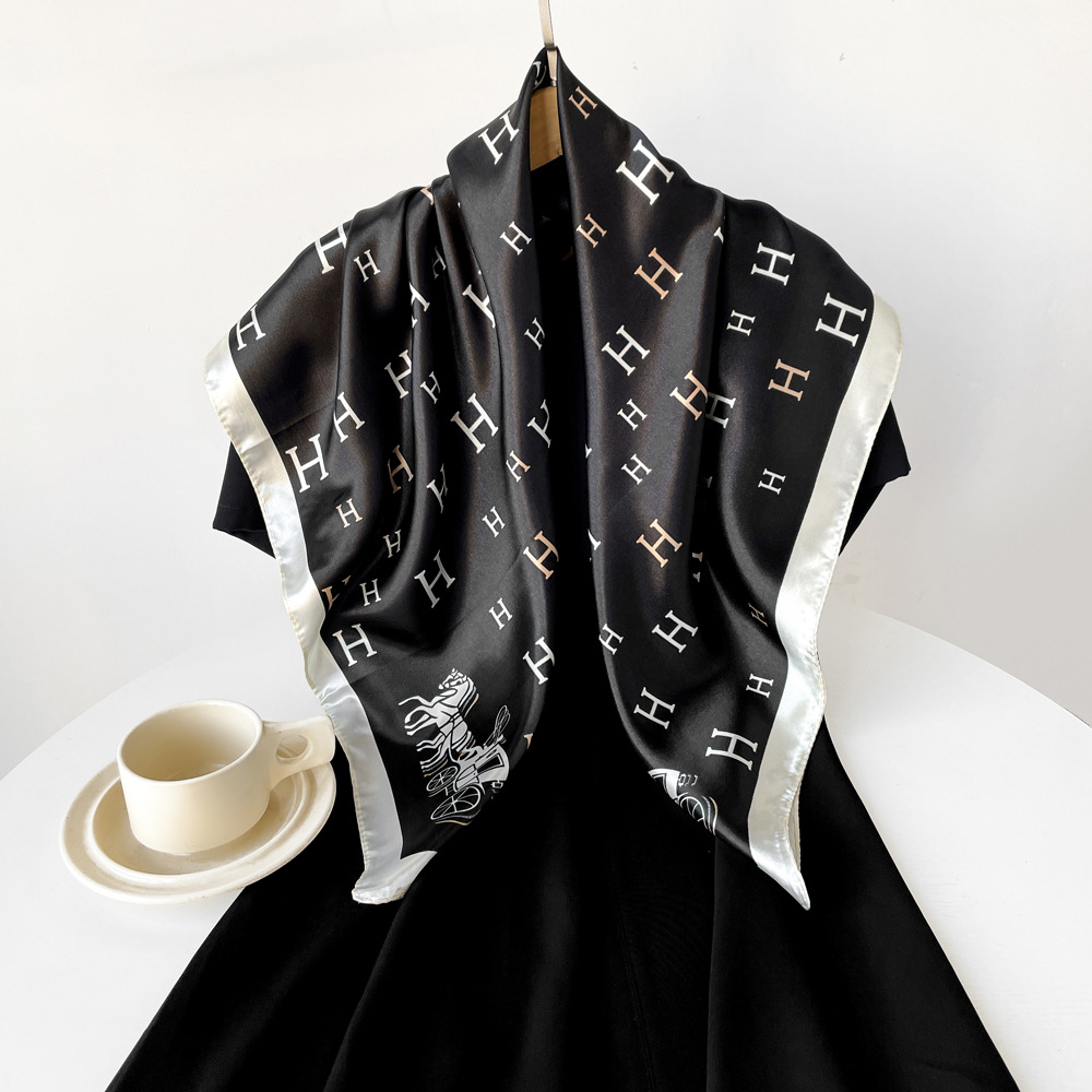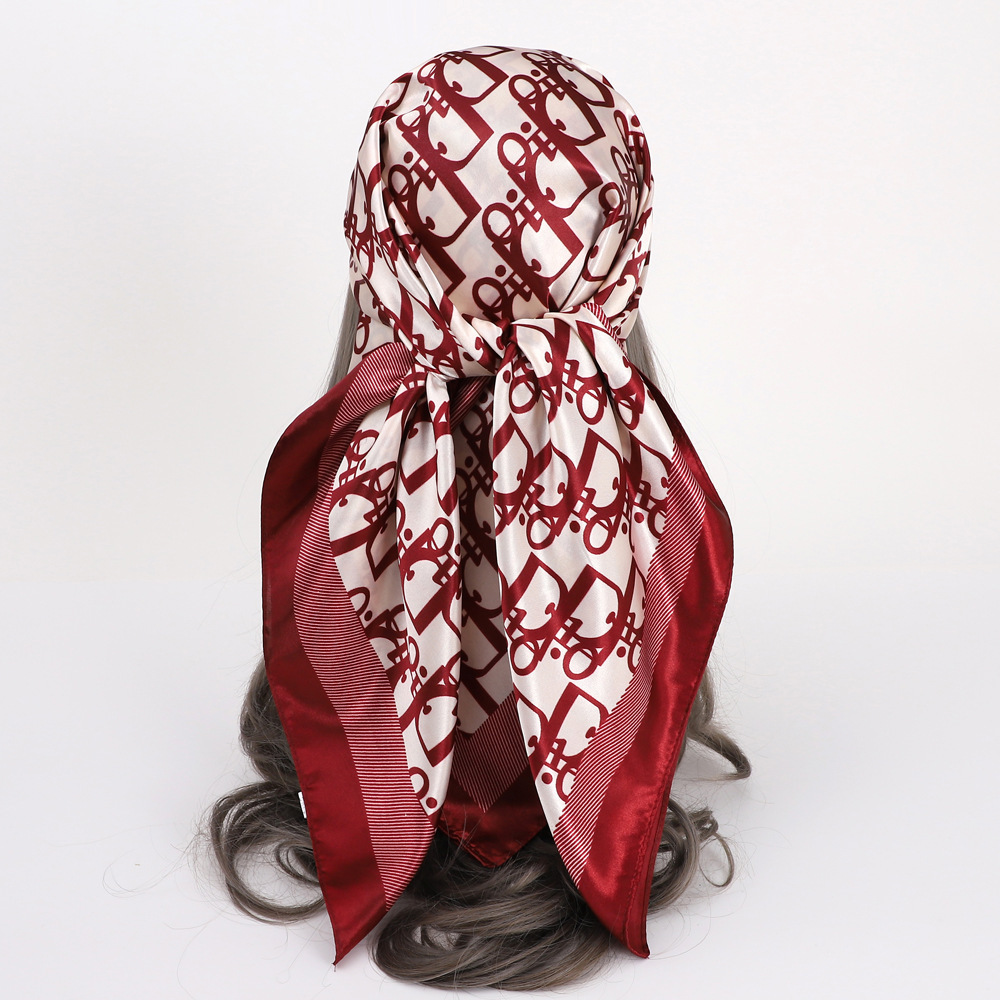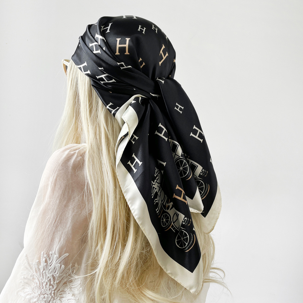 새로운 90cm 실크 스카프 대형 광장 국경 중동 새 편지 인쇄 세단 스카프 잔디 도매 관습