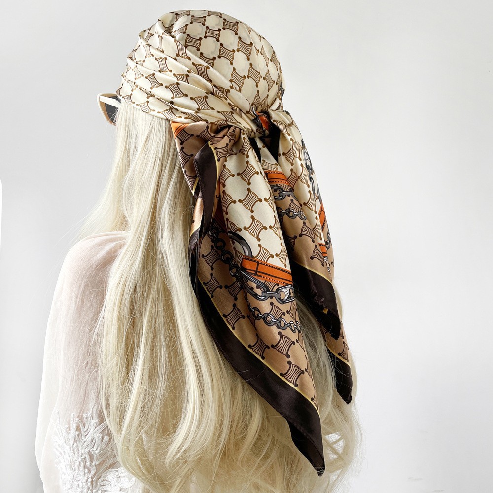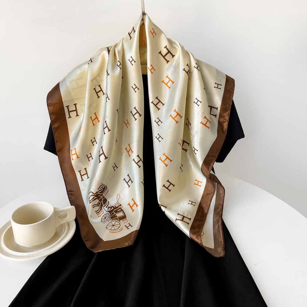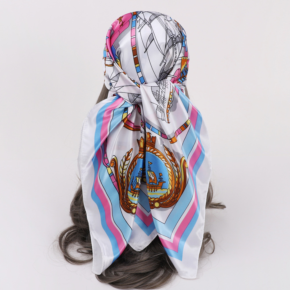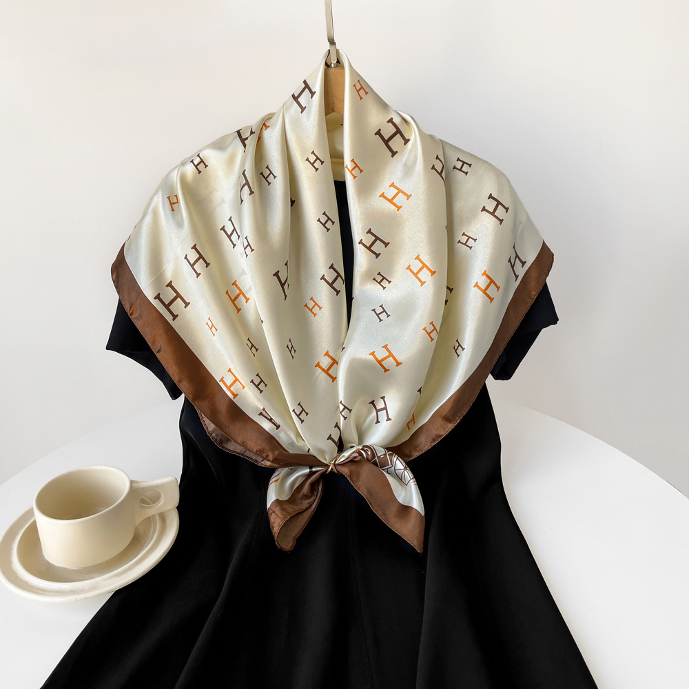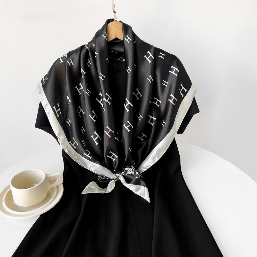 새로운 90cm 실크 스카프 대형 광장 국경 중동 새 편지 인쇄 세단 스카프 잔디 도매 관습