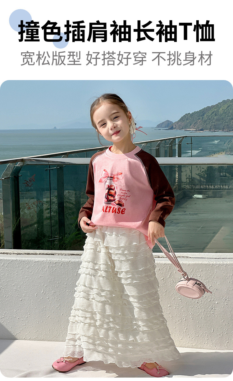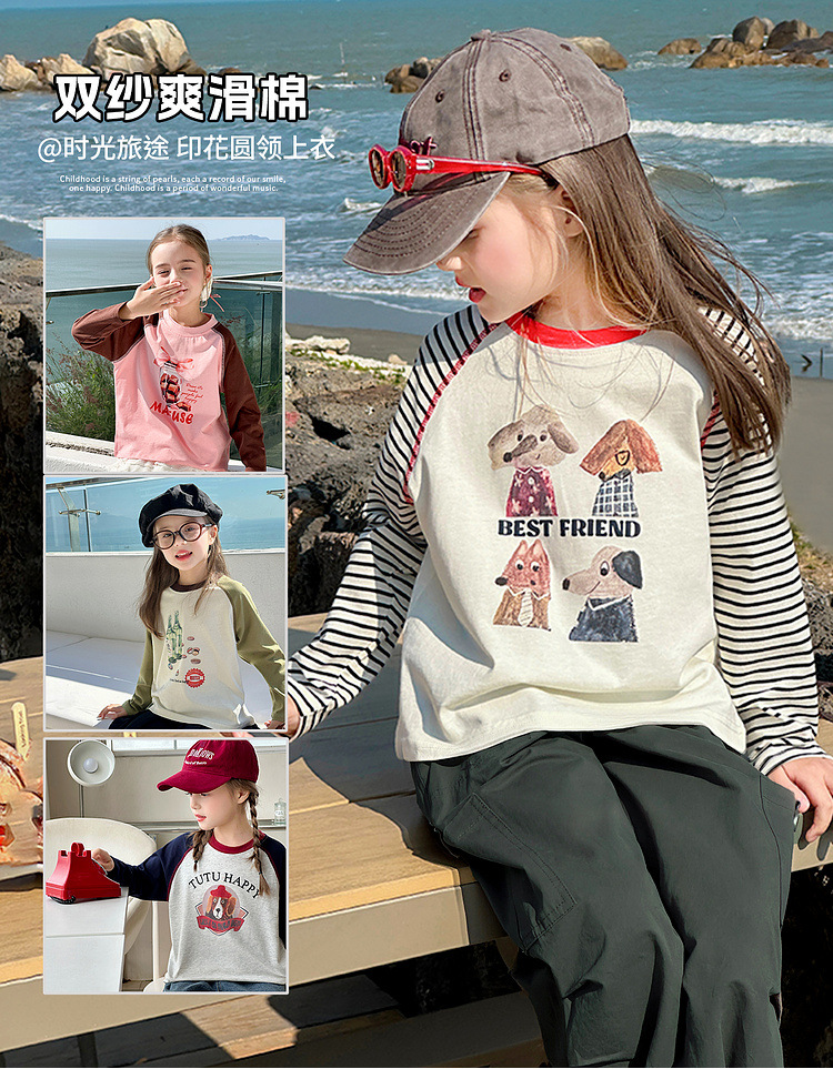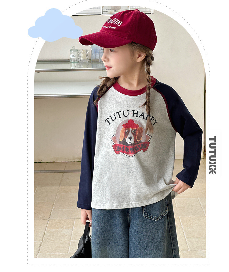TUTU 아기 코끼리 여아 긴팔 티셔츠 2026 봄 신상 아동복 만화 프린트 베이스 레이어 아동 라글란 슬리브 상의스토어 가기