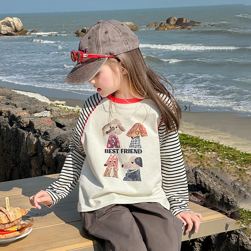 TUTU 아기 코끼리 여아 긴팔 티셔츠 2026 봄 신상 아동복 만화 프린트 베이스 레이어 아동 라글란 슬리브 상의