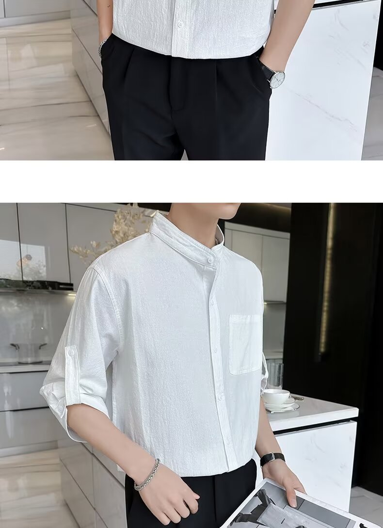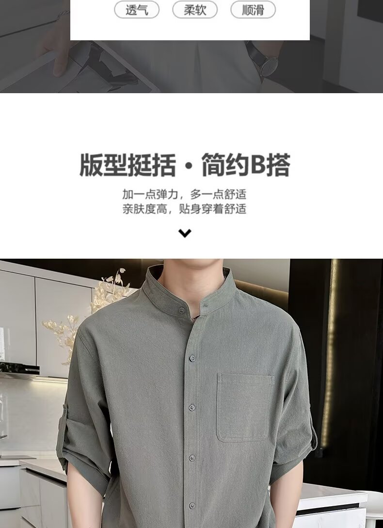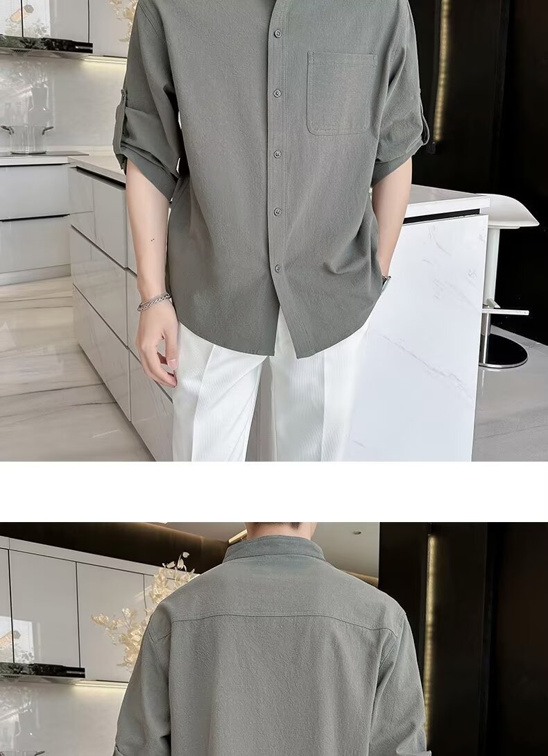 코튼 리넨 셔츠 남자 반팔 셔츠 느슨한 남자 중국 스타일 여름 얇은 남자 캐주얼 코트 긴팔 탑스토어 가기