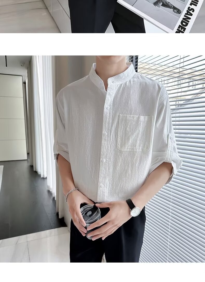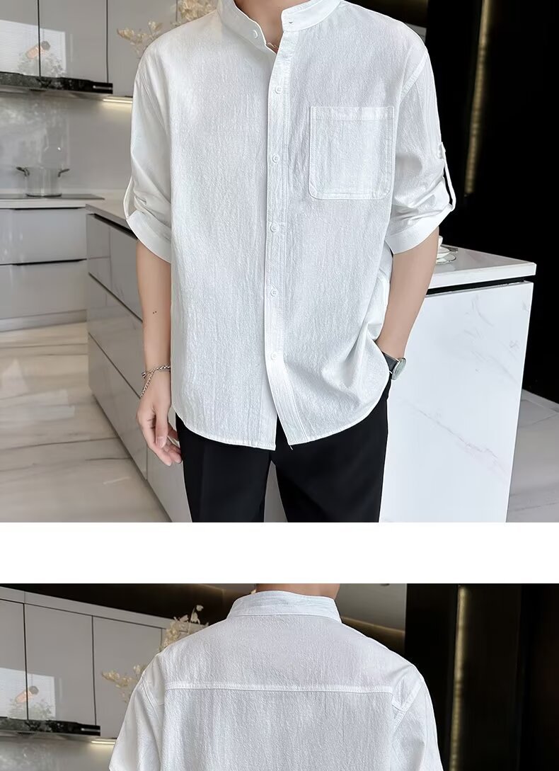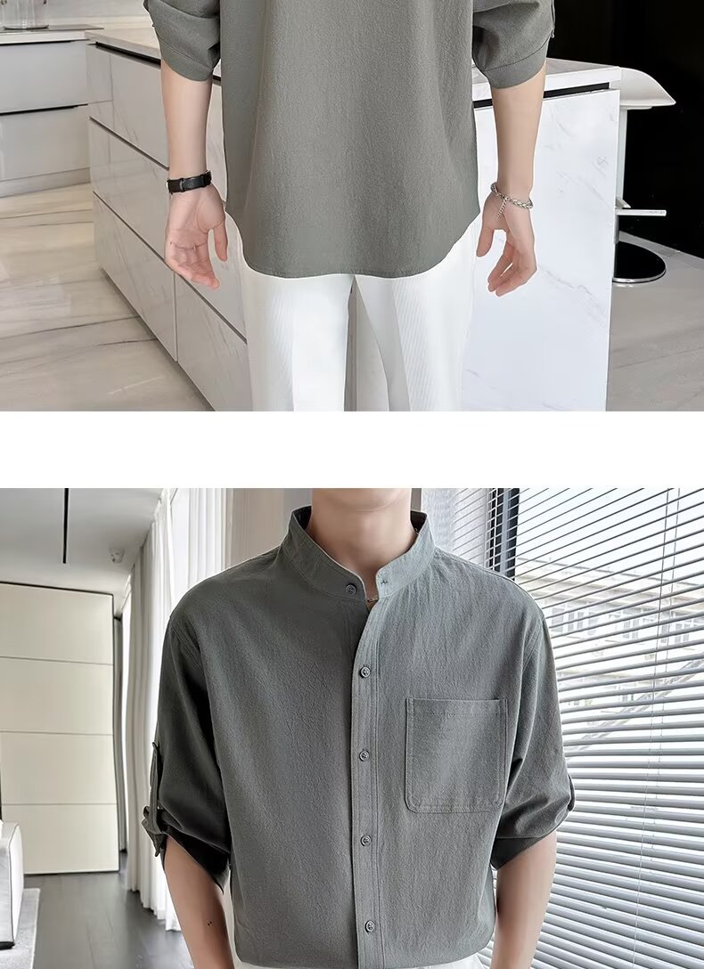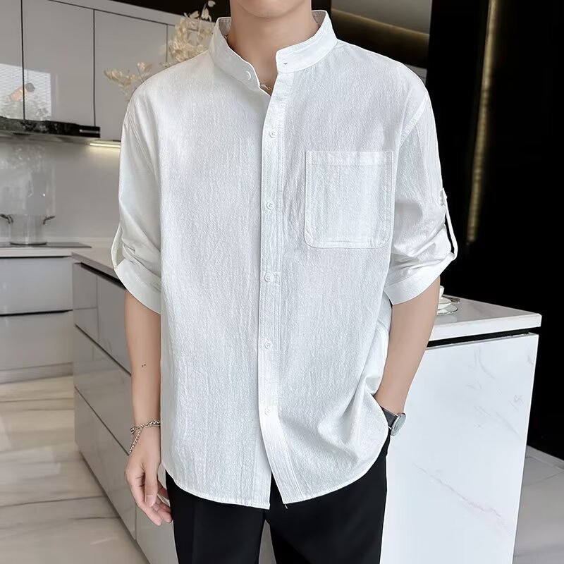코튼 리넨 셔츠 남자 반팔 셔츠 느슨한 남자 중국 스타일 여름 얇은 남자 캐주얼 코트 긴팔 탑