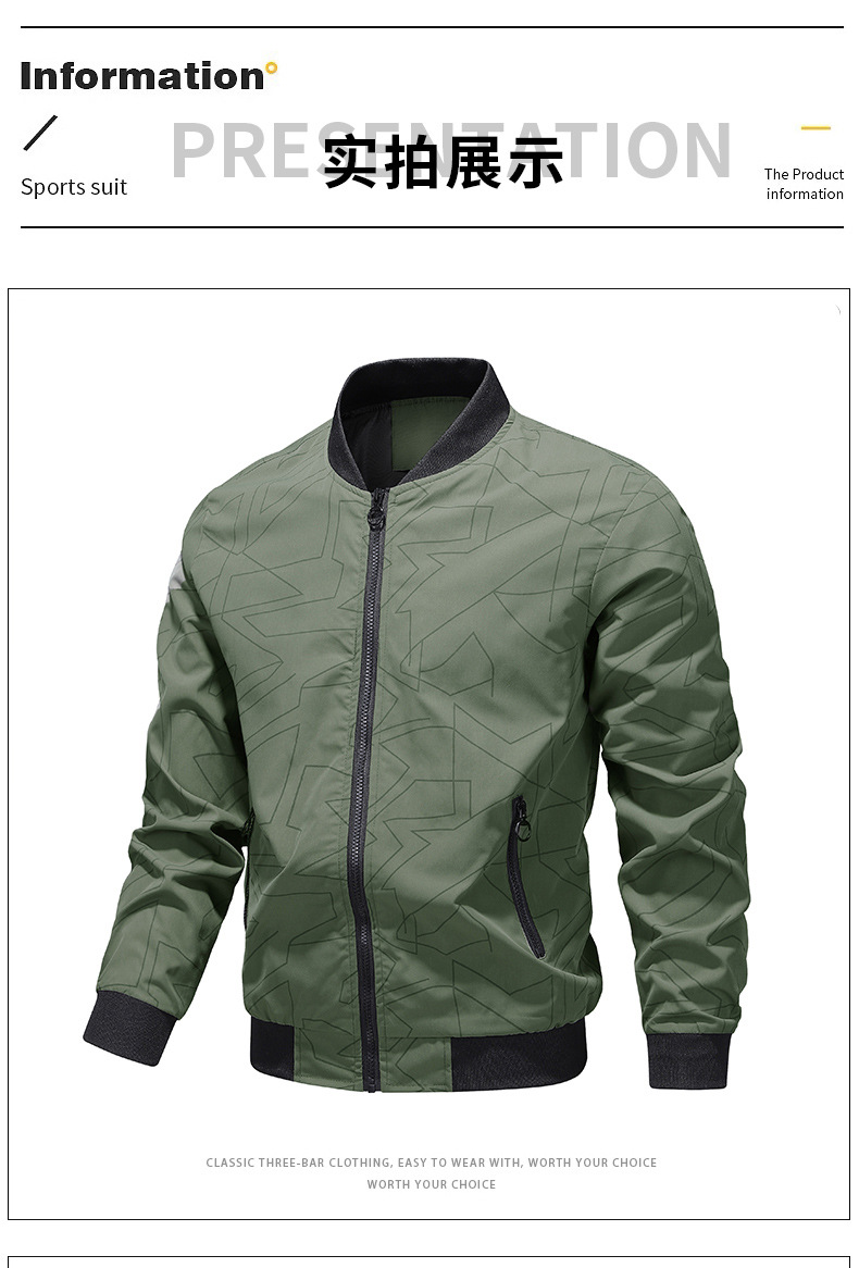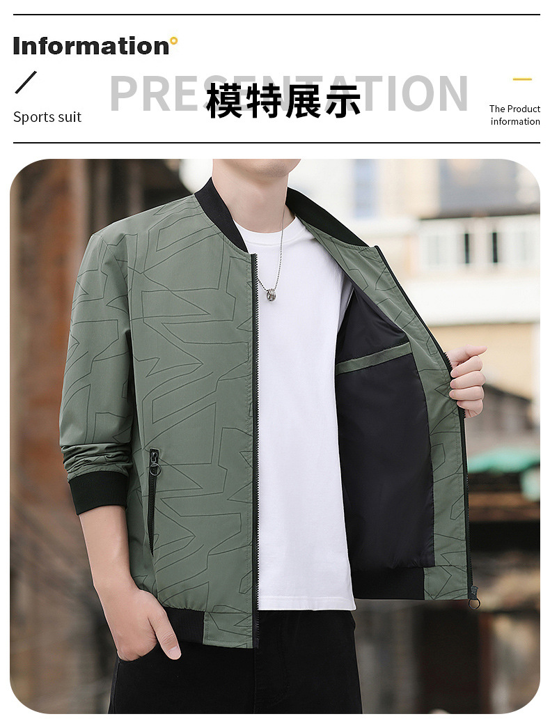 제조업체 도매 심플하고 세련된 젊은 남성용 재킷 야구 칼라 코트, 해외 전용 캐주얼 남성 디지털 프린팅스토어 가기