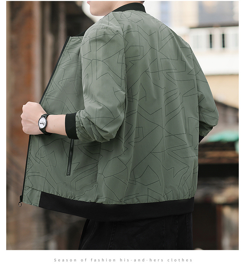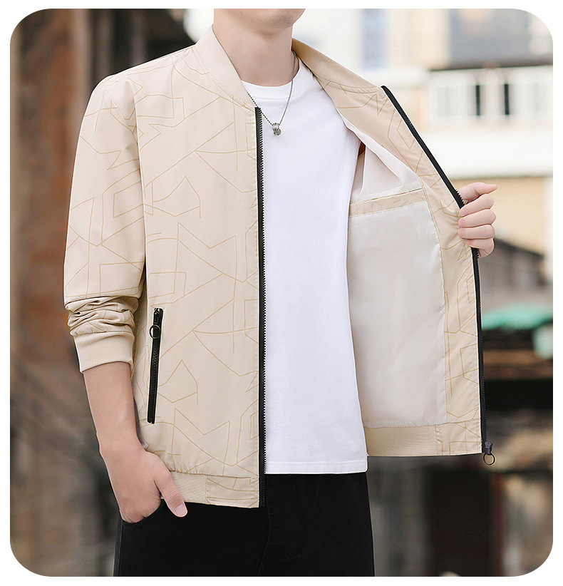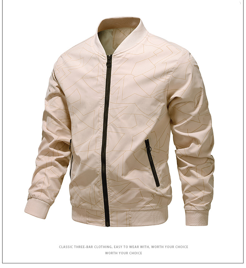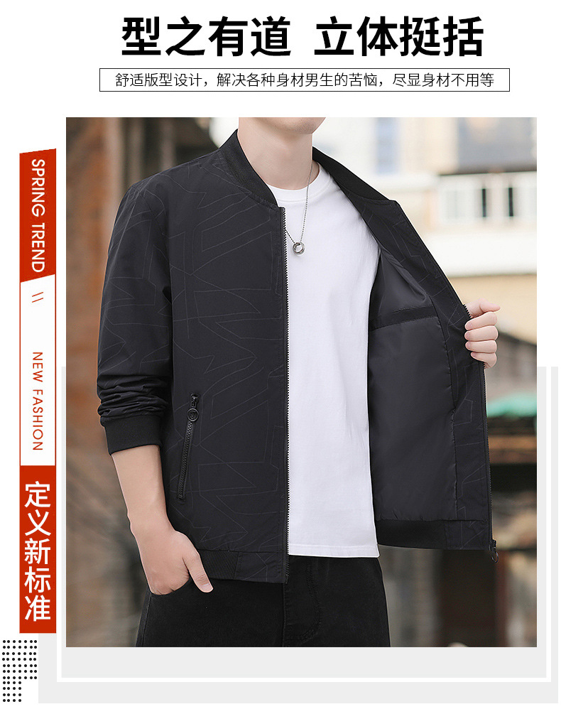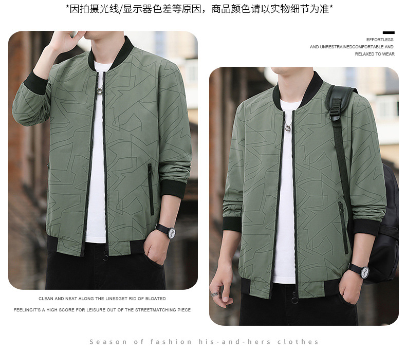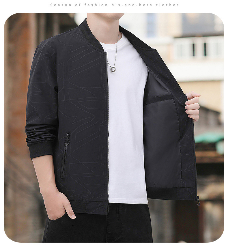 제조업체 도매 심플하고 세련된 젊은 남성용 재킷 야구 칼라 코트, 해외 전용 캐주얼 남성 디지털 프린팅