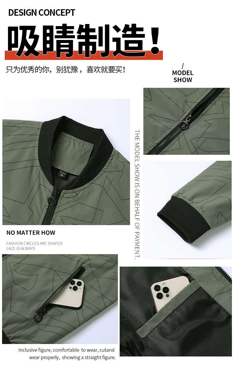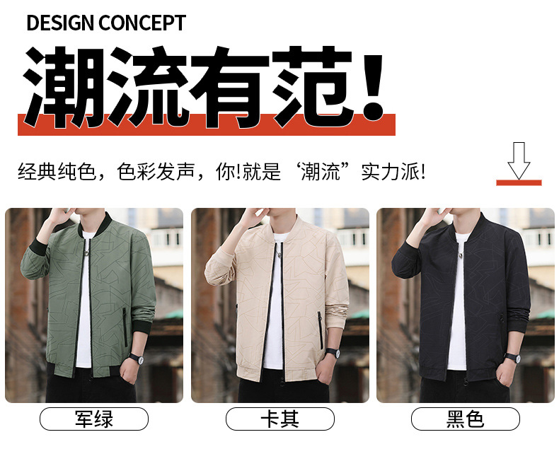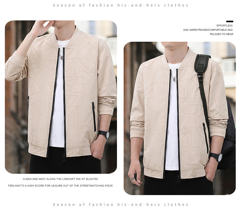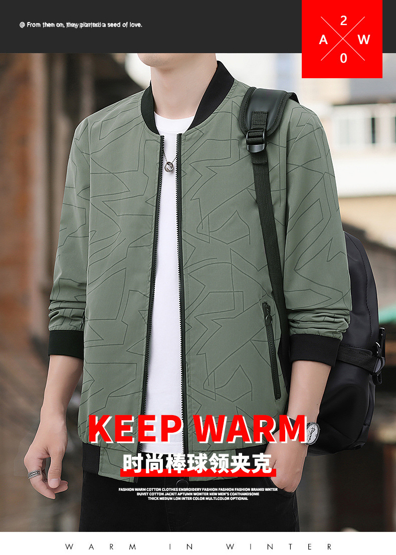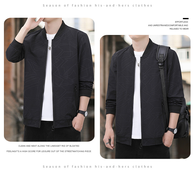 제조업체 도매 심플하고 세련된 젊은 남성용 재킷 야구 칼라 코트, 해외 전용 캐주얼 남성 디지털 프린팅