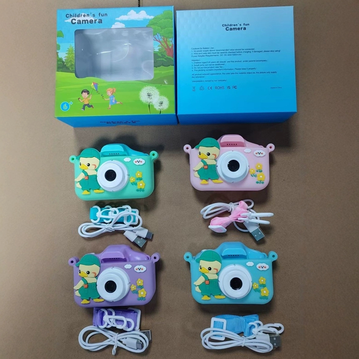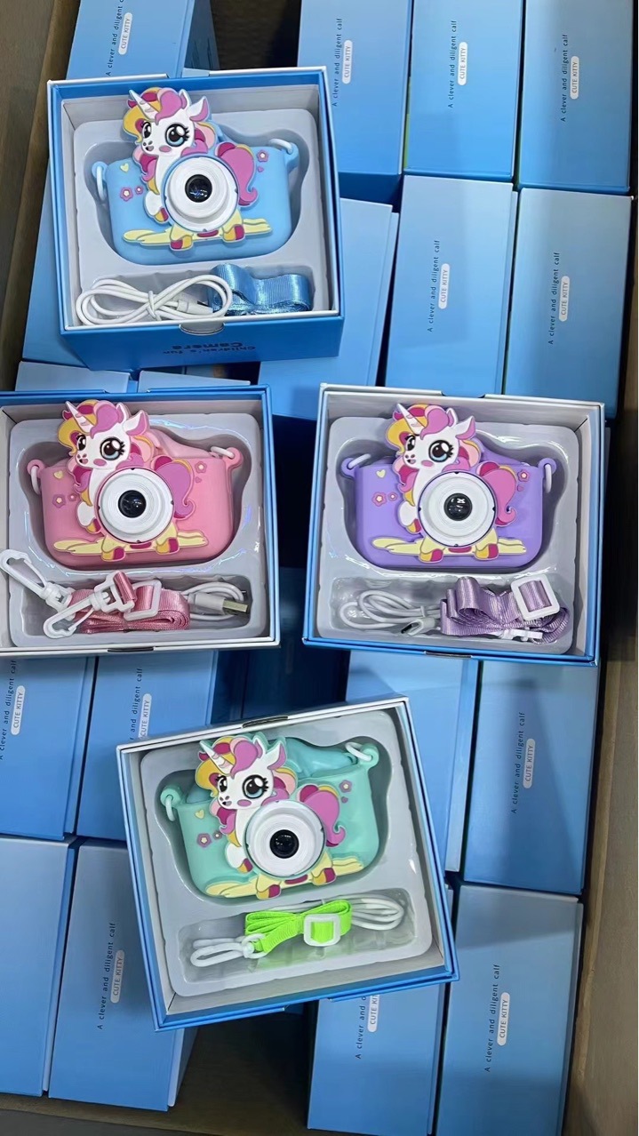 국경 새 어린이 카메라 HD 카메라 사진 비디오 귀여운 오리 장난감 사진 비디오 게임 선물스토어 가기