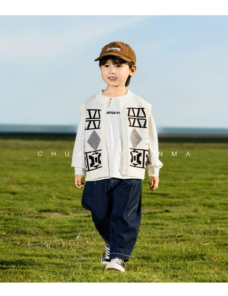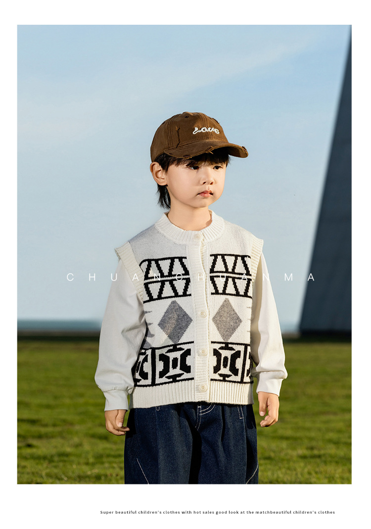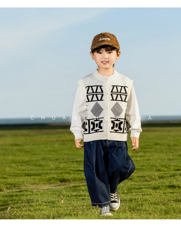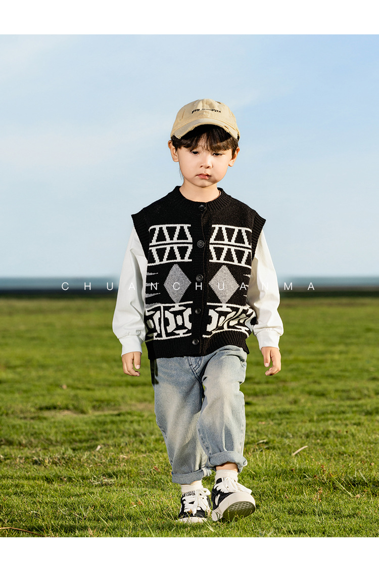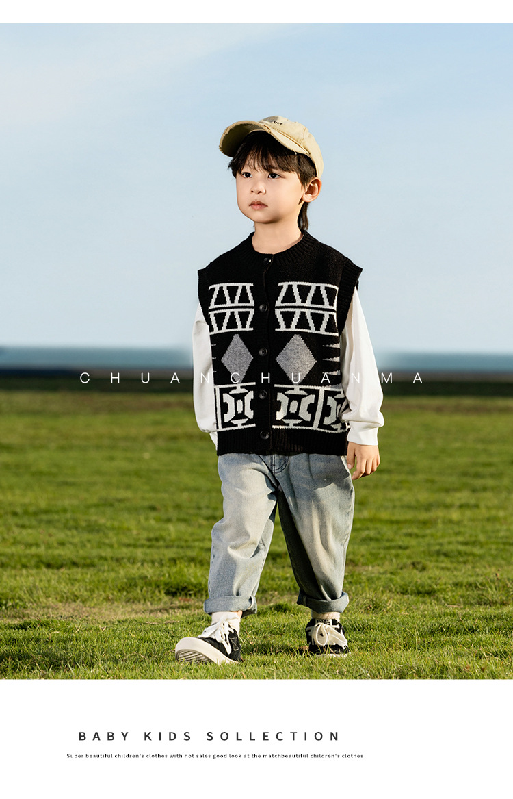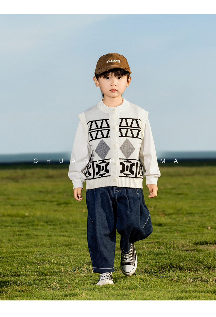 바람의 계곡 2025 봄 새로운 어린이 올 매치 빈티지 카디건 유행 봄과 가을 대학 스타일 니트 조끼 소년 소녀스토어 가기