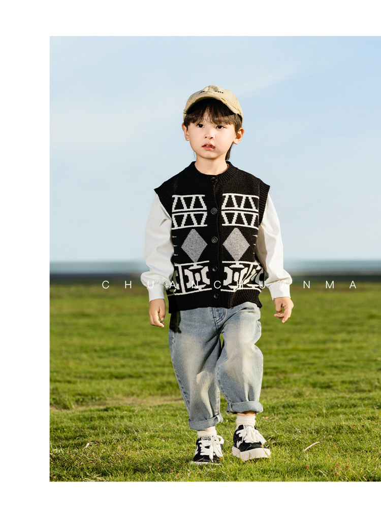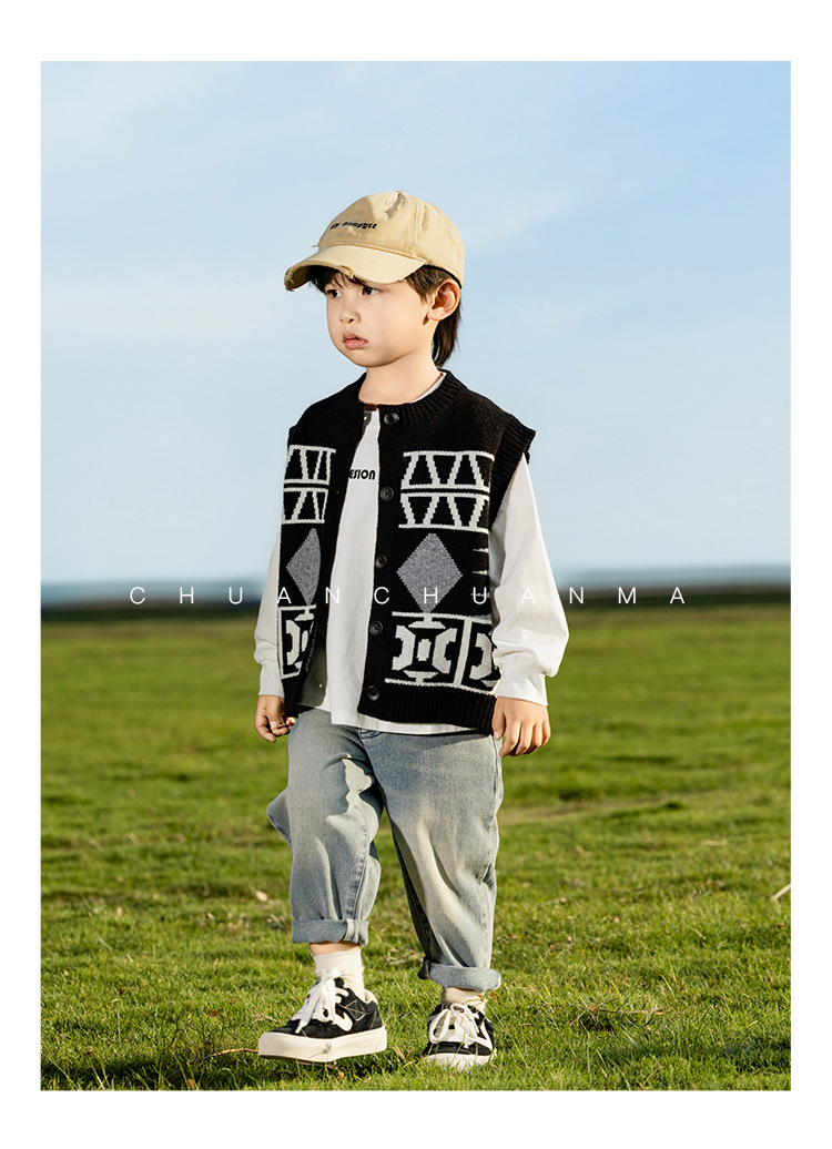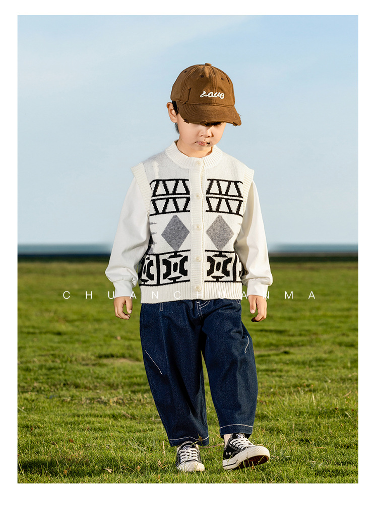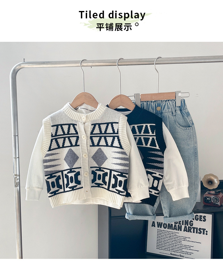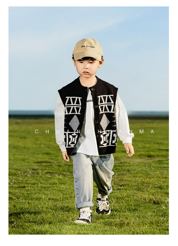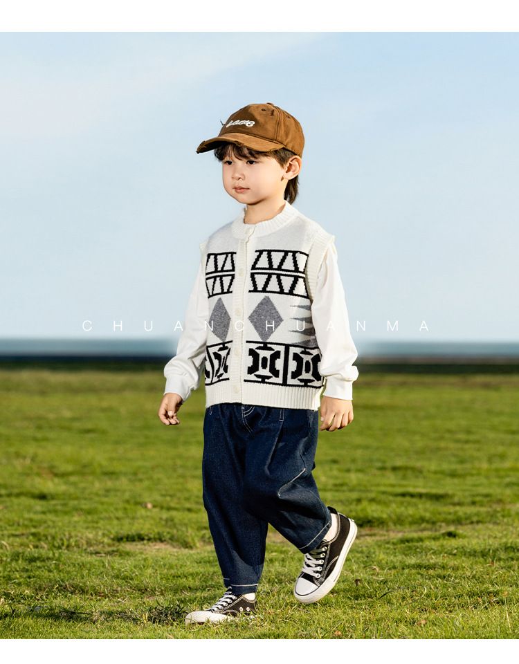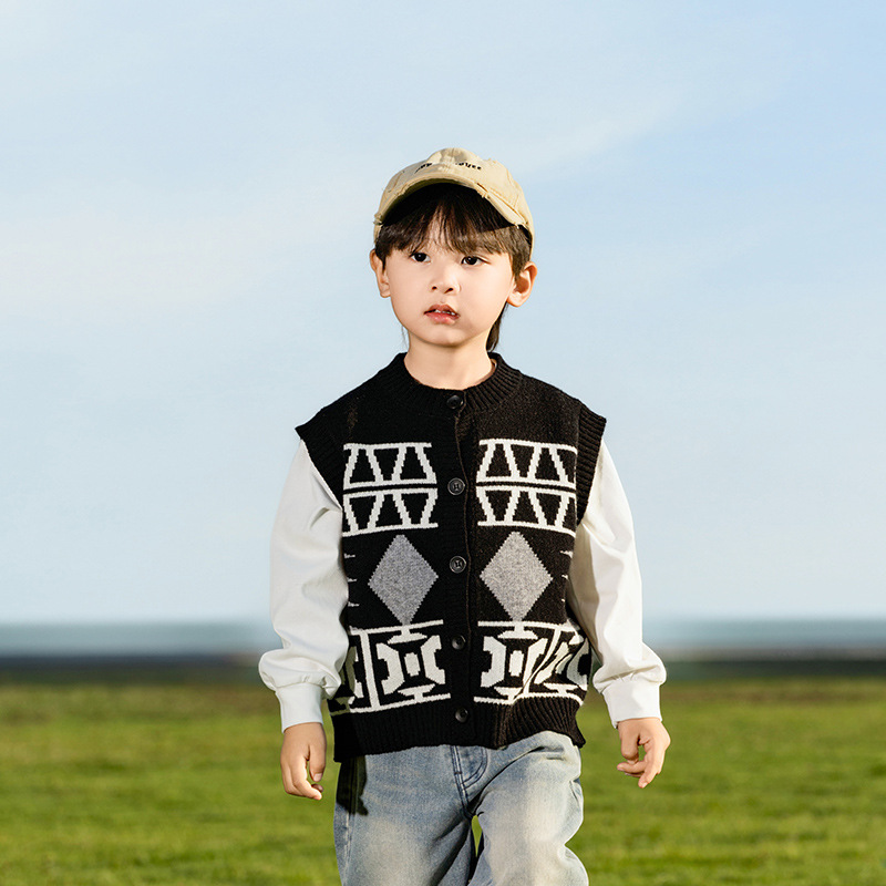 바람의 계곡 2025 봄 새로운 어린이 올 매치 빈티지 카디건 유행 봄과 가을 대학 스타일 니트 조끼 소년 소녀스토어 가기