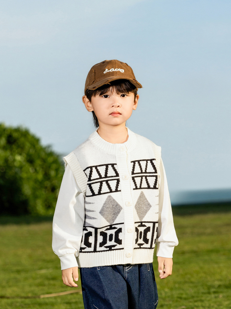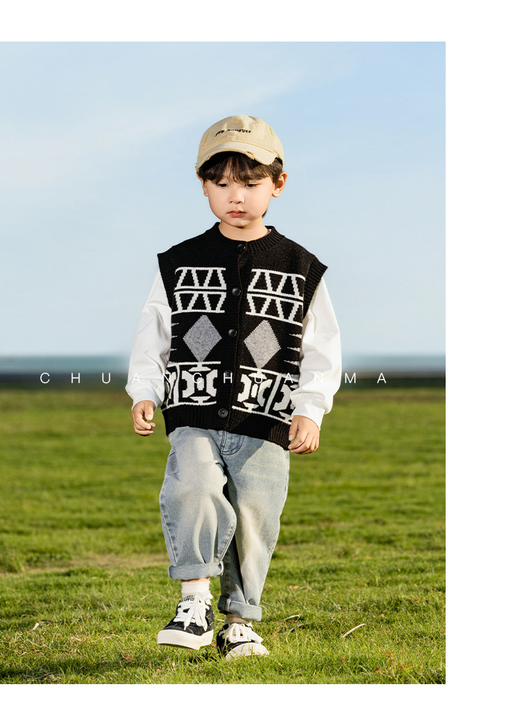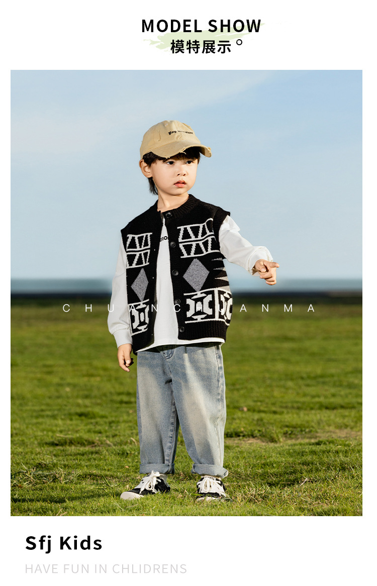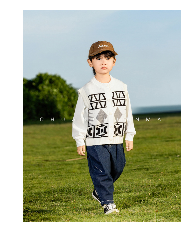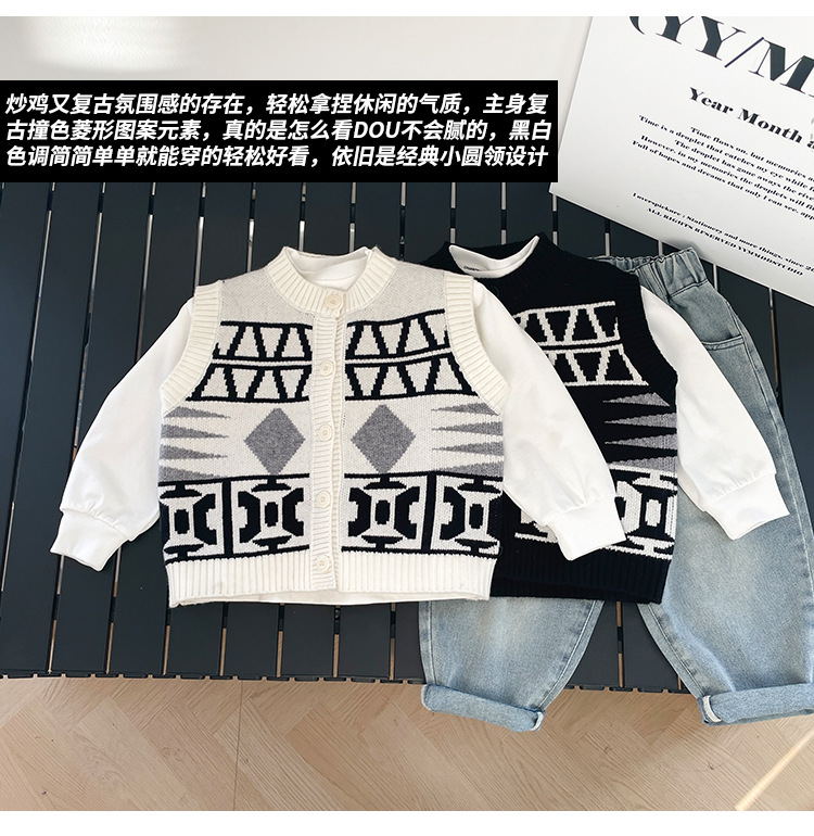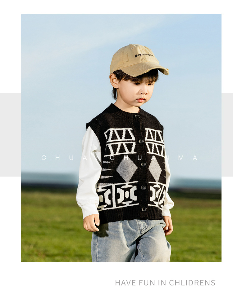 바람의 계곡 2025 봄 새로운 어린이 올 매치 빈티지 카디건 유행 봄과 가을 대학 스타일 니트 조끼 소년 소녀스토어 가기