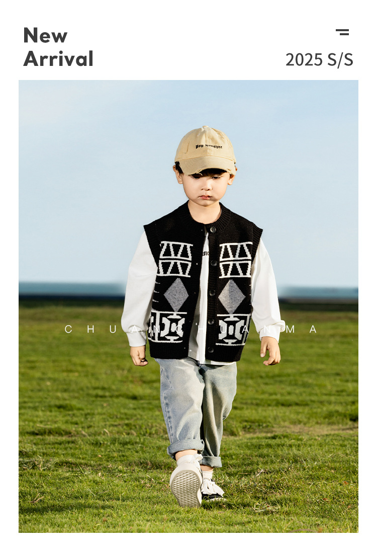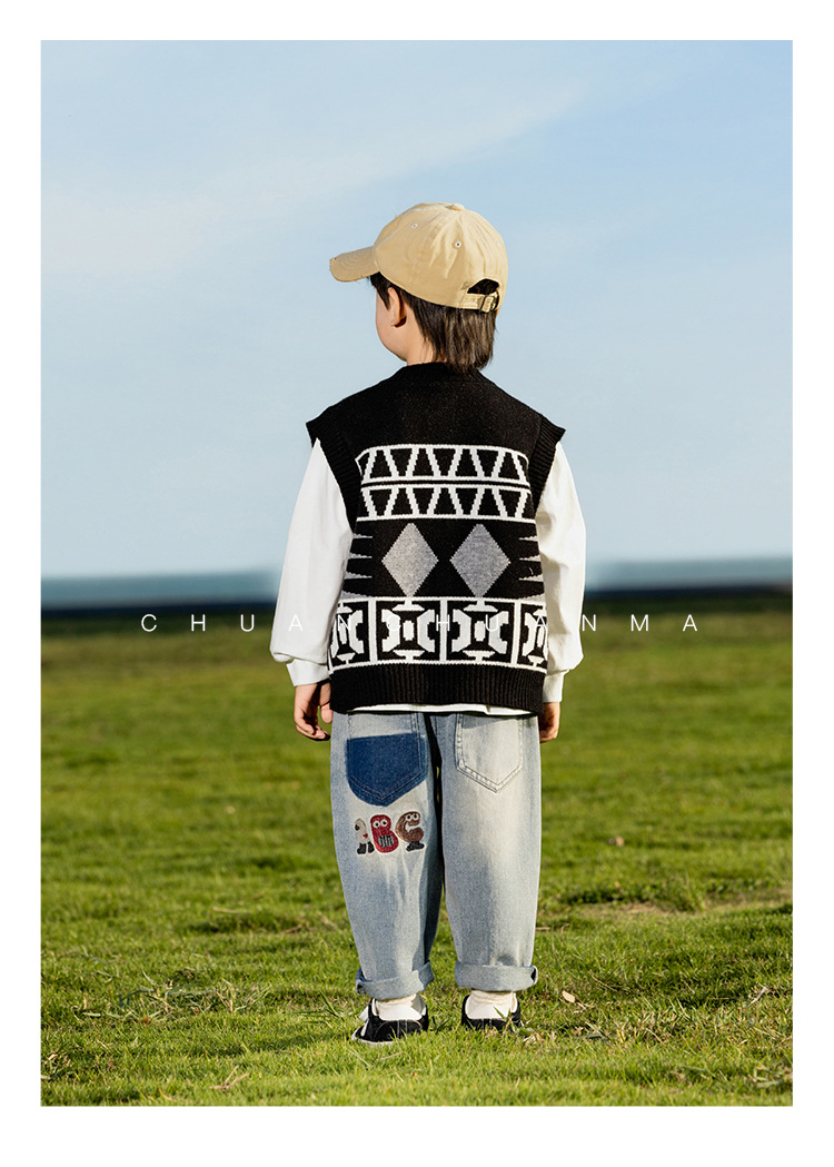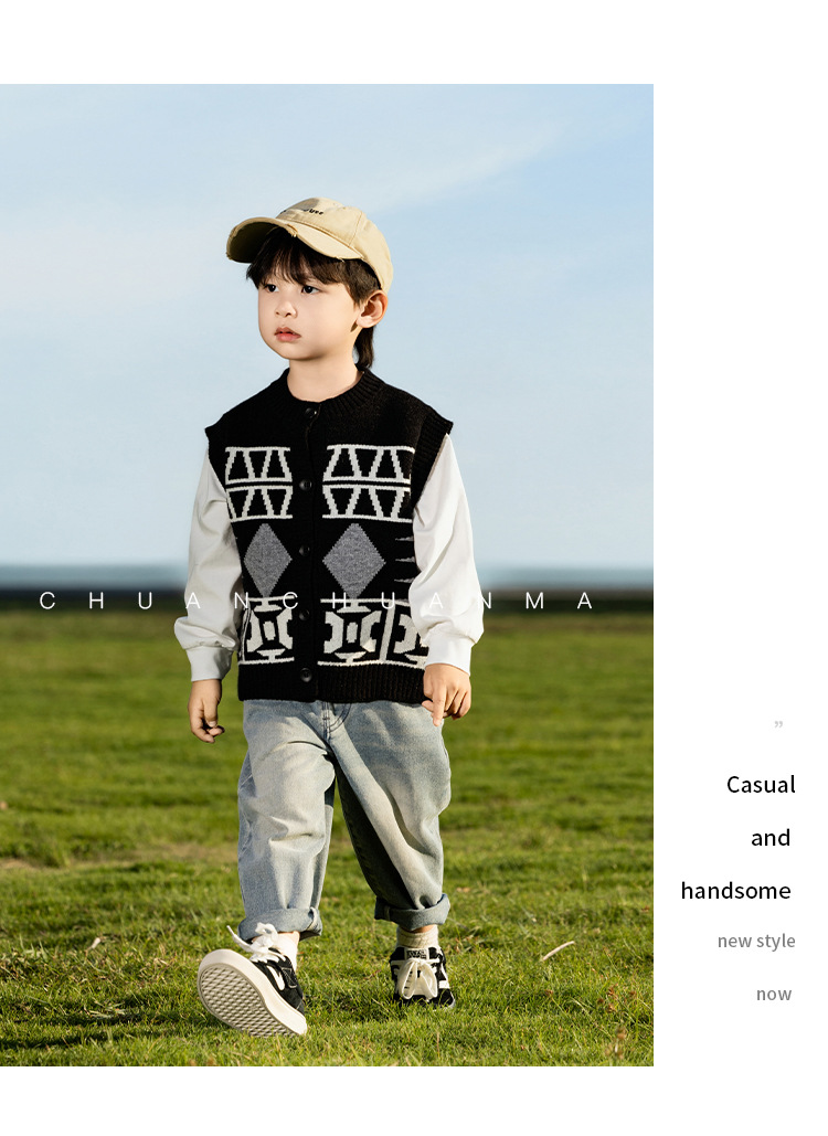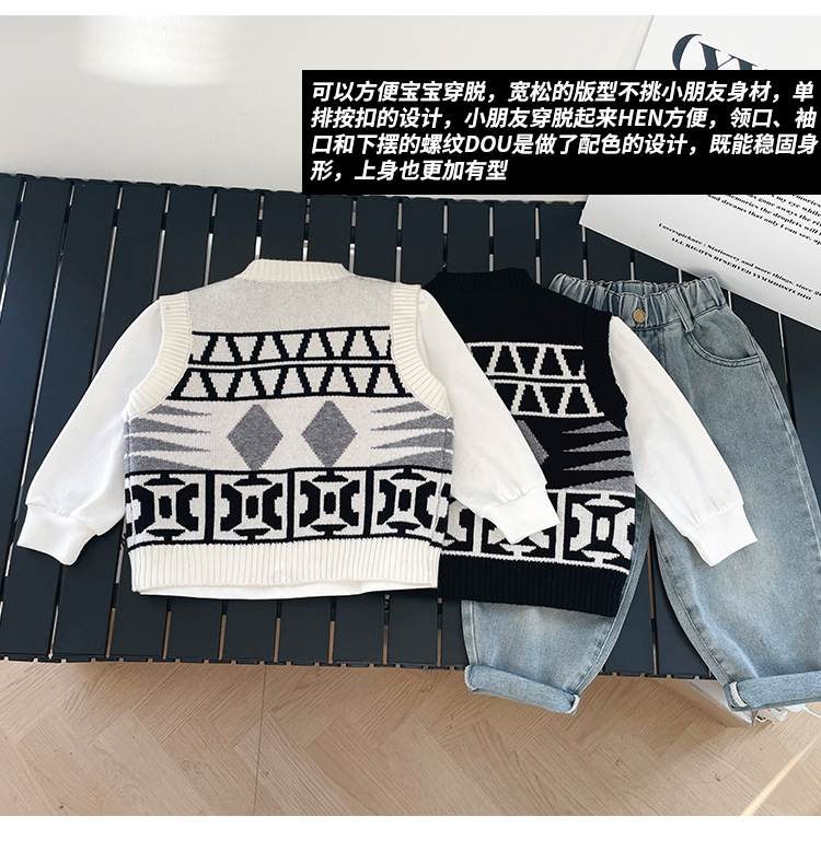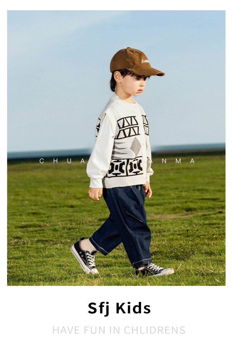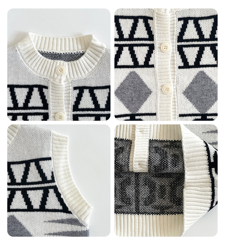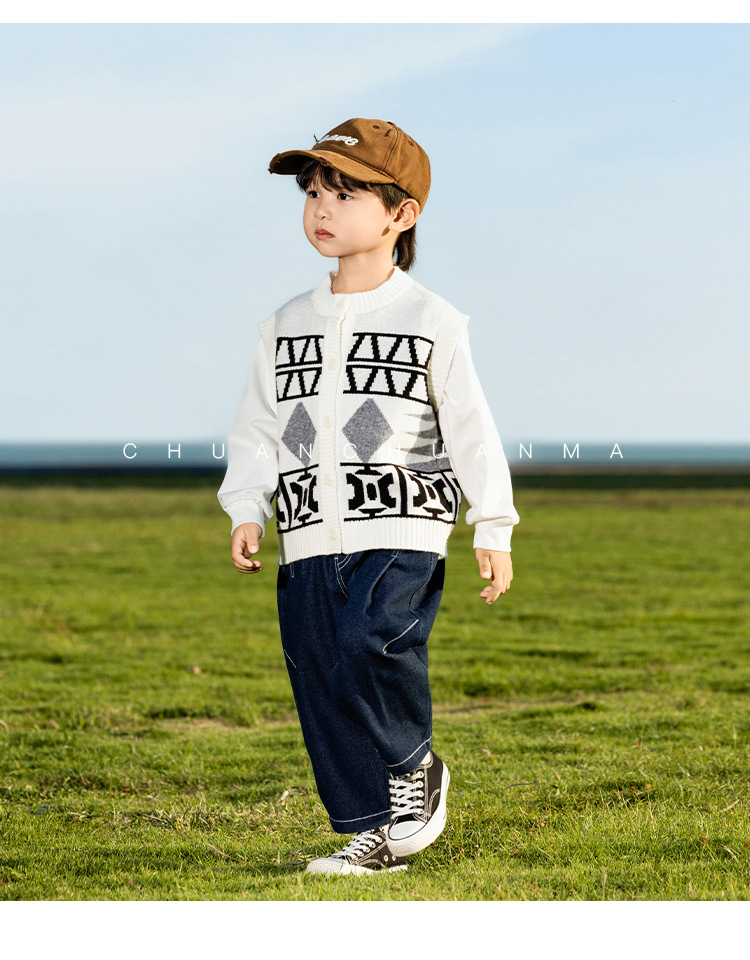 바람의 계곡 2025 봄 새로운 어린이 올 매치 빈티지 카디건 유행 봄과 가을 대학 스타일 니트 조끼 소년 소녀스토어 가기
