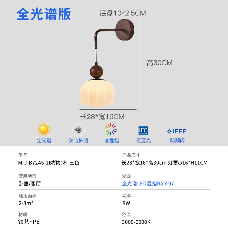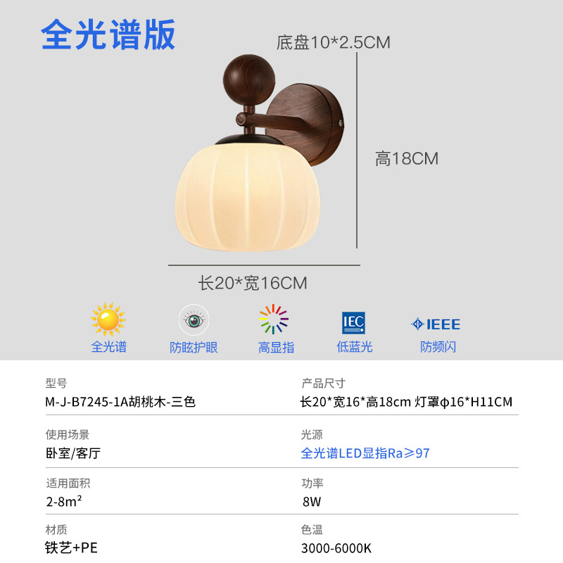프랑스 중간 스타일 침실 벽 램프 크림 스타일 창조적 인 호박 장식 램프 TV 배경 벽 램프 침실 벽 램프