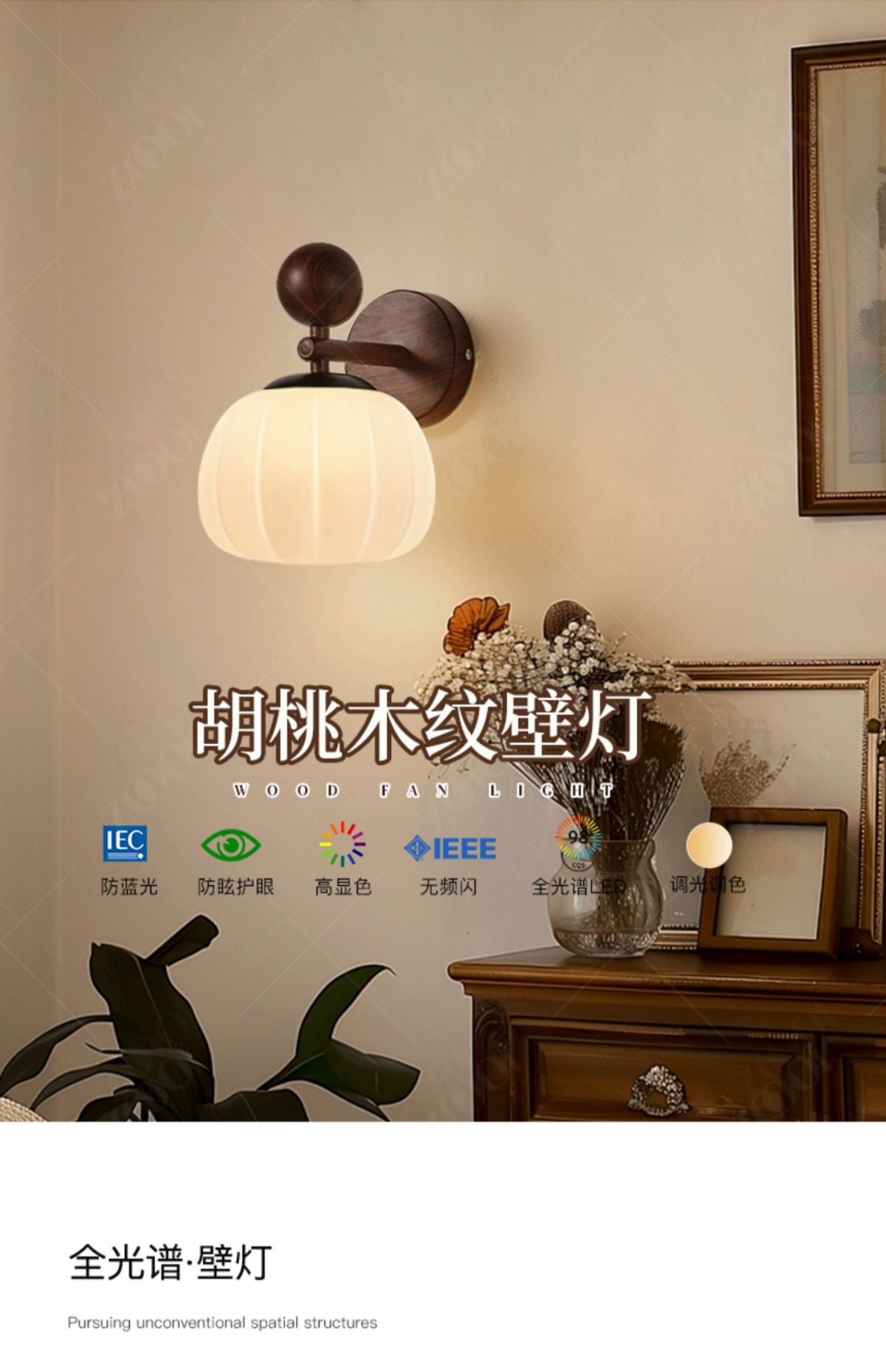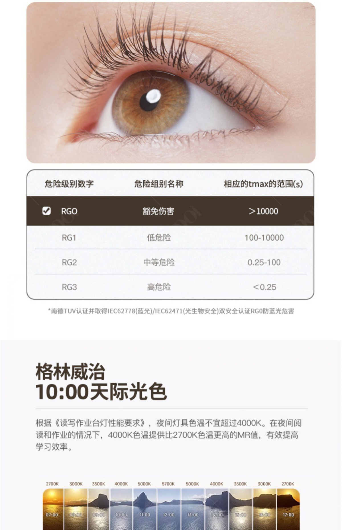 • [풀 스펙트럼 눈 보호] 모델 A/월넛 컬러/3톤 조명
