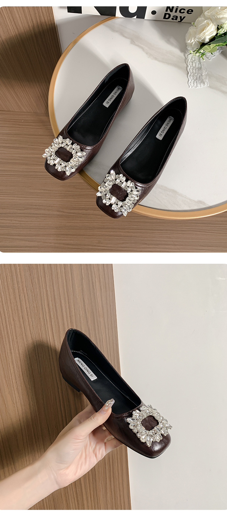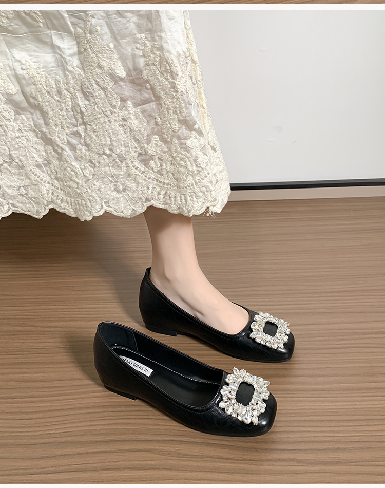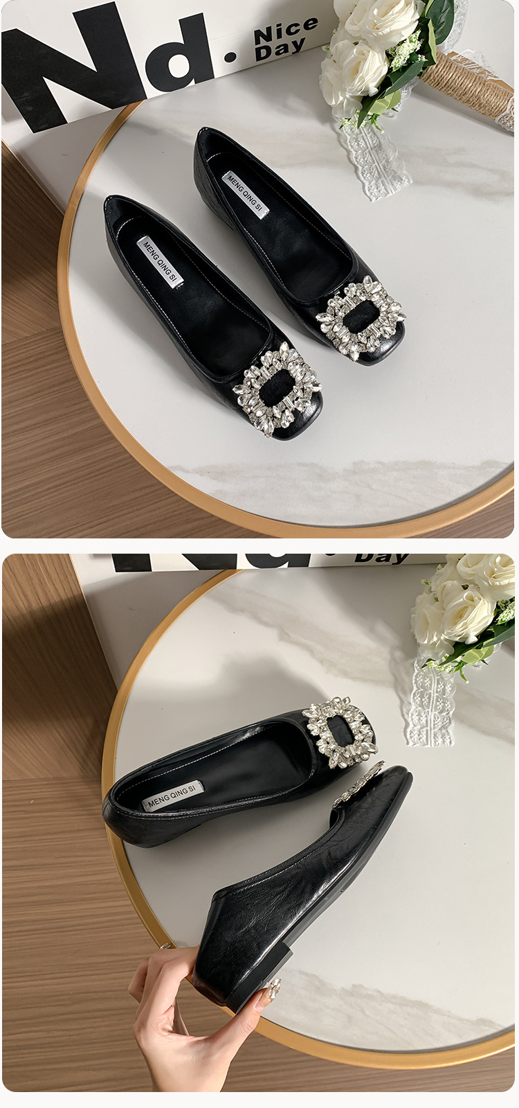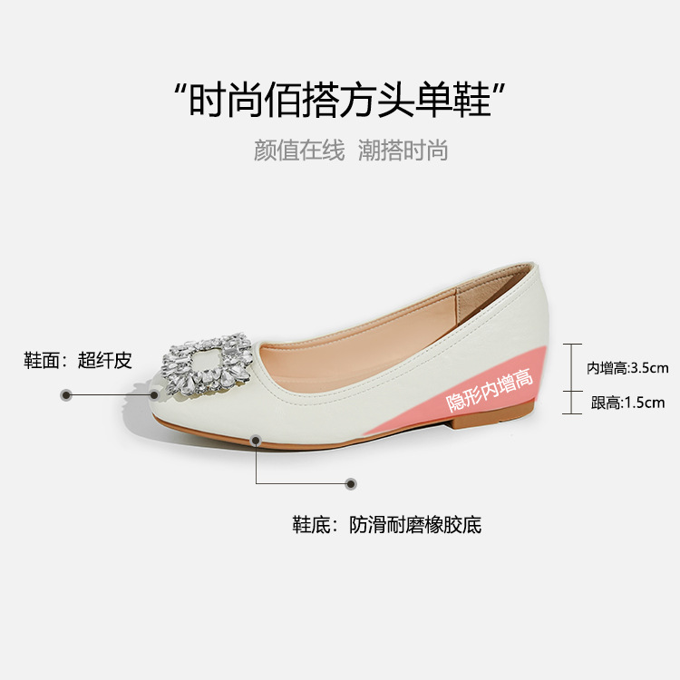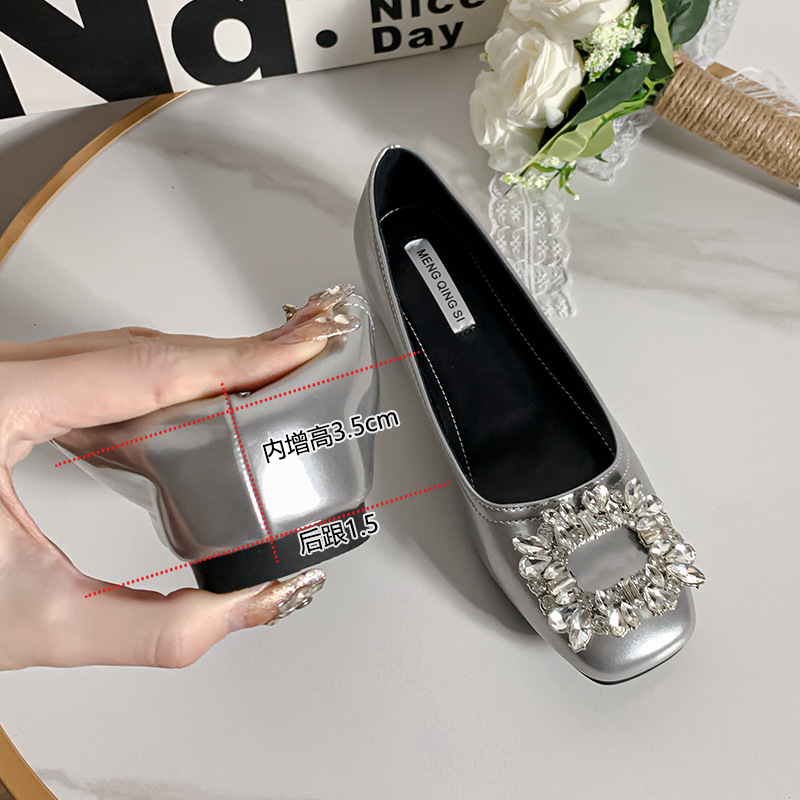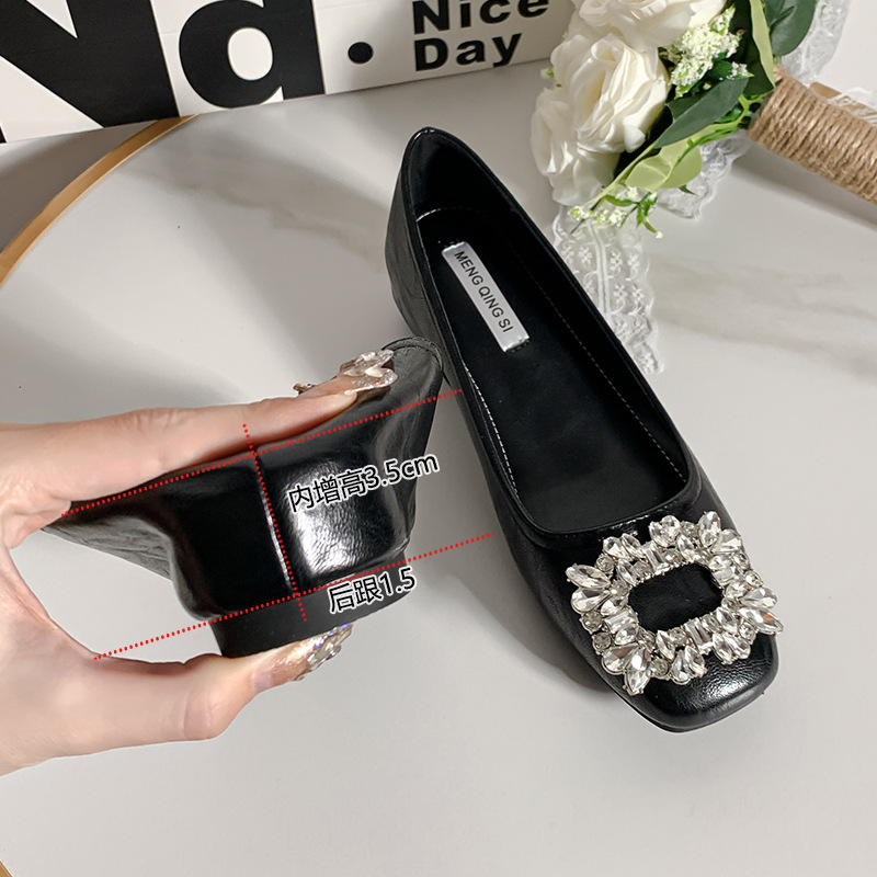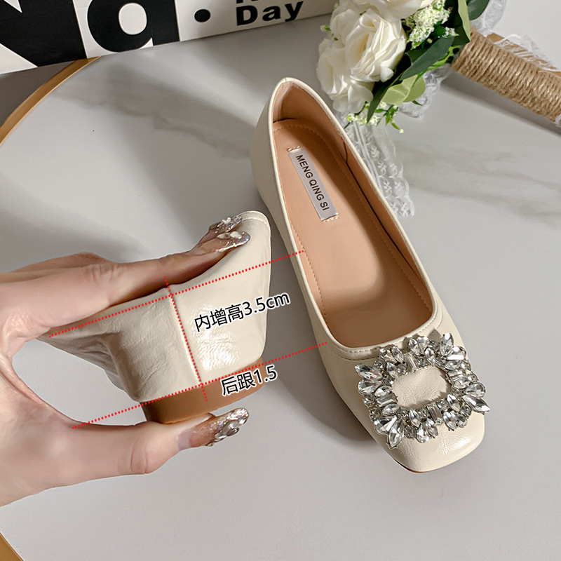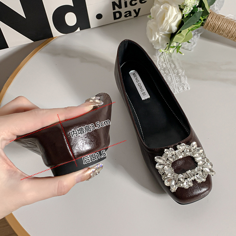 스퀘어 버클 라인스톤 작은 높이 올리기 신발 여성의 2025 새로운 32 스몰 사이즈 스퀘어 이브닝 브리즈 통근 플랫 슈즈