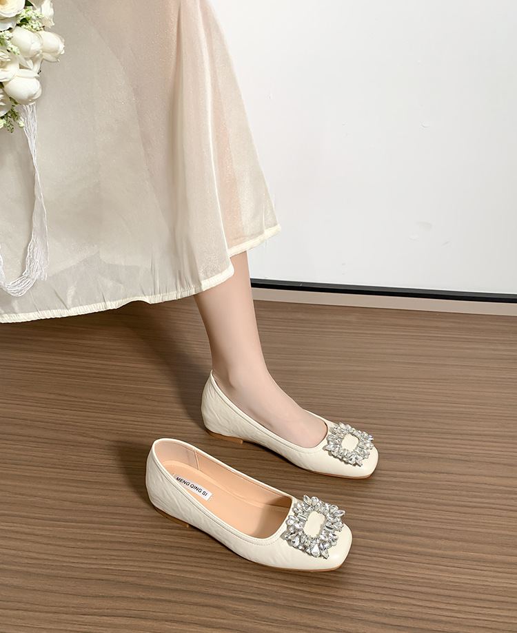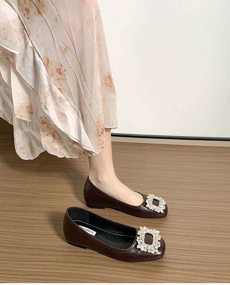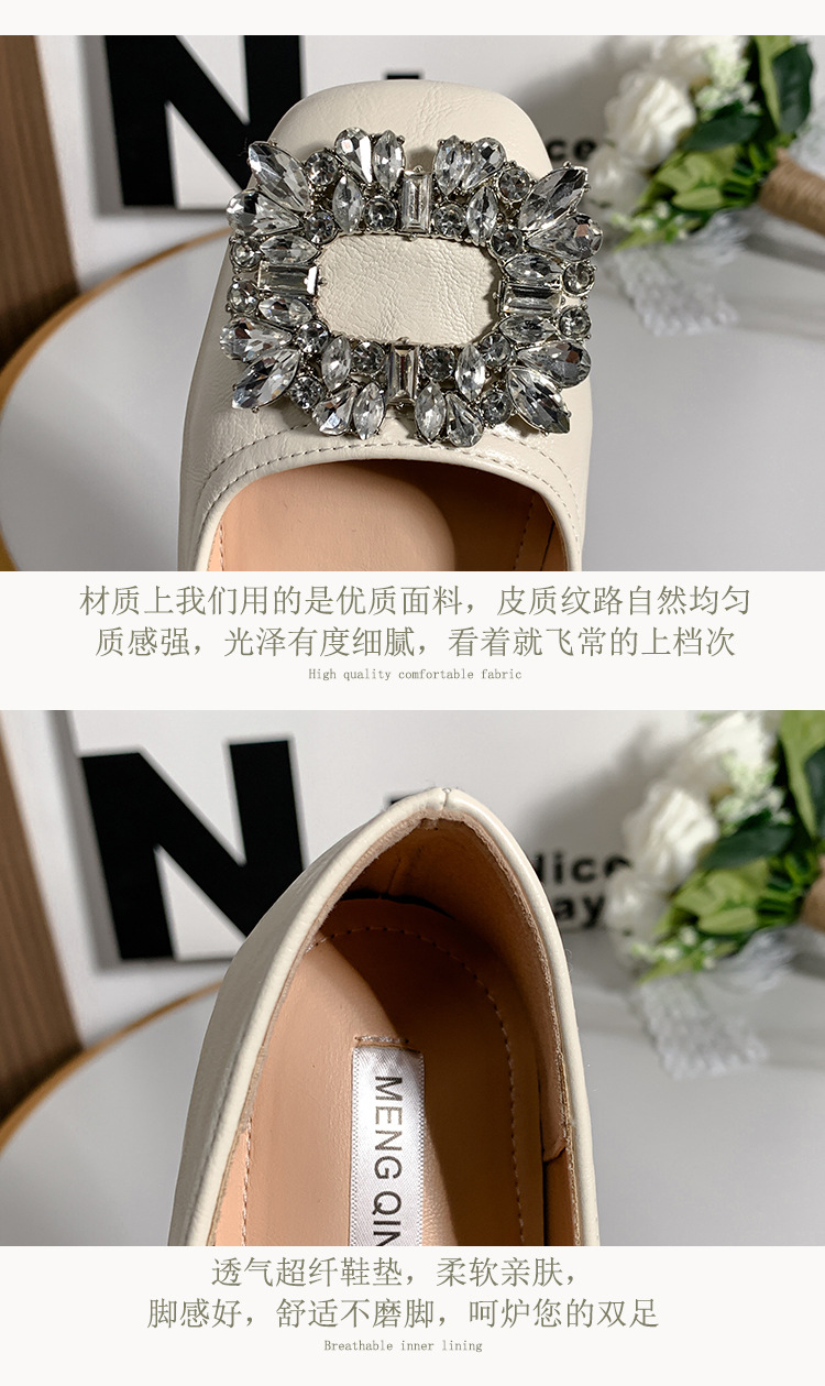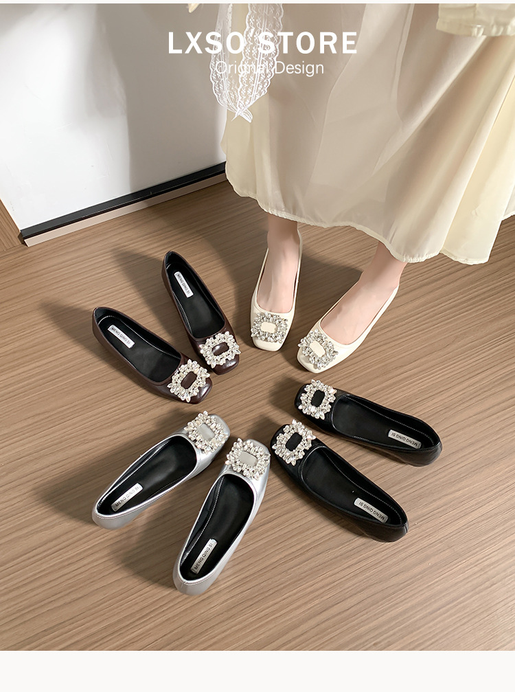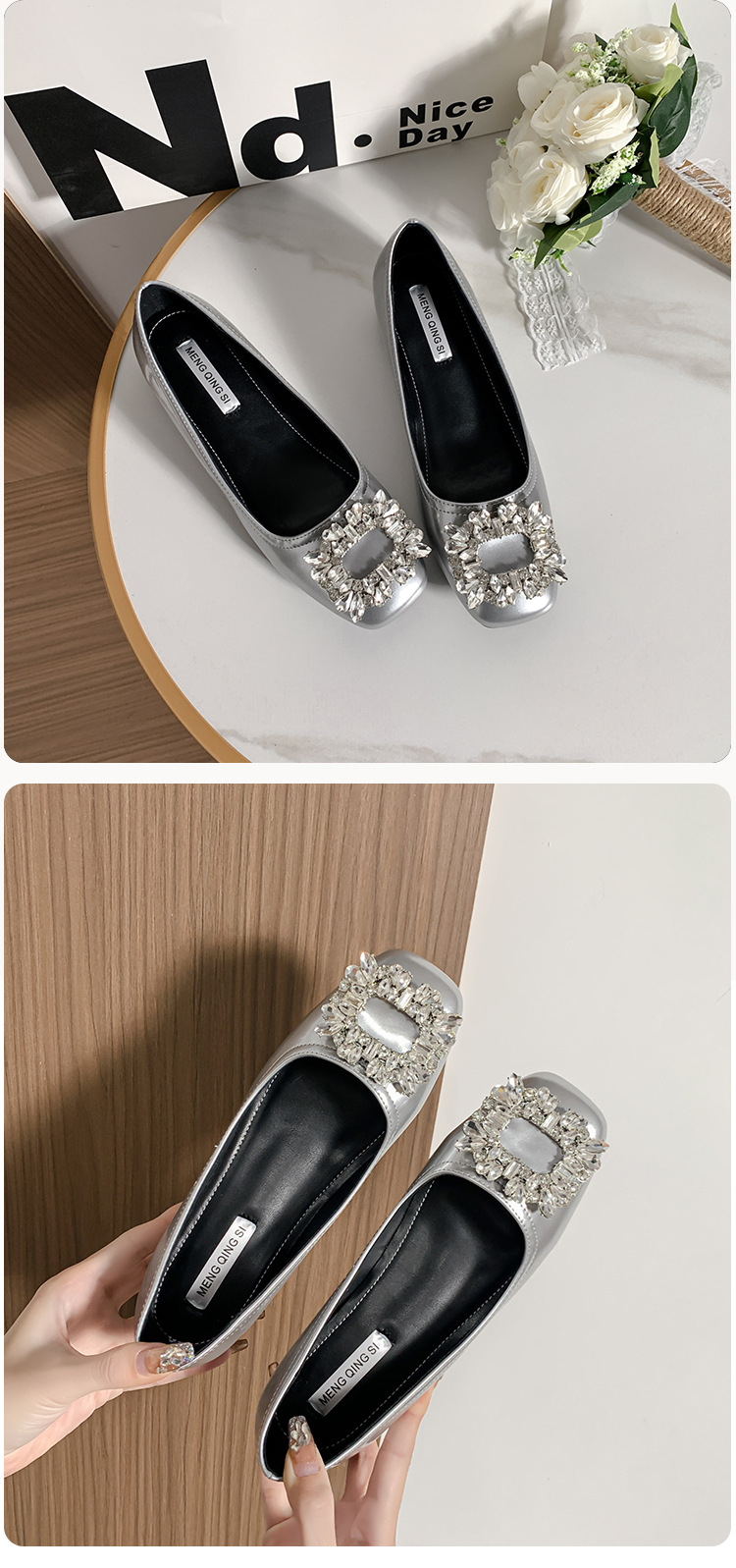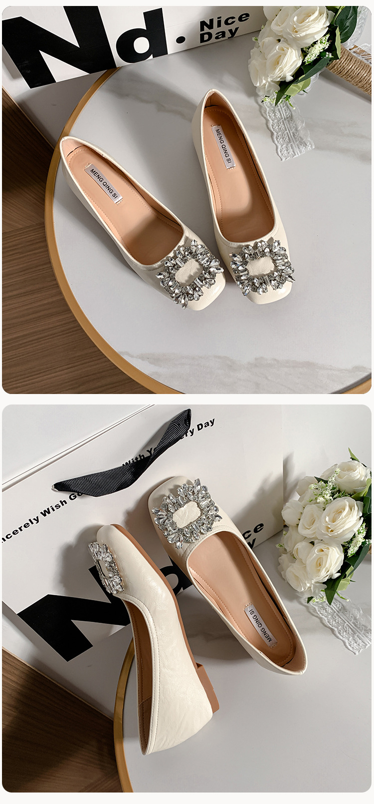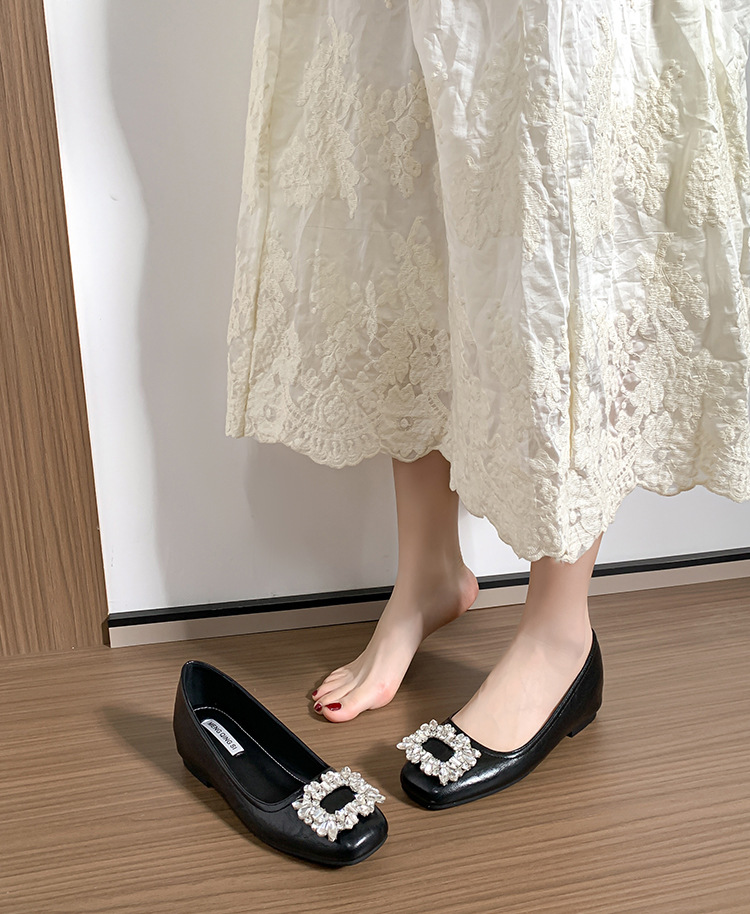 스퀘어 버클 라인스톤 작은 높이 올리기 신발 여성의 2025 새로운 32 스몰 사이즈 스퀘어 이브닝 브리즈 통근 플랫 슈즈