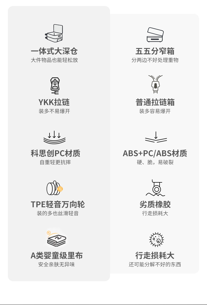 3.本厂承接各种定制箱包,欢迎咨询,材质目前有PP,PC,ABS+PC,铝框,皮质;支持各色图案,Logo定制,提供免费设计