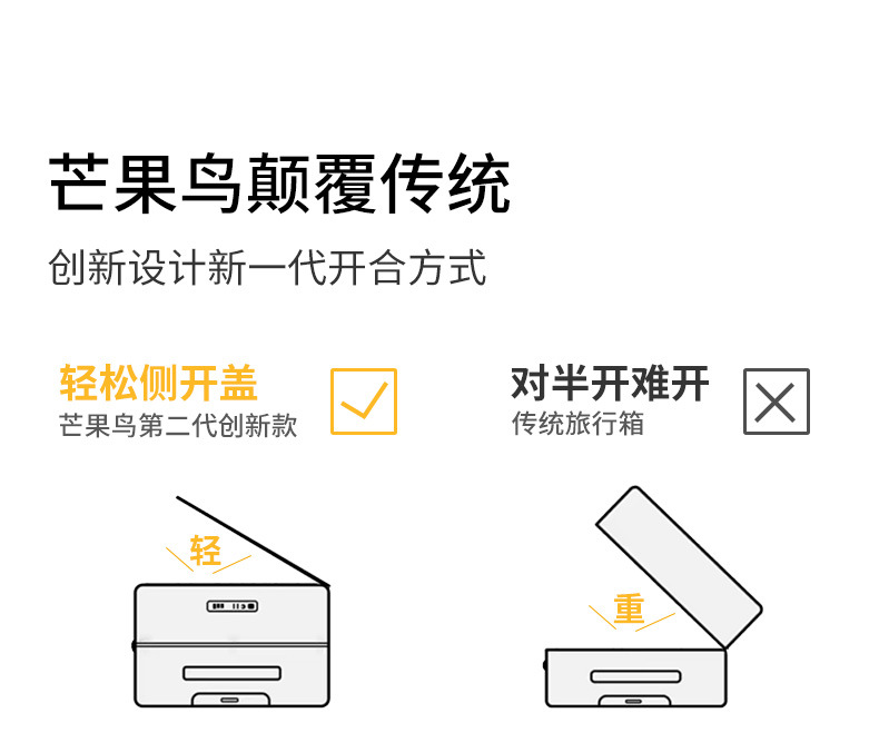 망고버드 사이드 오픈 뚜껑 여행가방 대용량 20inch 비즈니스 트롤리 케이스 남성용 출장 20inch 여성용 탑승 케이스스토어 가기