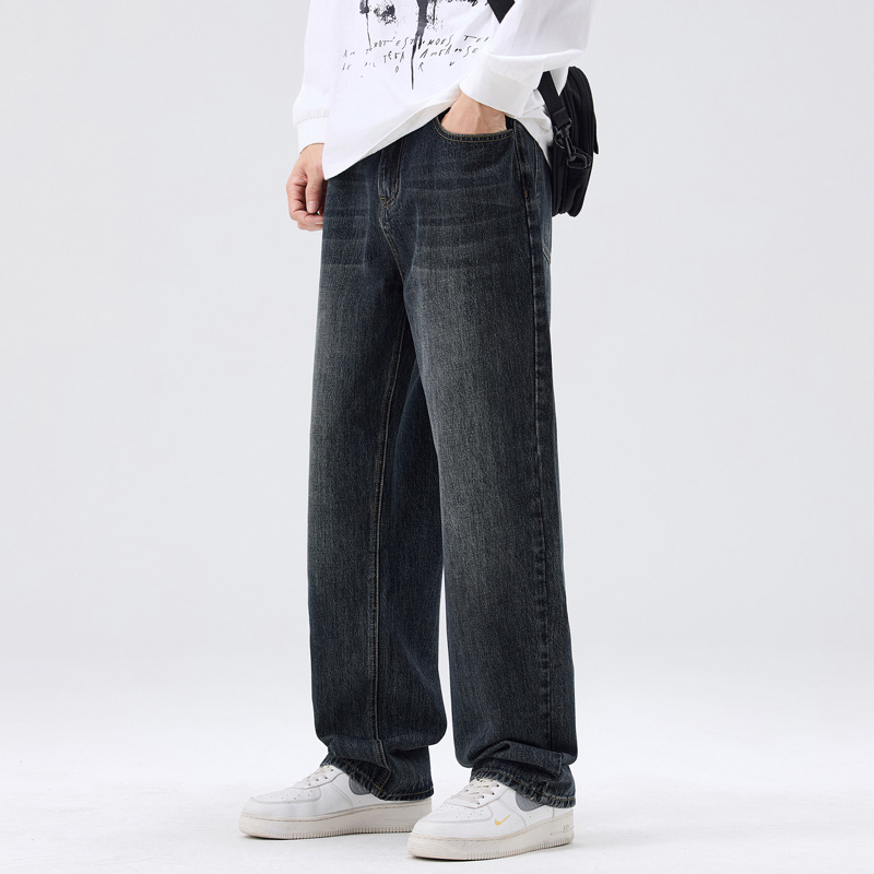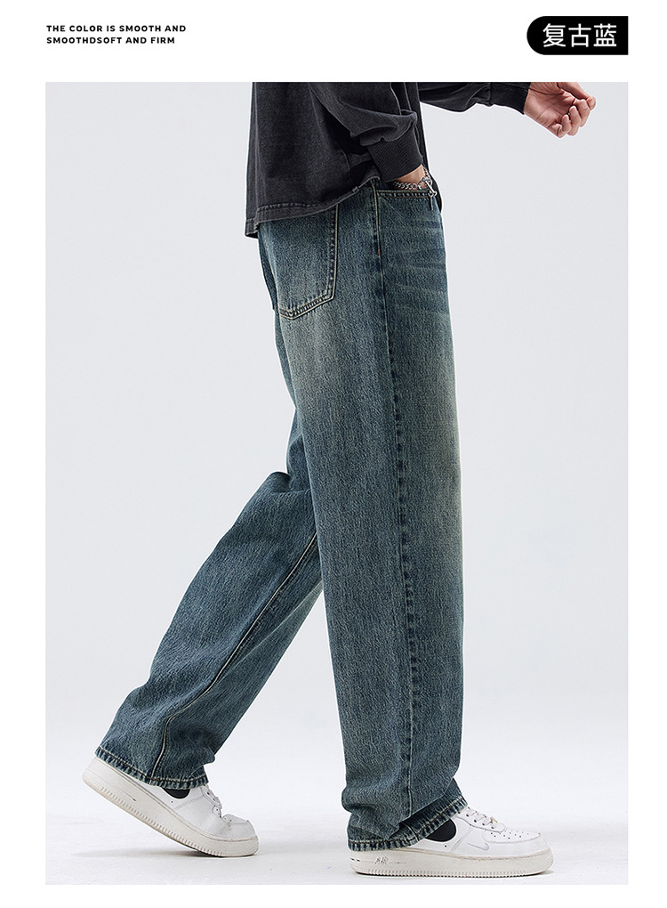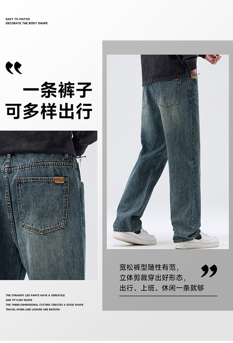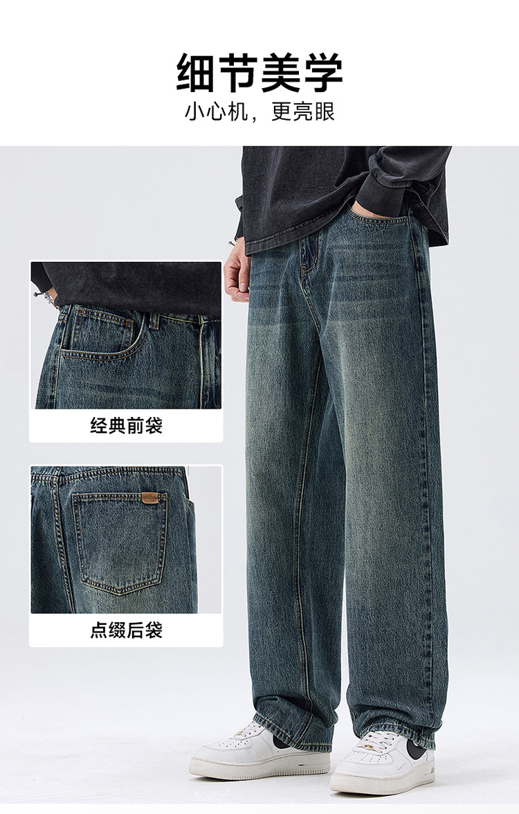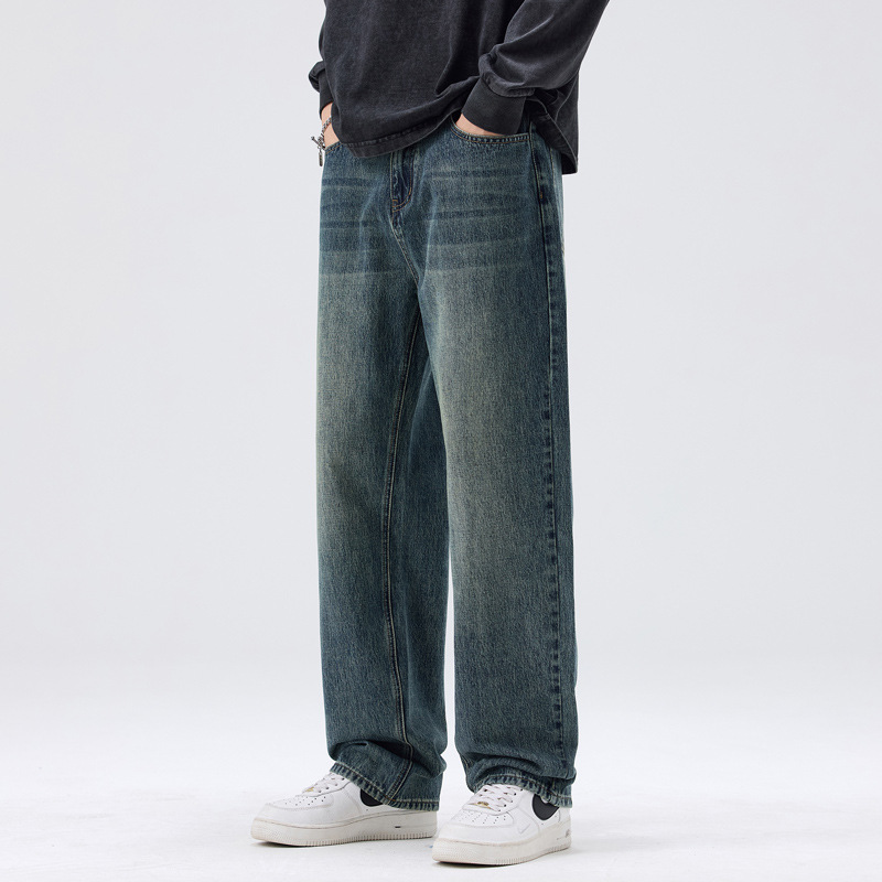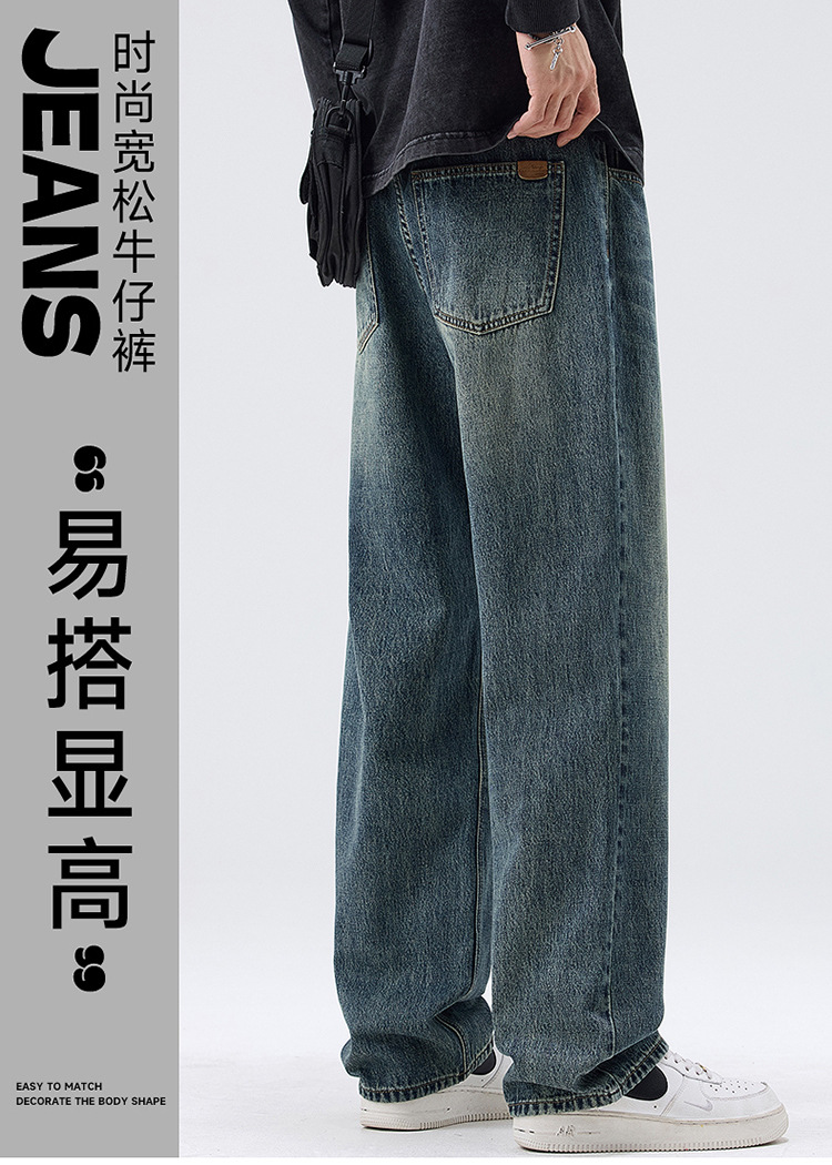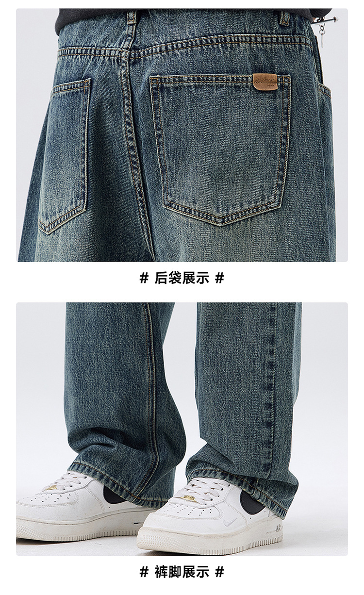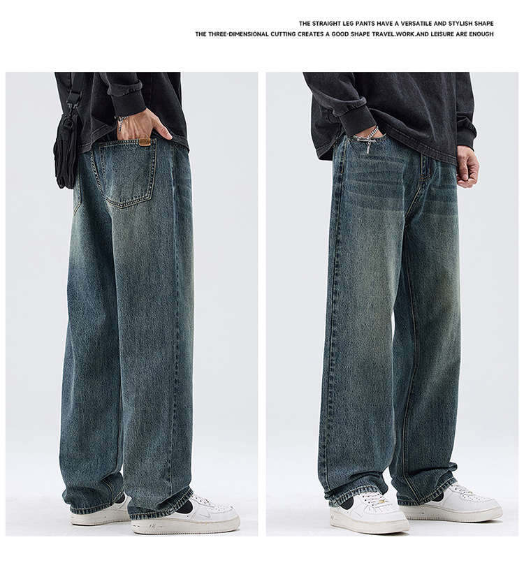 밍지 | 미국 복고풍 패션 브랜드 느슨한 넓은 다리 바지 남성 하이 스트리트 패션 캐주얼 스트레이트 청바지스토어 가기