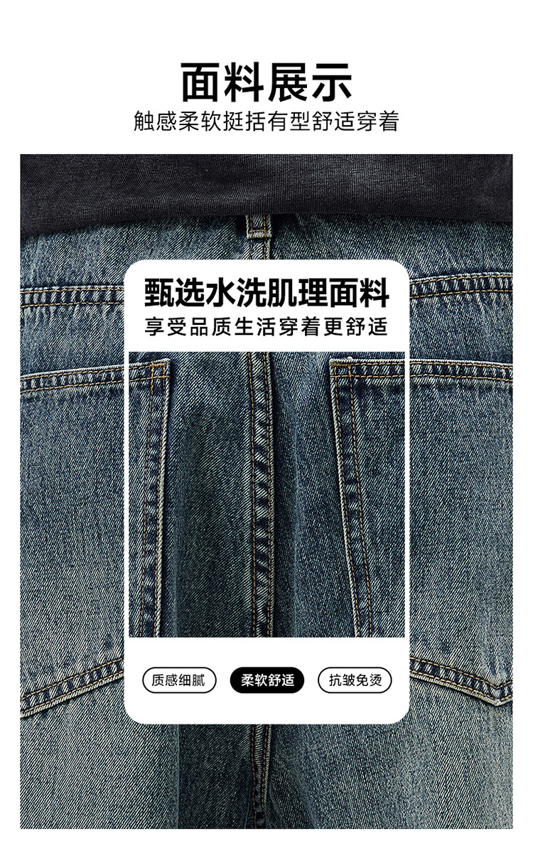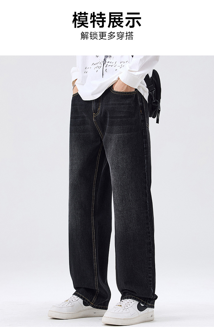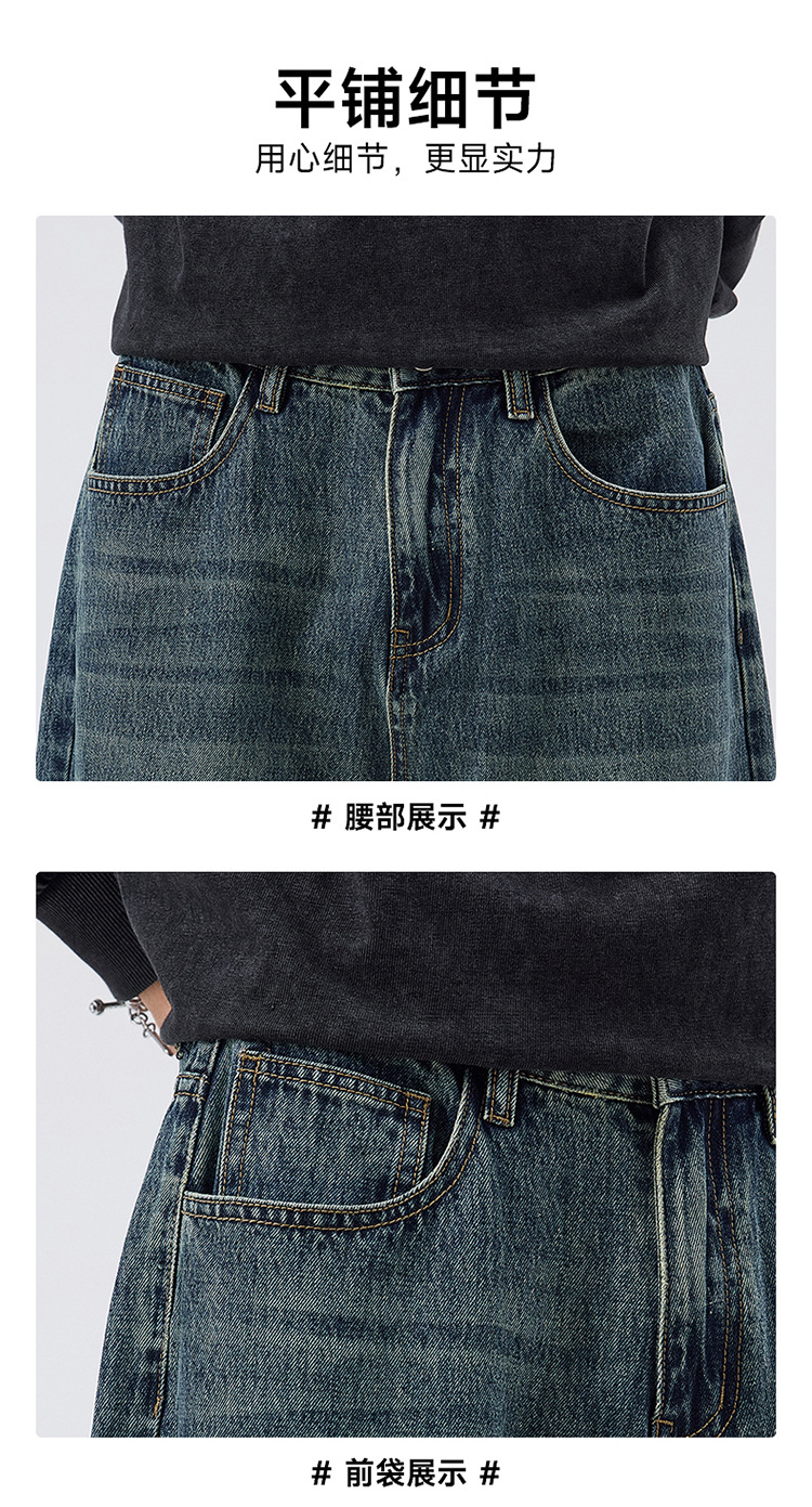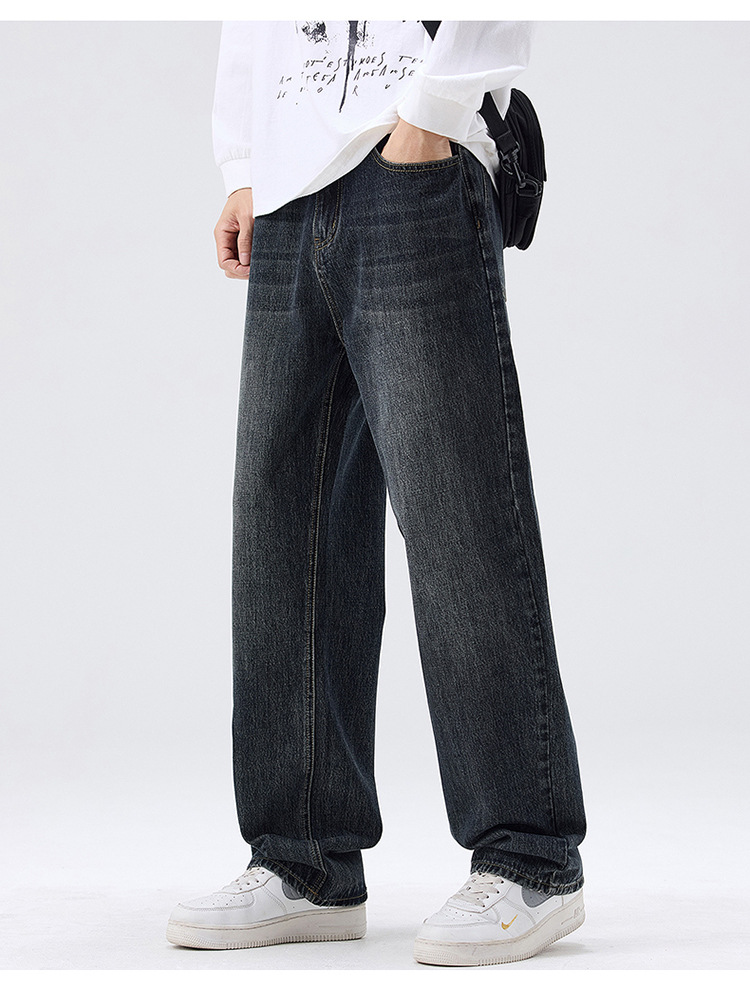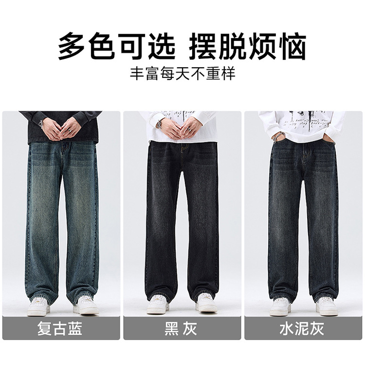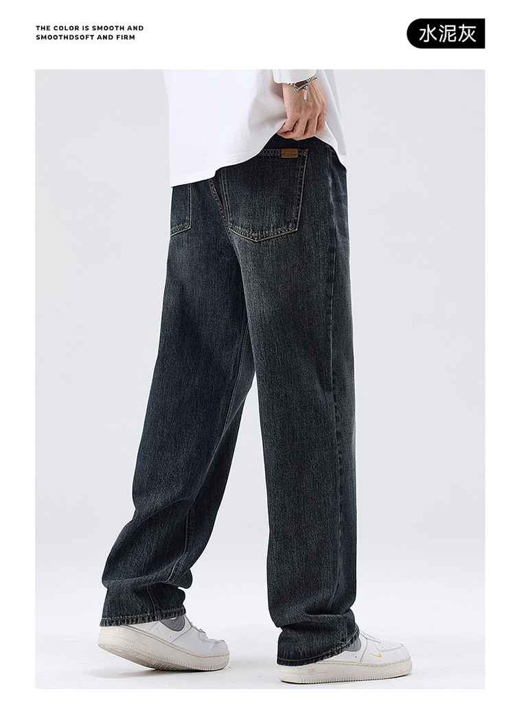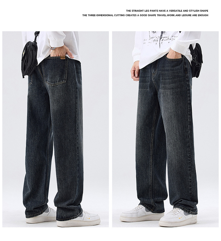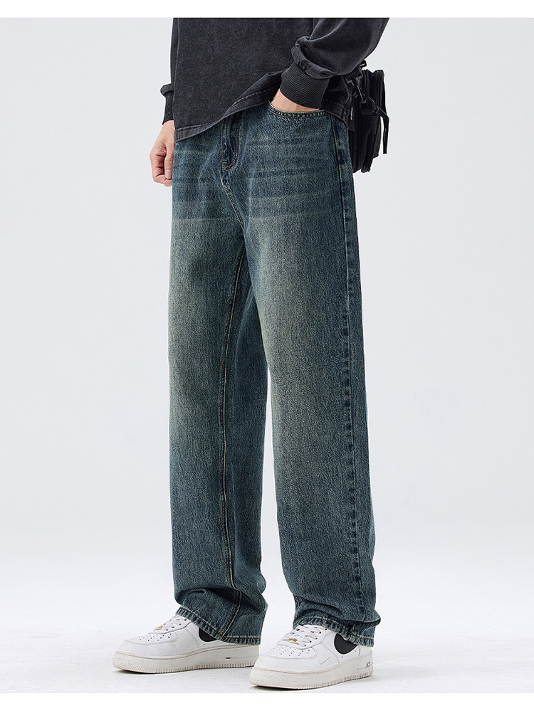 밍지 | 미국 복고풍 패션 브랜드 느슨한 넓은 다리 바지 남성 하이 스트리트 패션 캐주얼 스트레이트 청바지스토어 가기