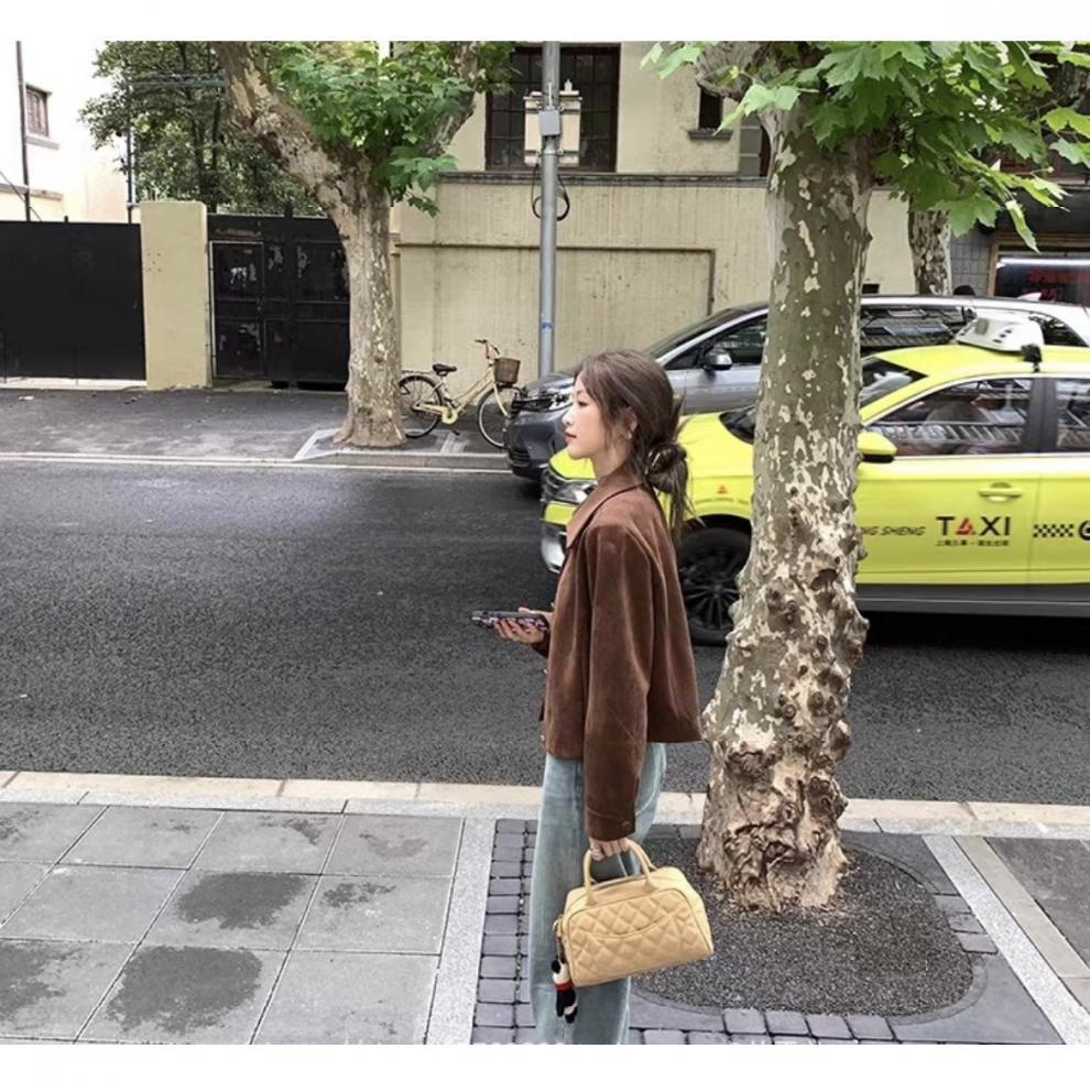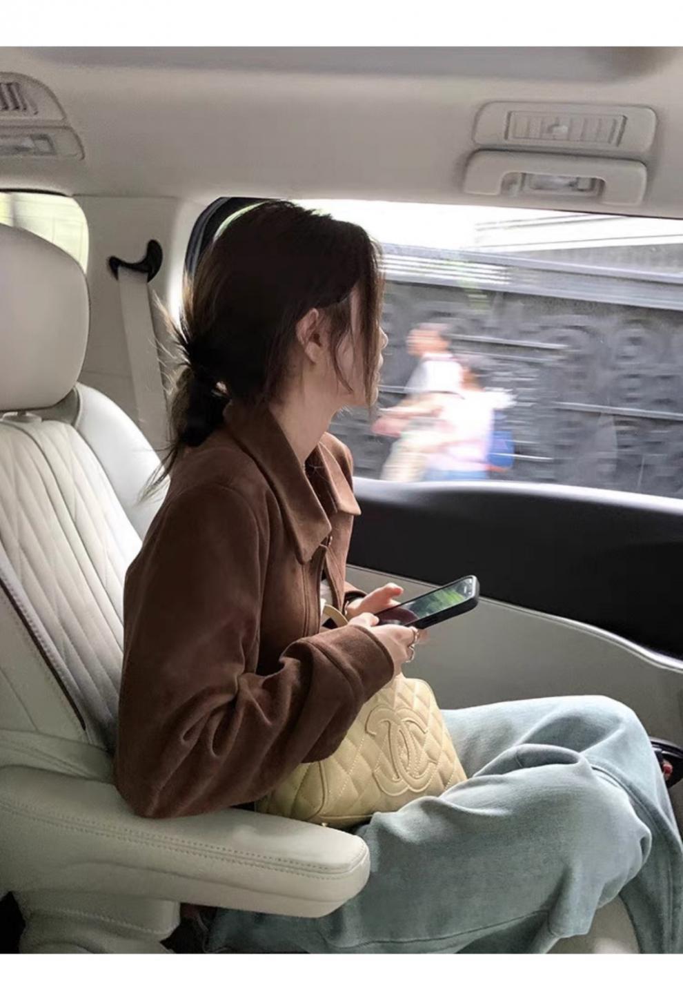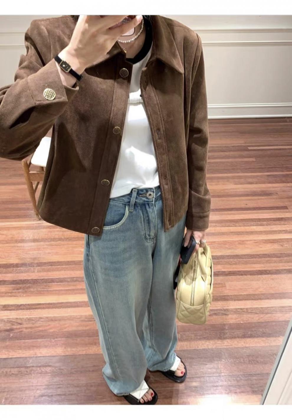다크 브라운 디어 스킨 양털 코트 여성 쇼트 2024 봄과 가을 한국 스타일 느슨한 캐주얼 레트로 짧은 재킷 탑스토어 가기
