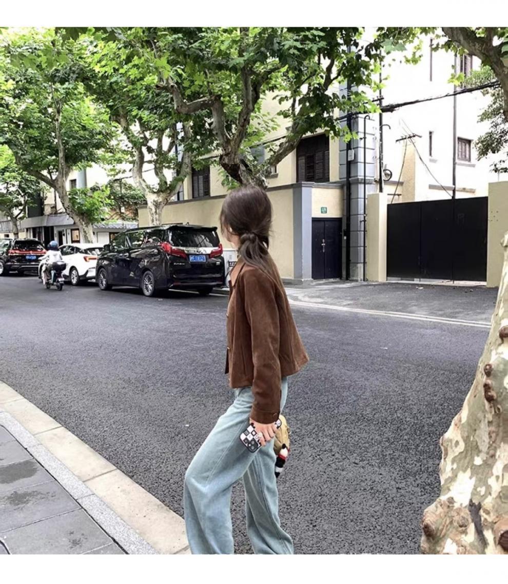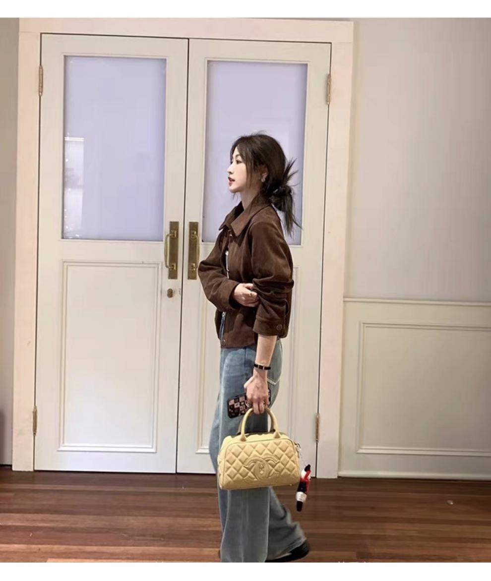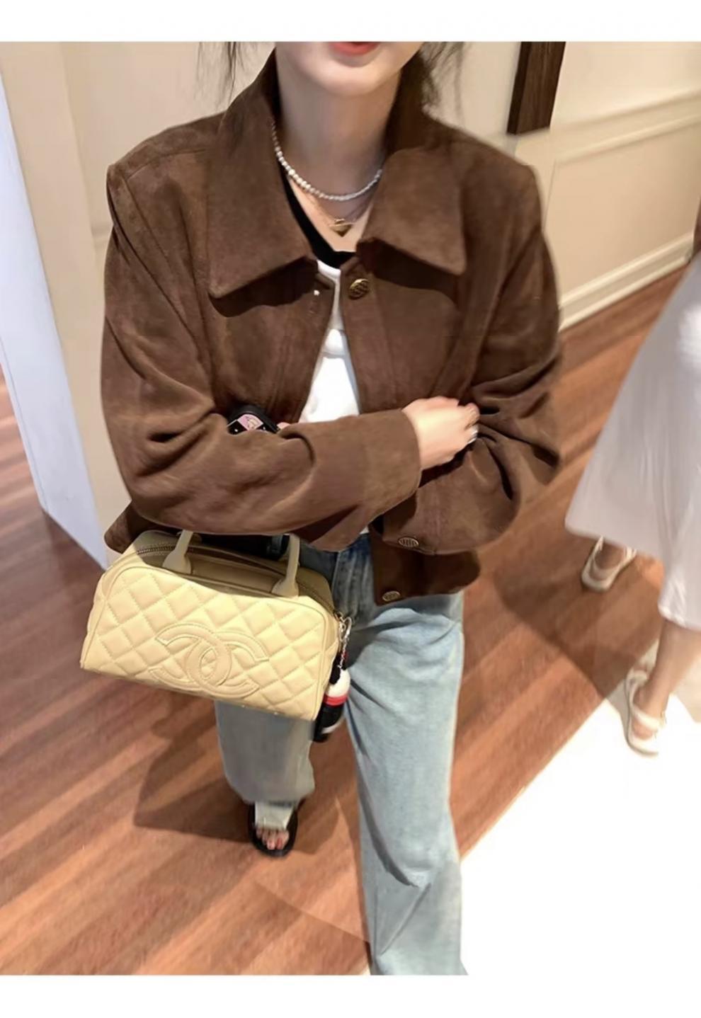 다크 브라운 디어 스킨 양털 코트 여성 쇼트 2024 봄과 가을 한국 스타일 느슨한 캐주얼 레트로 짧은 재킷 탑스토어 가기