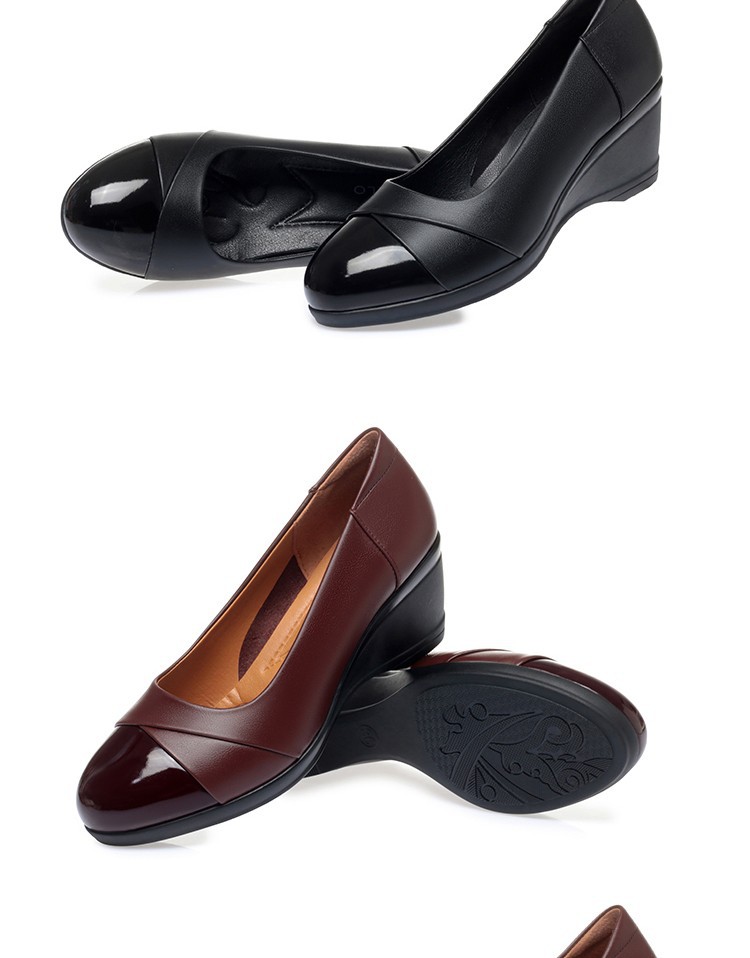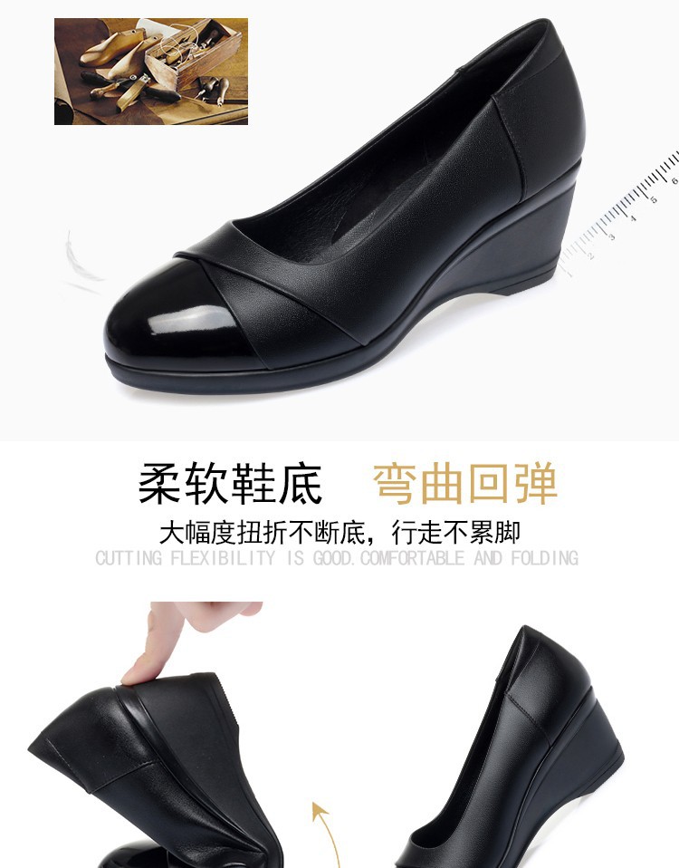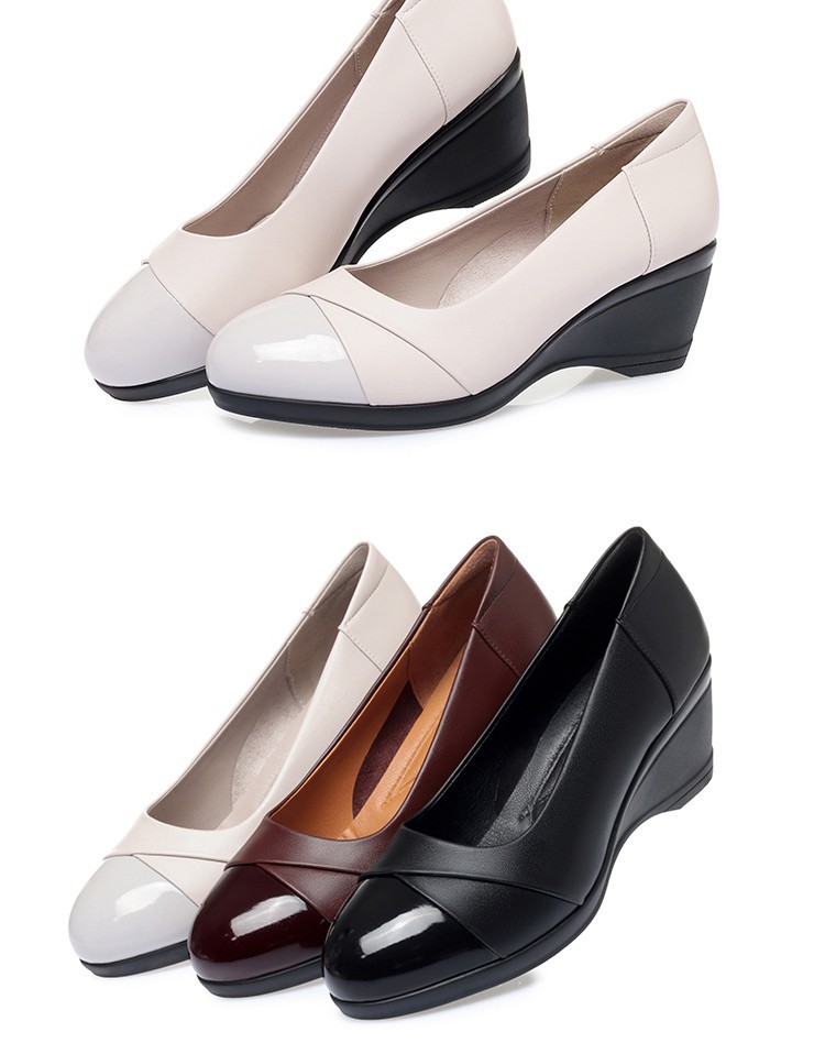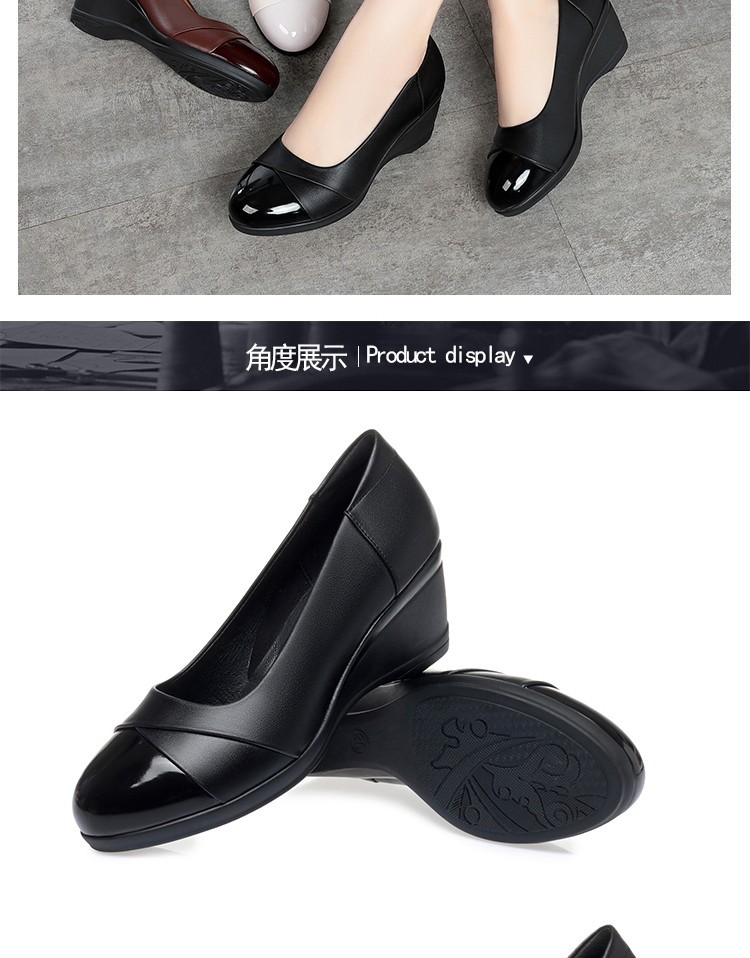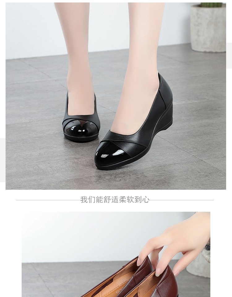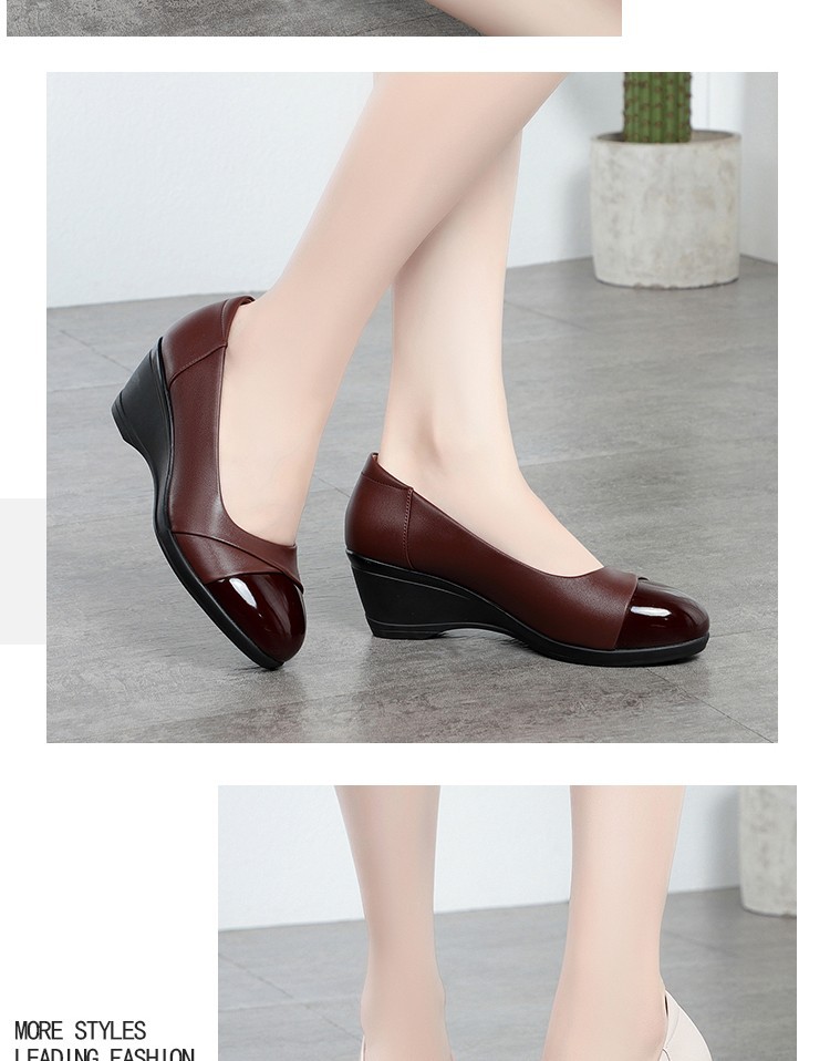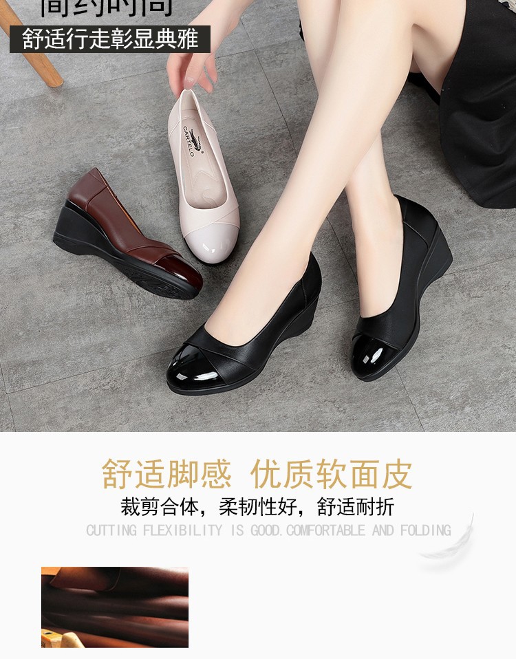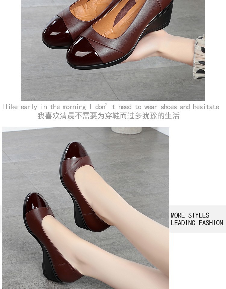 대외 무역 정품 가죽 싱글 신발 여성 신발 봄과 가을 2024 새로운 부드러운 가죽 중년 노인 어머니 신발 편안한 쐐기 가죽 신발스토어 가기