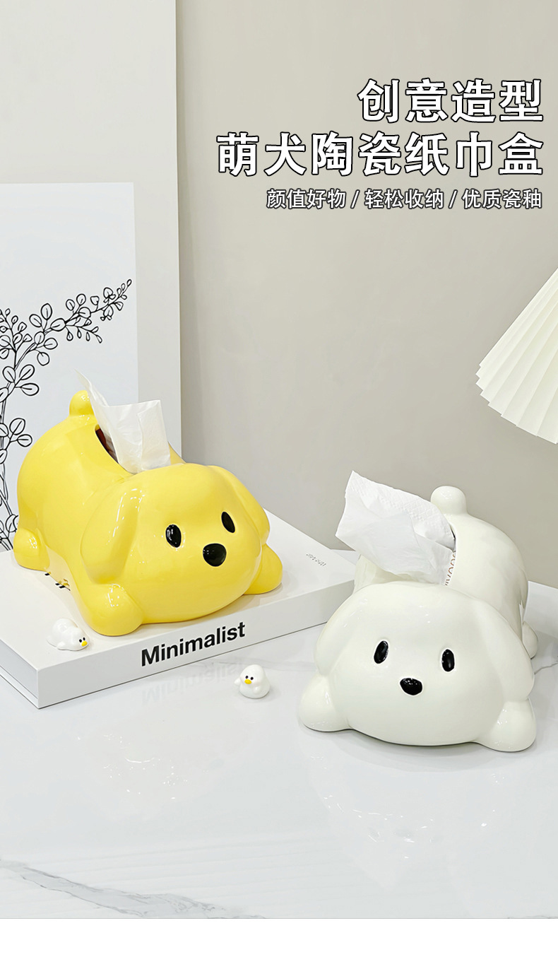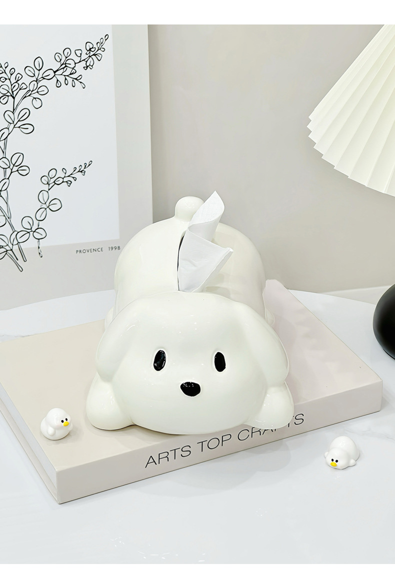 만화 귀여운 개 조직 상자 가정용 거실 커피 테이블 냅킨 종이 상자 세라믹 강아지 종이 상자 데스크탑 장식 장식품