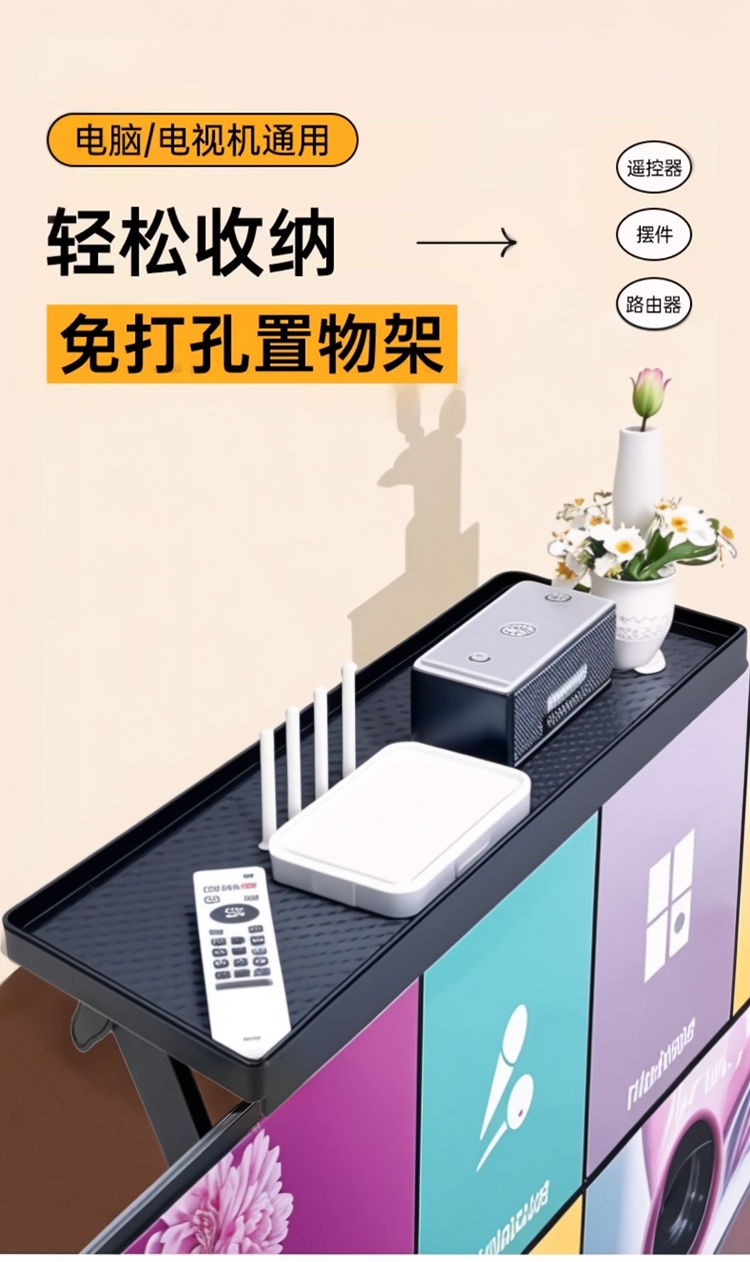 TV 상단 셋톱 박스 랙 모니터 상단 펀치 없는 라우터 보관함 브래킷 브래킷스토어 가기