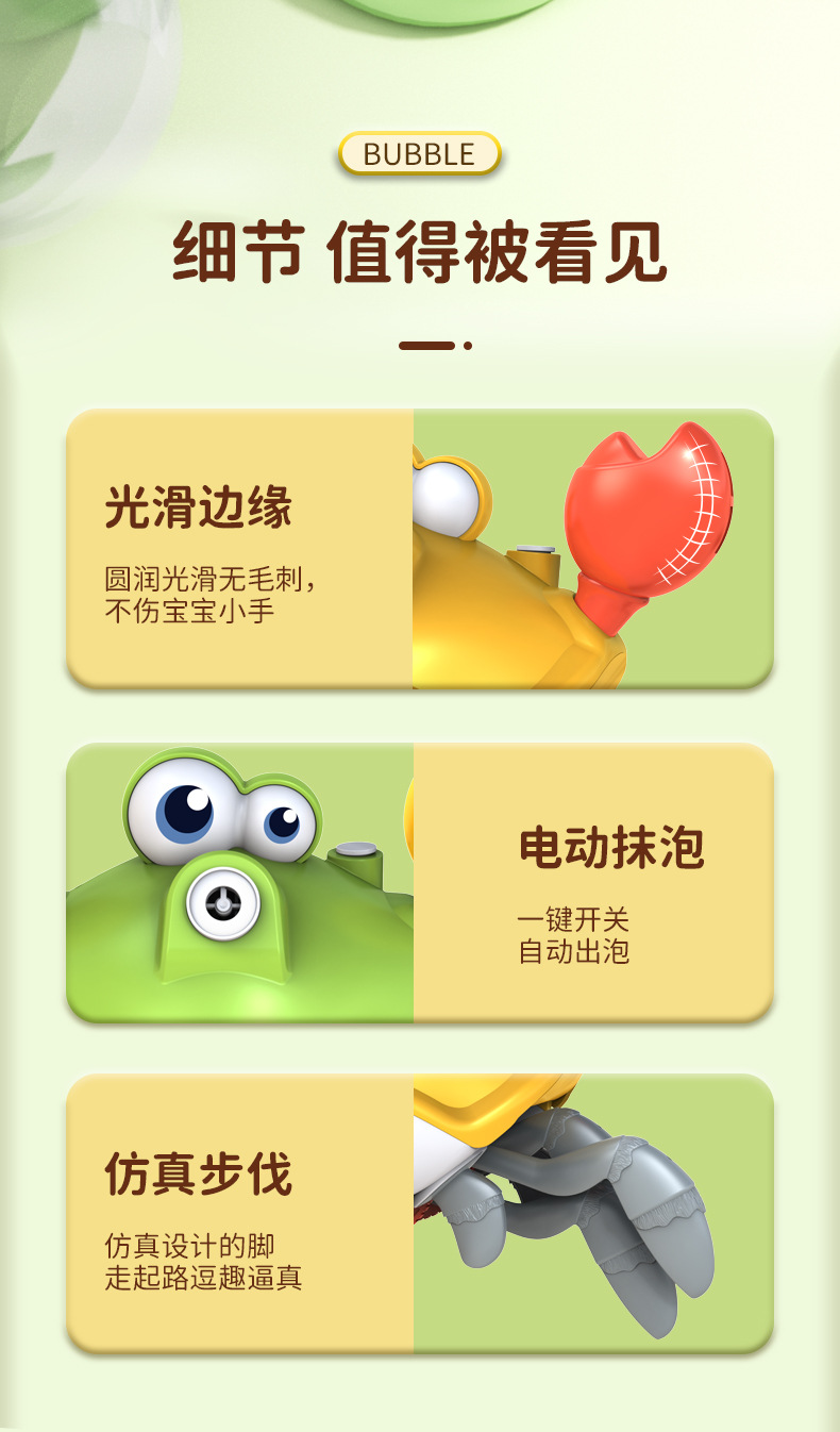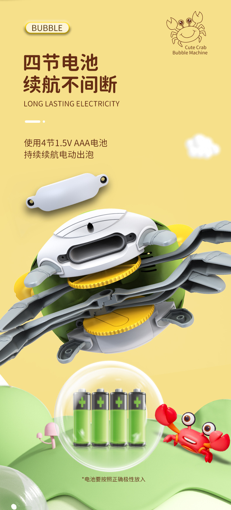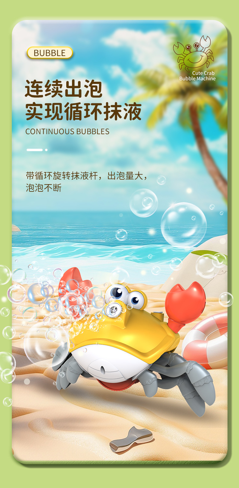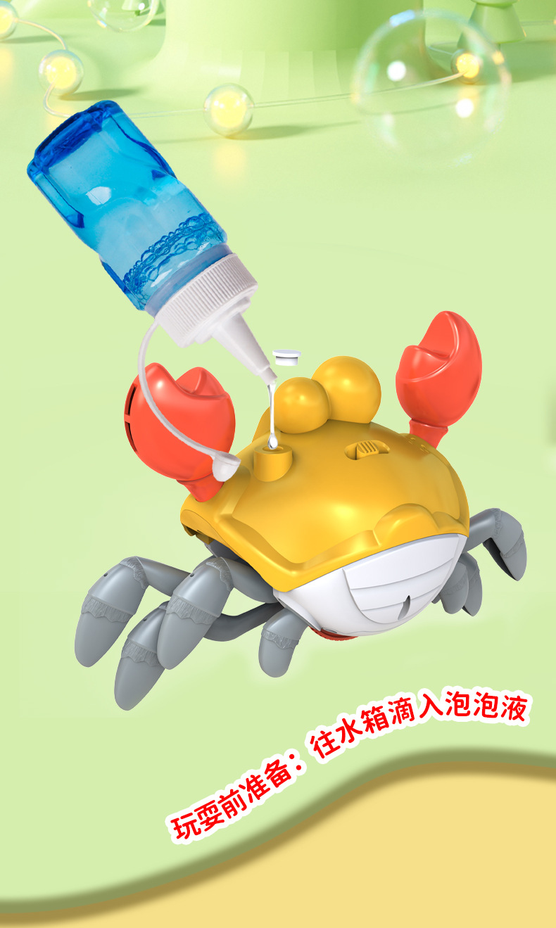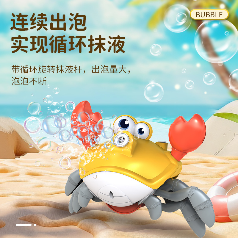국경 간 신제품 전기 거품 부는 소리와 가벼운 음악 게는 야외 해변 축제 파티 어린이 장난감을 탈출합니다