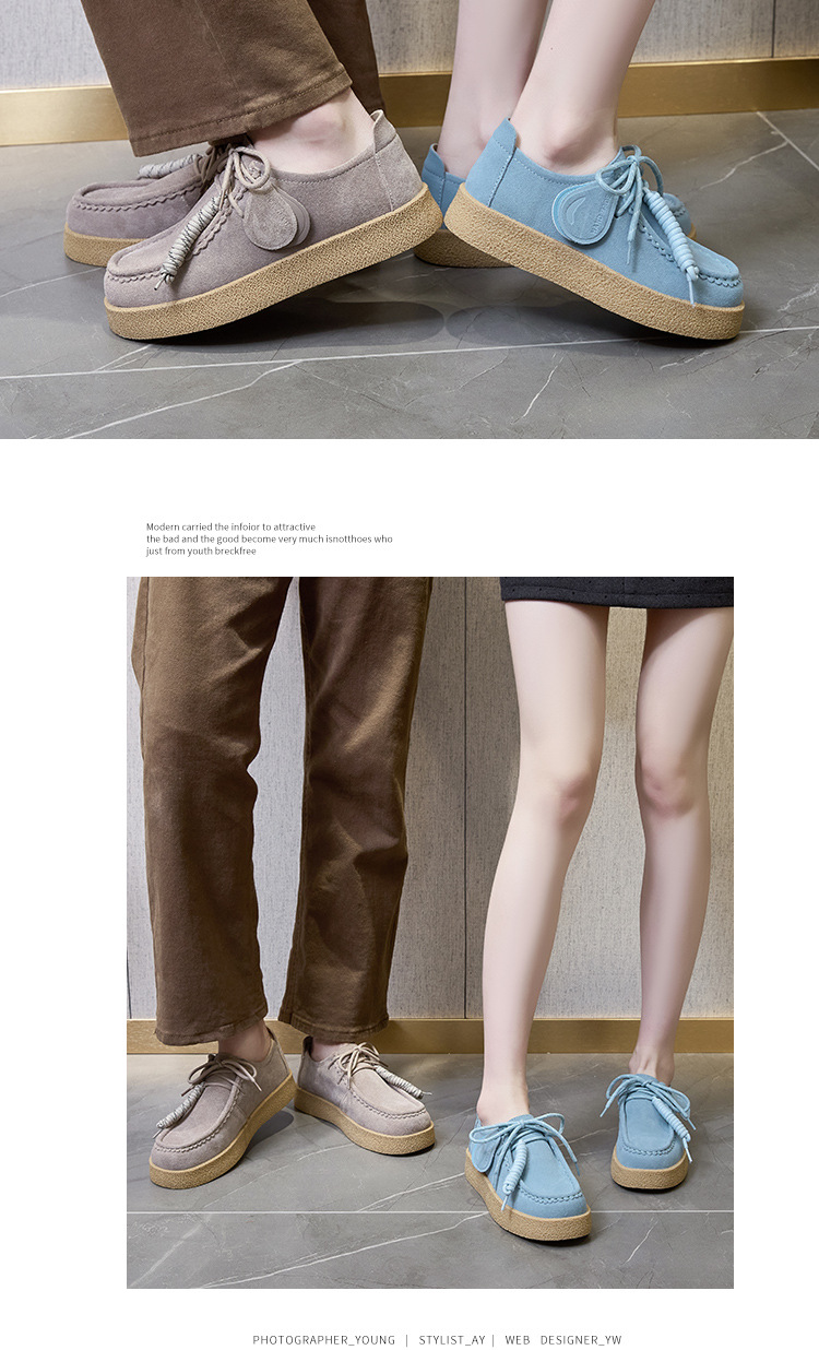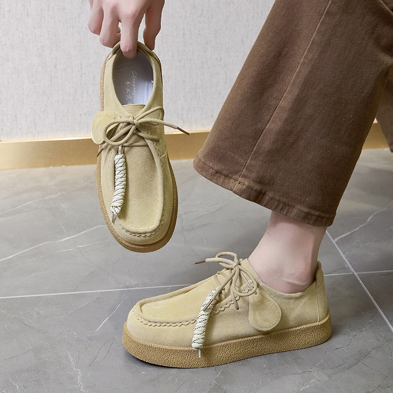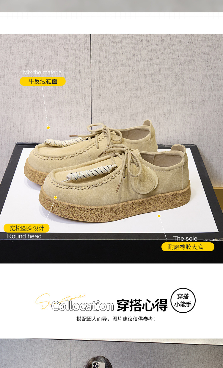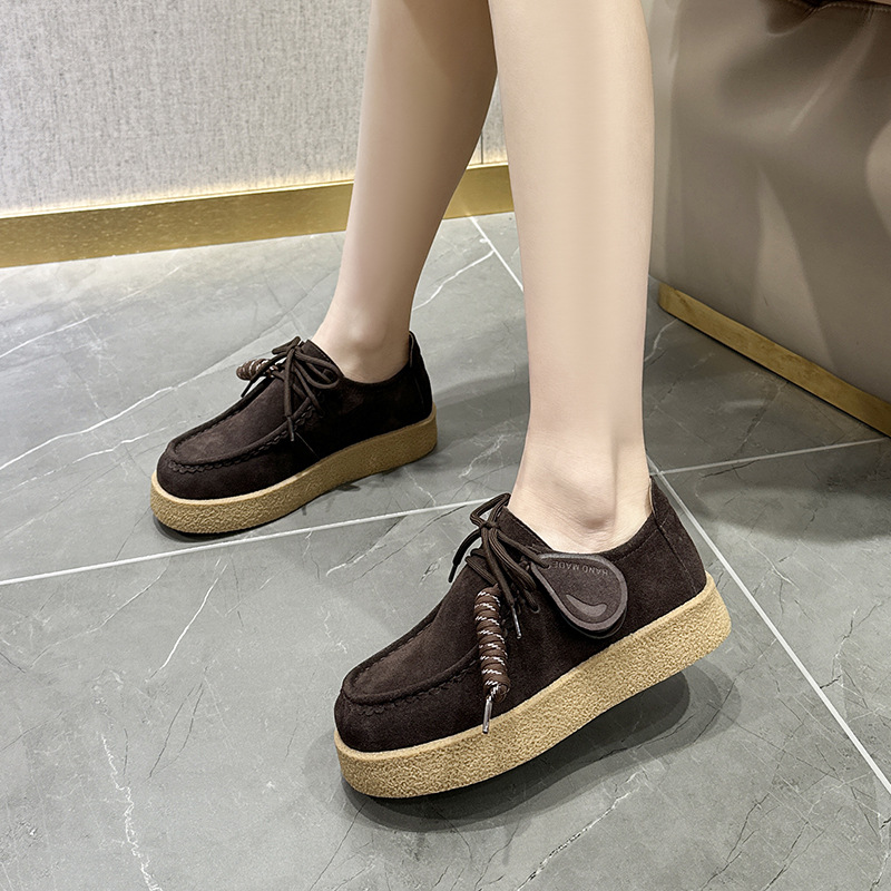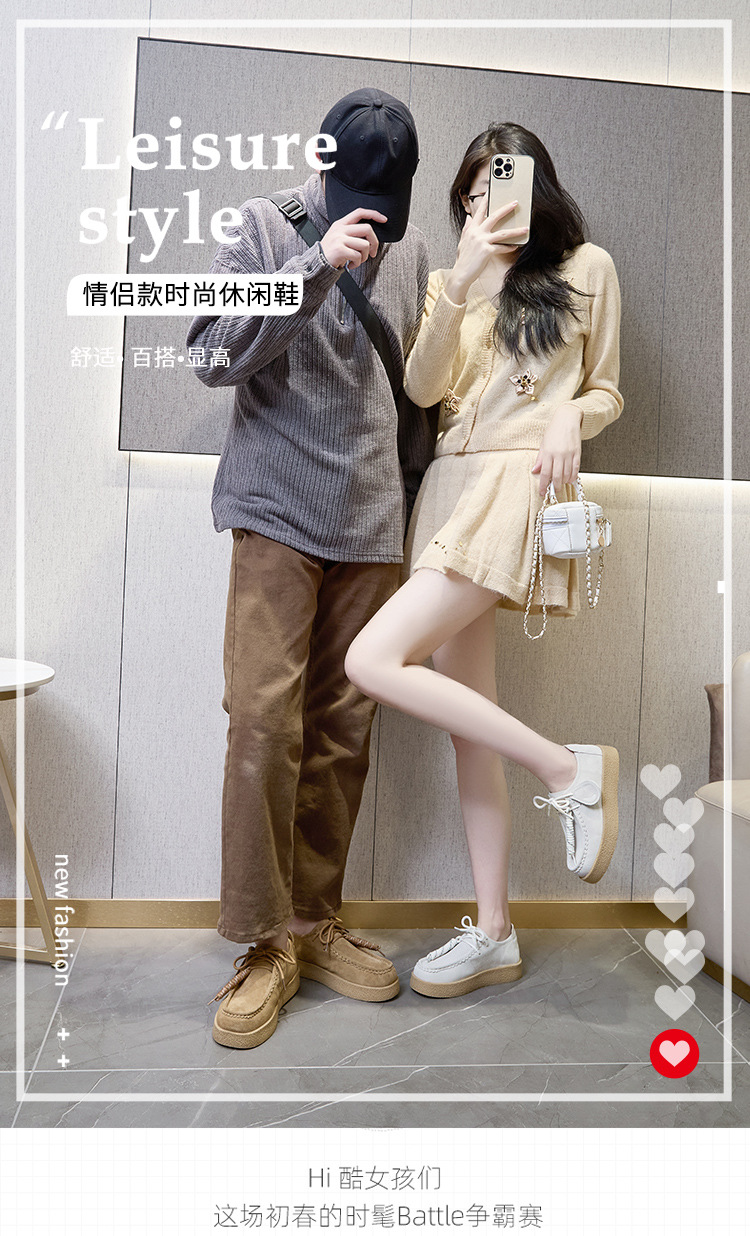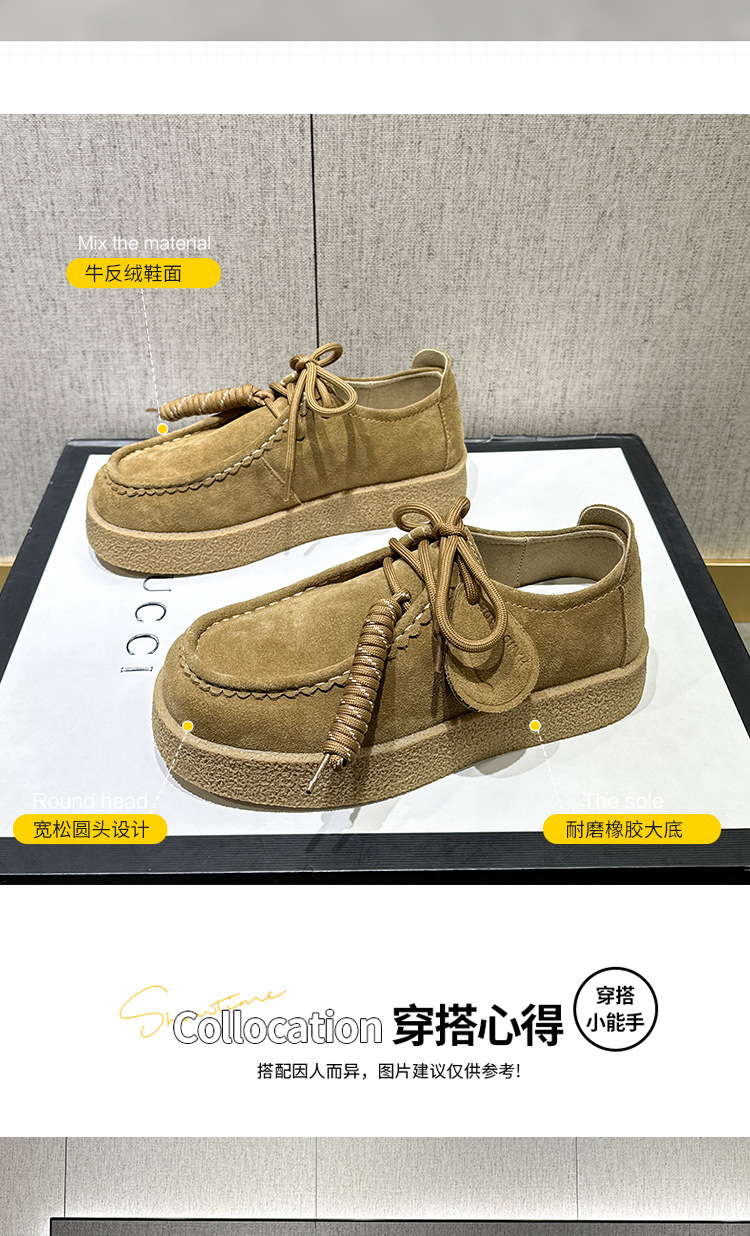 남성과 여성을위한 커플 스타일 두꺼운 밑창 플랫폼 거루 신발 2025 새로운 라운드 발가락 레이스 업 로퍼 영국 다목적 작은 가죽 신발스토어 가기
