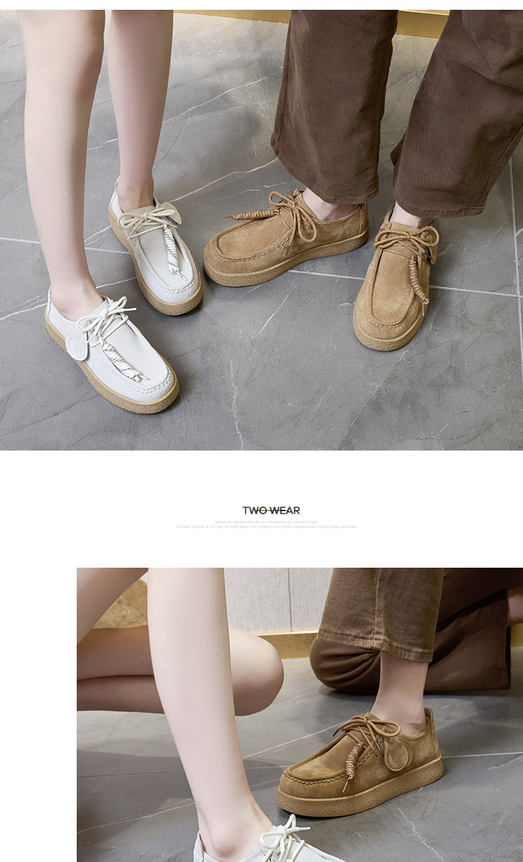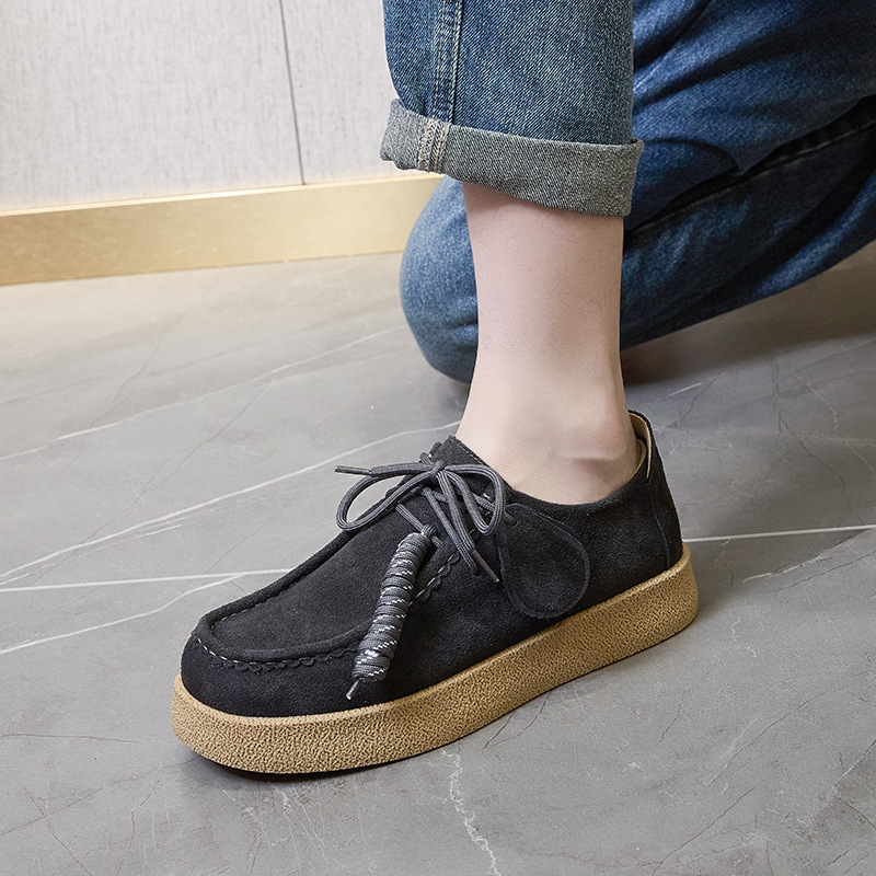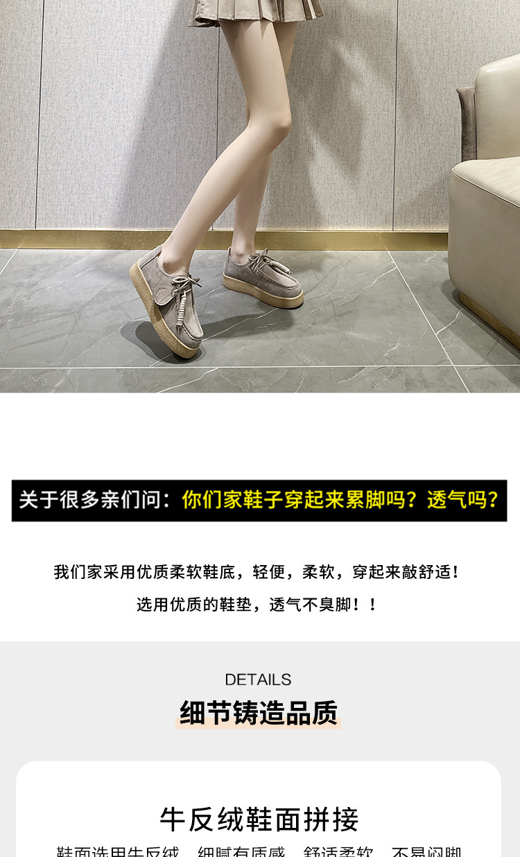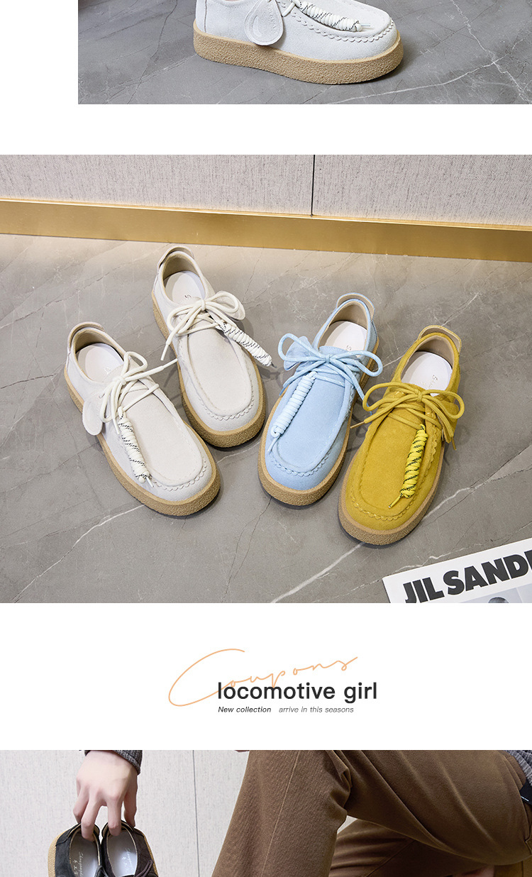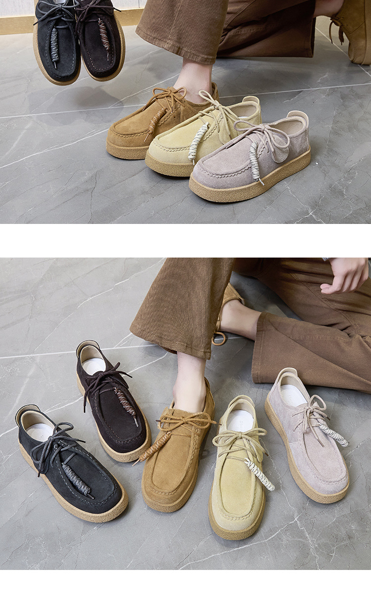 남성과 여성을위한 커플 스타일 두꺼운 밑창 플랫폼 거루 신발 2025 새로운 라운드 발가락 레이스 업 로퍼 영국 다목적 작은 가죽 신발스토어 가기