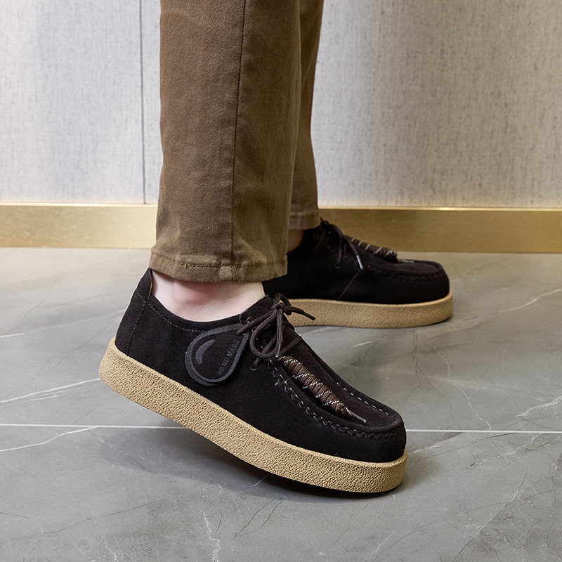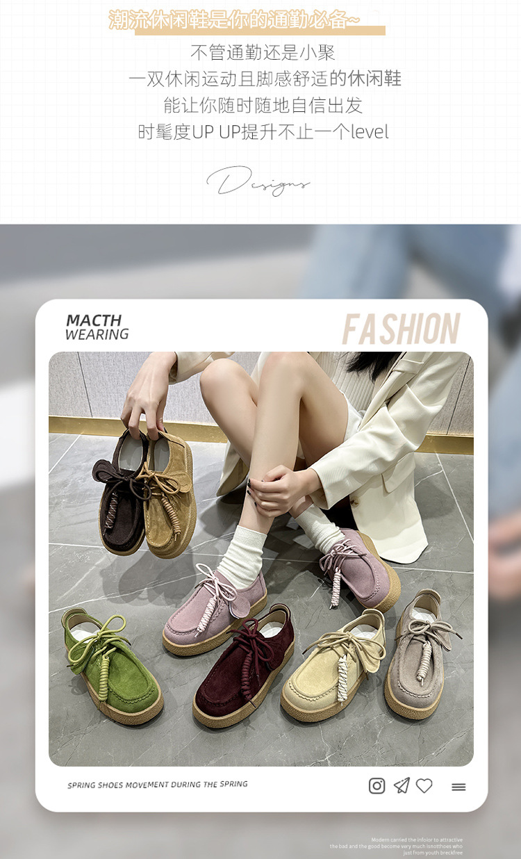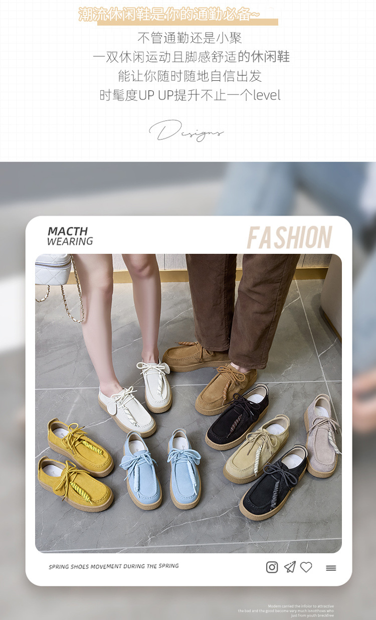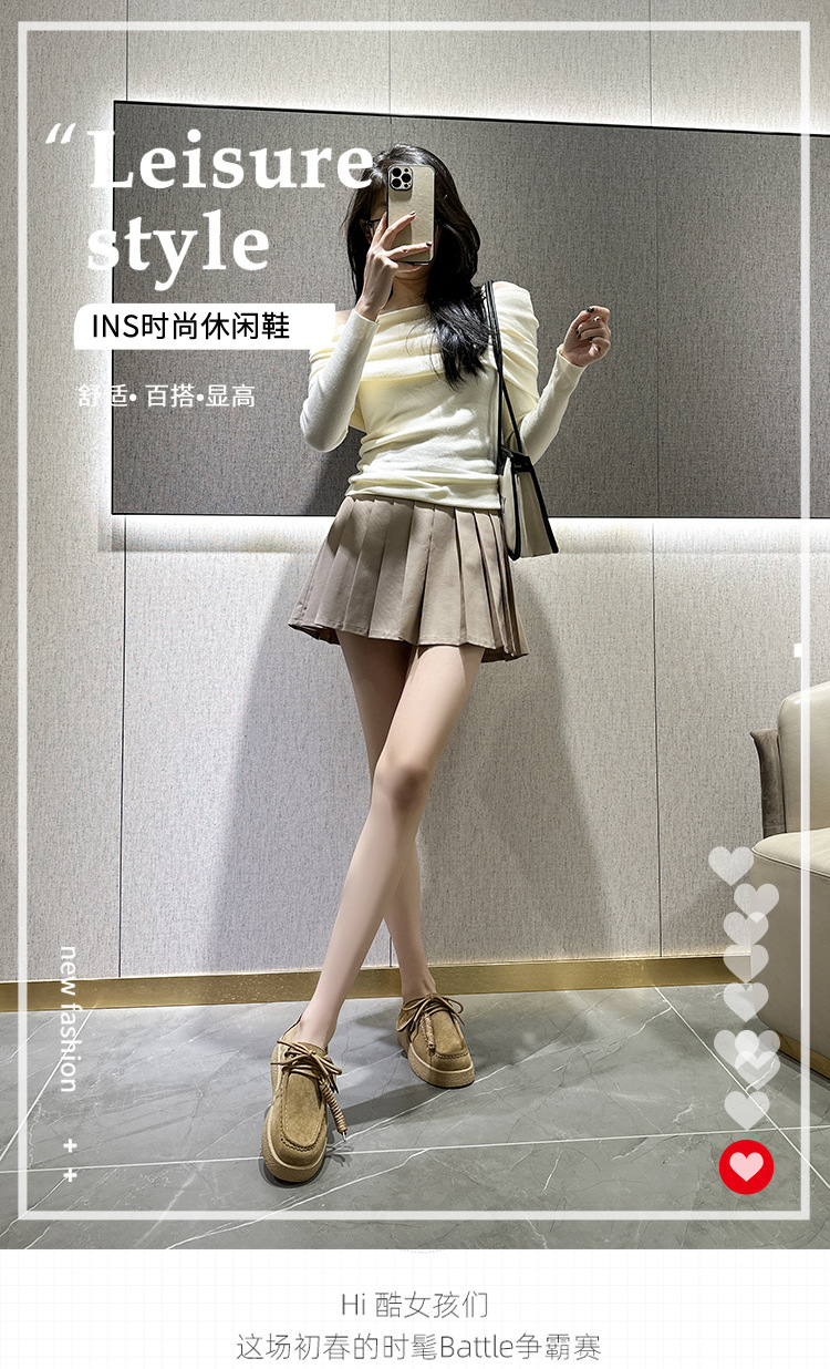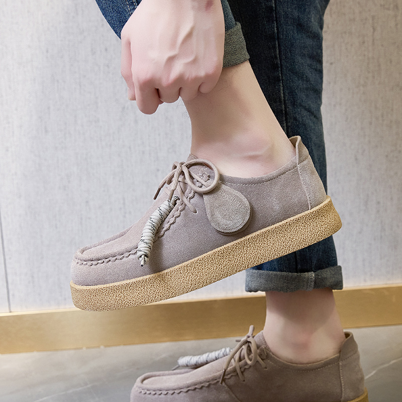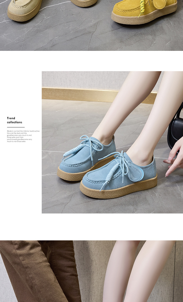남성과 여성을위한 커플 스타일 두꺼운 밑창 플랫폼 거루 신발 2025 새로운 라운드 발가락 레이스 업 로퍼 영국 다목적 작은 가죽 신발스토어 가기