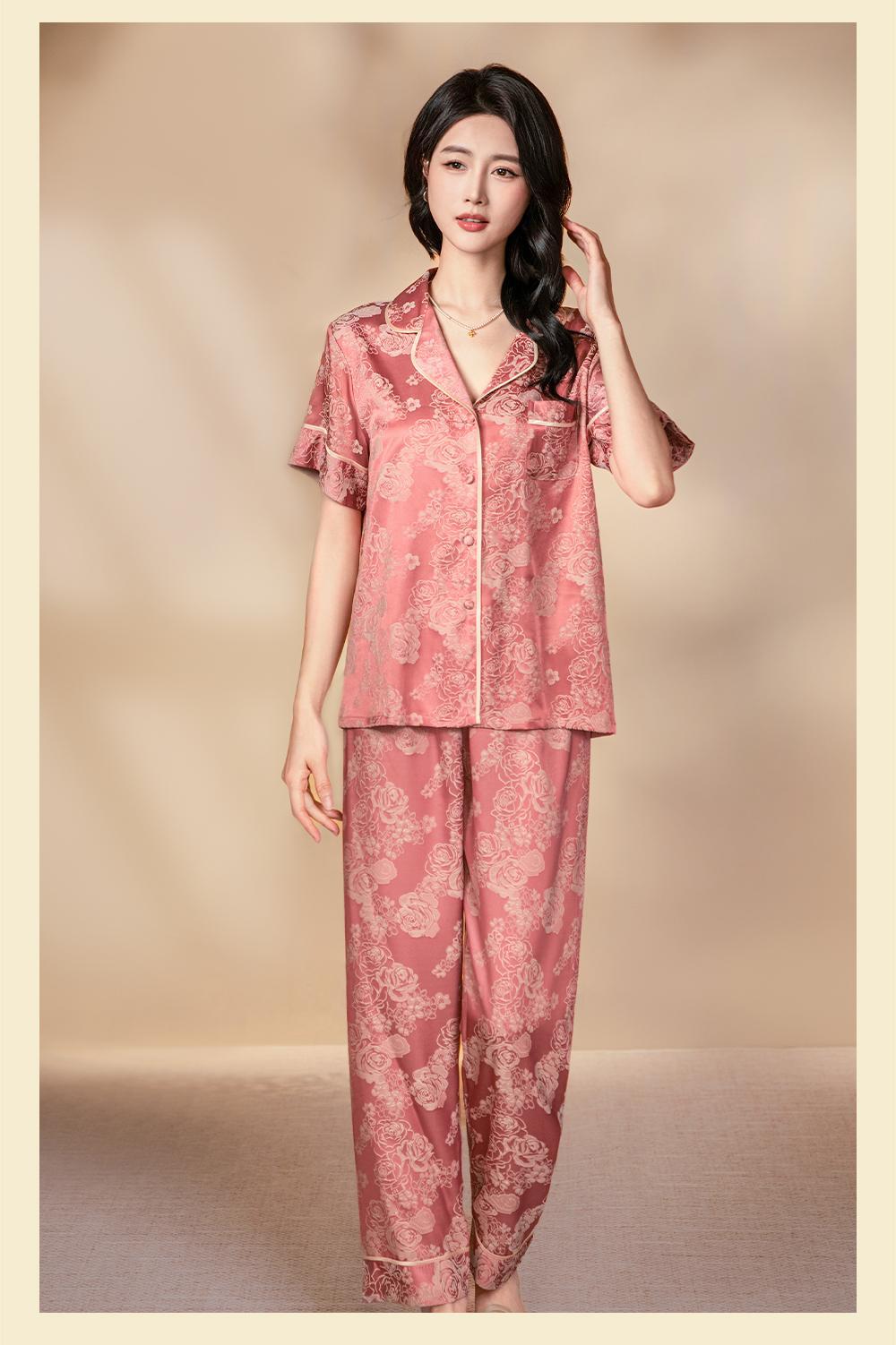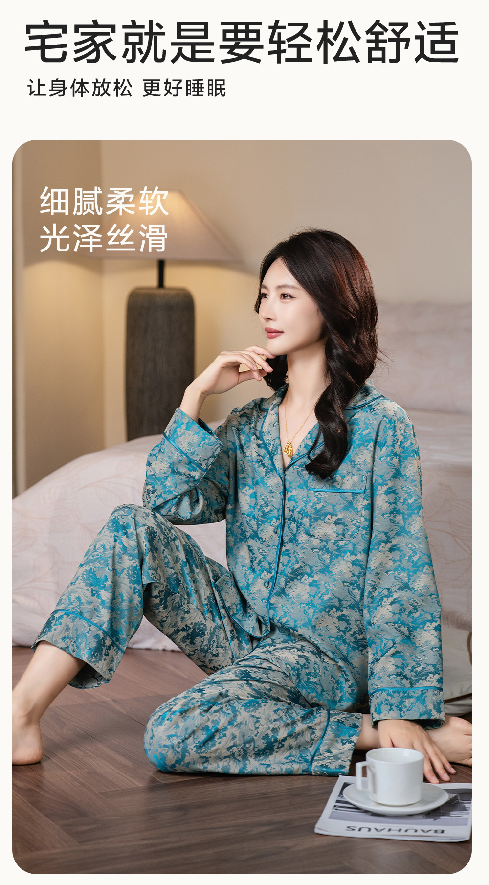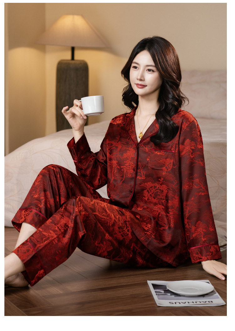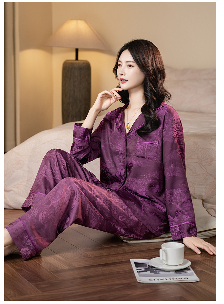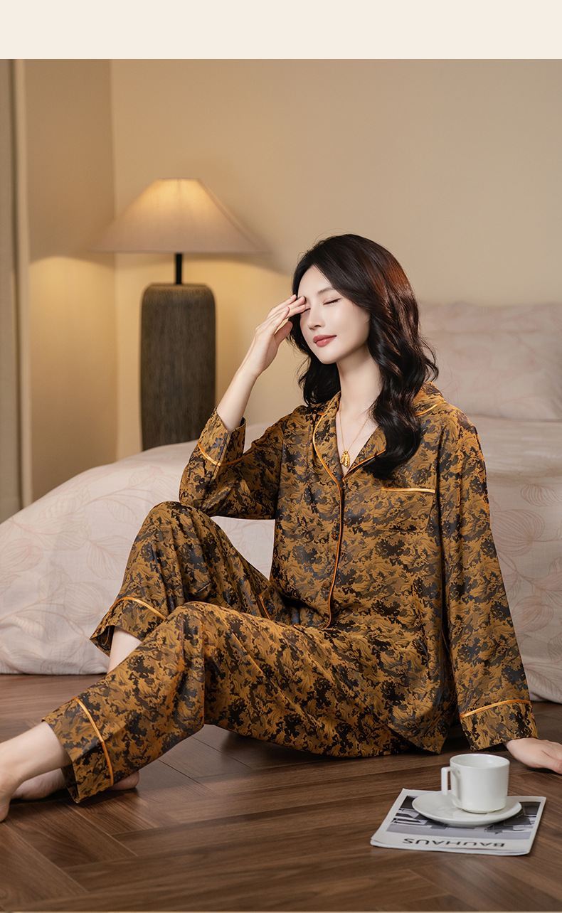 다빈치 코드와 같은 스타일의 여성용 신상품 카라 카디건 긴팔 홈웨어 세트 봄 가을 잠옷 아이스 실크 세트스토어 가기