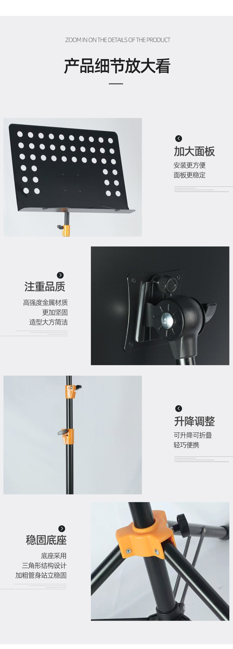 콘서트 활동 기타 바이올린 리프팅 음악 테이블 랙을위한 편리한 음악 테이블 접이식 리프팅 큰 음악 테이블 랙