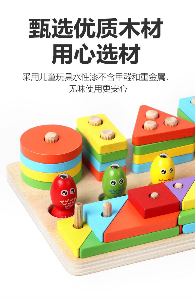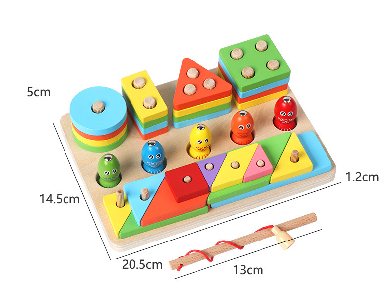 목조 어린이 몬테소리 교육 원조 4 대 1 낚시 세트 칼럼 유치원 기하학적 매칭 교육 건물 블록 장난감