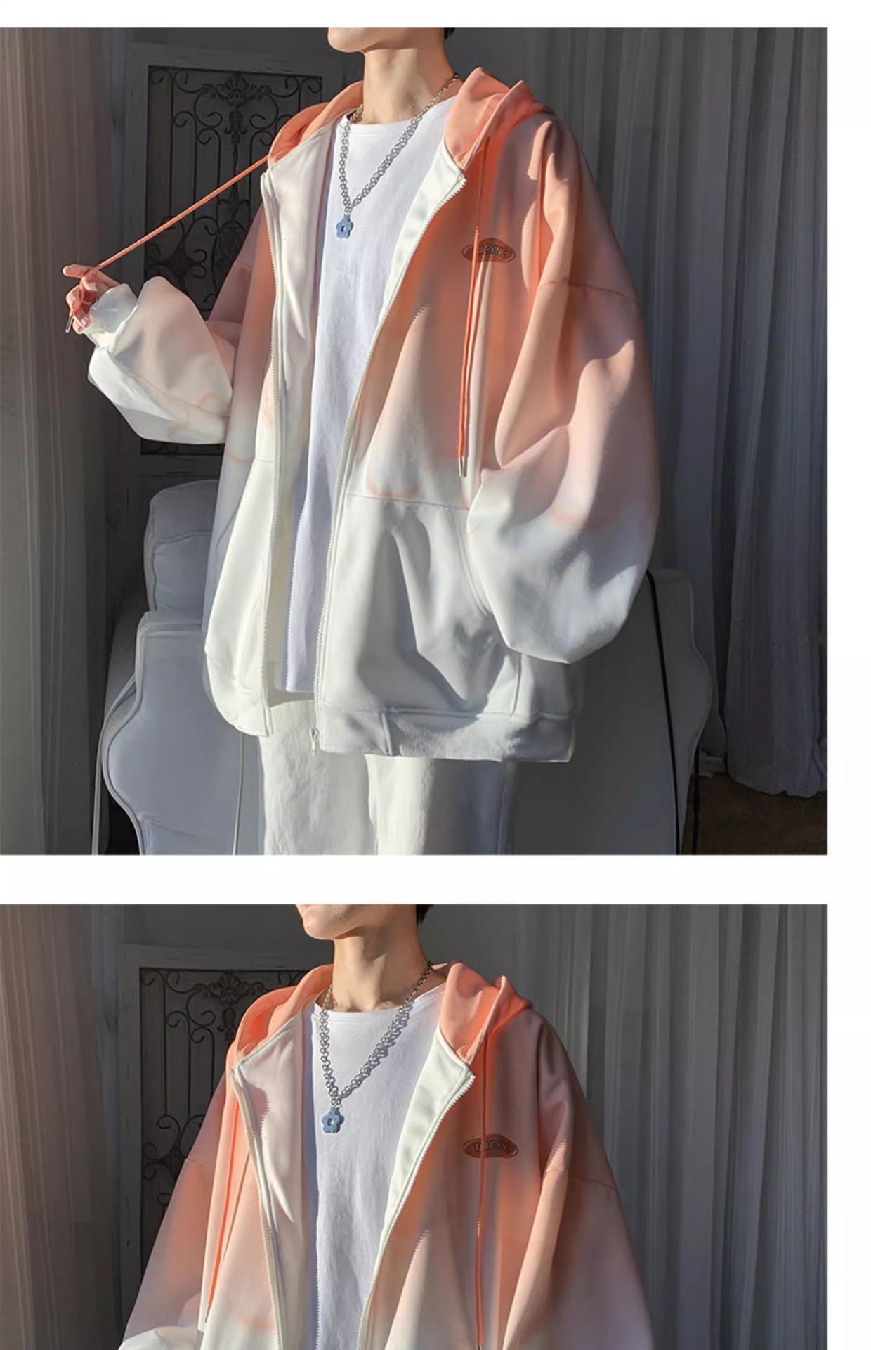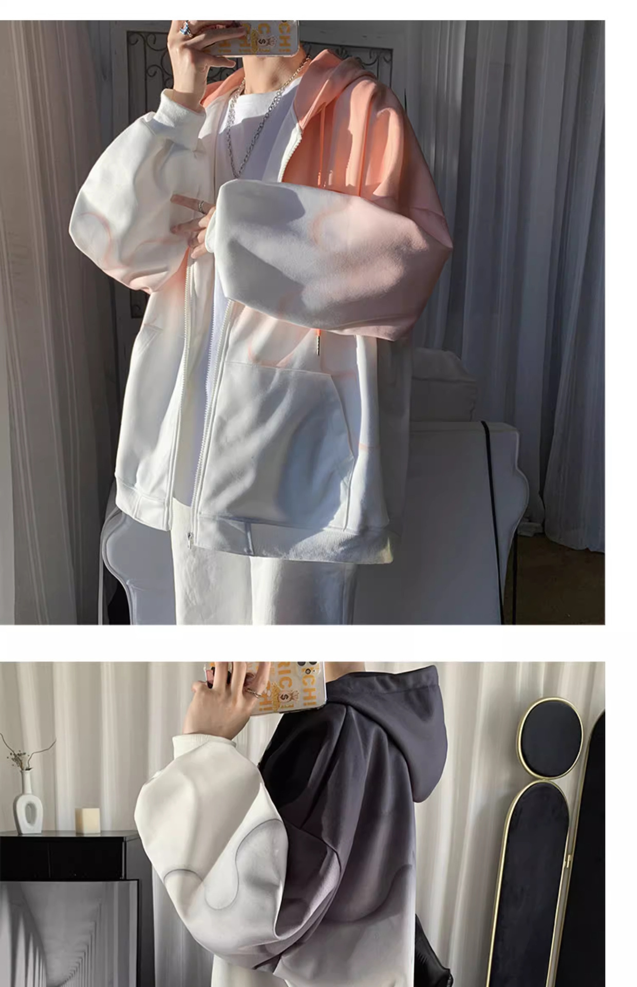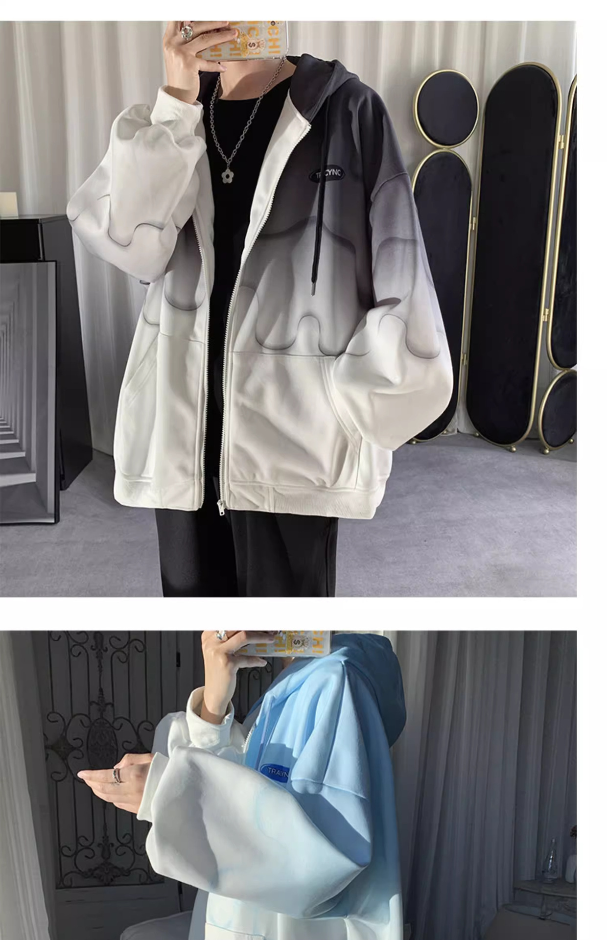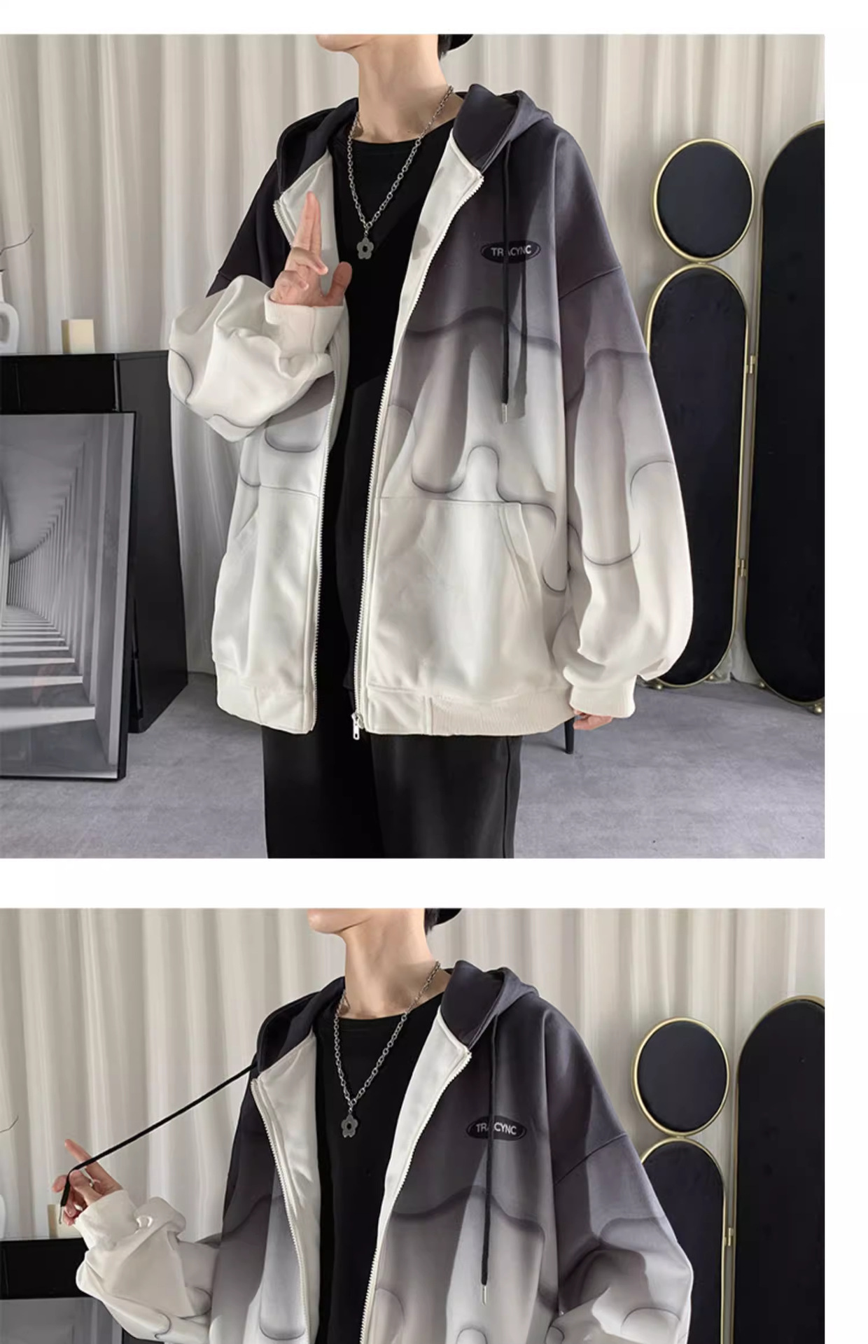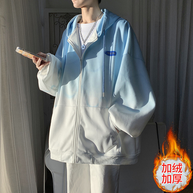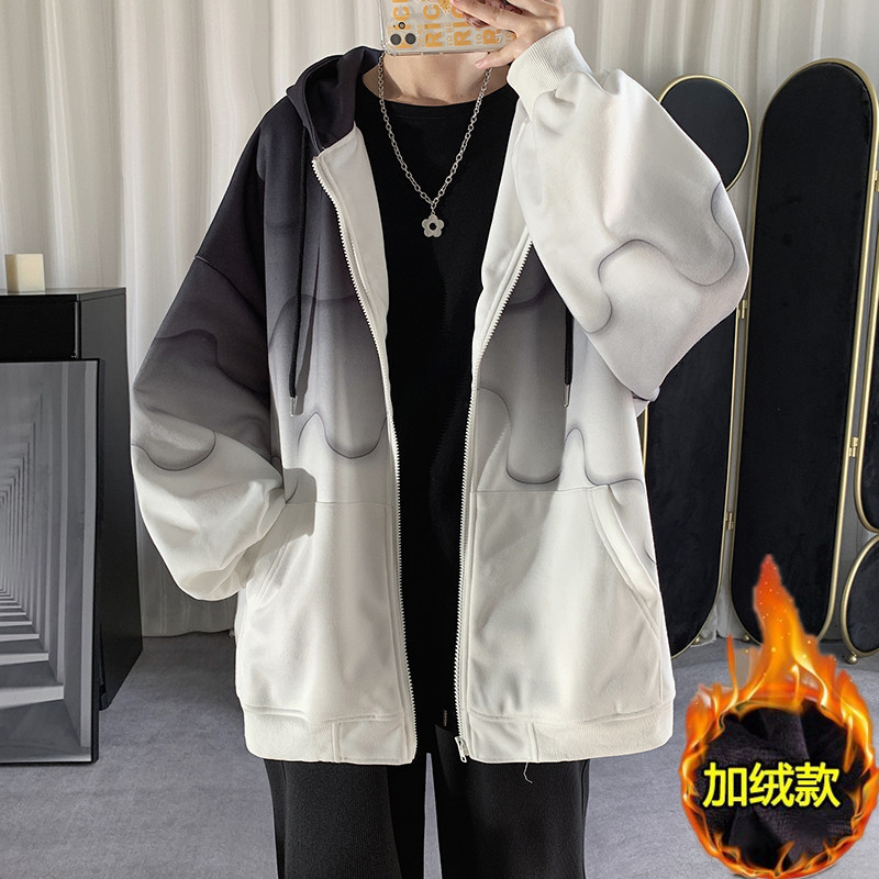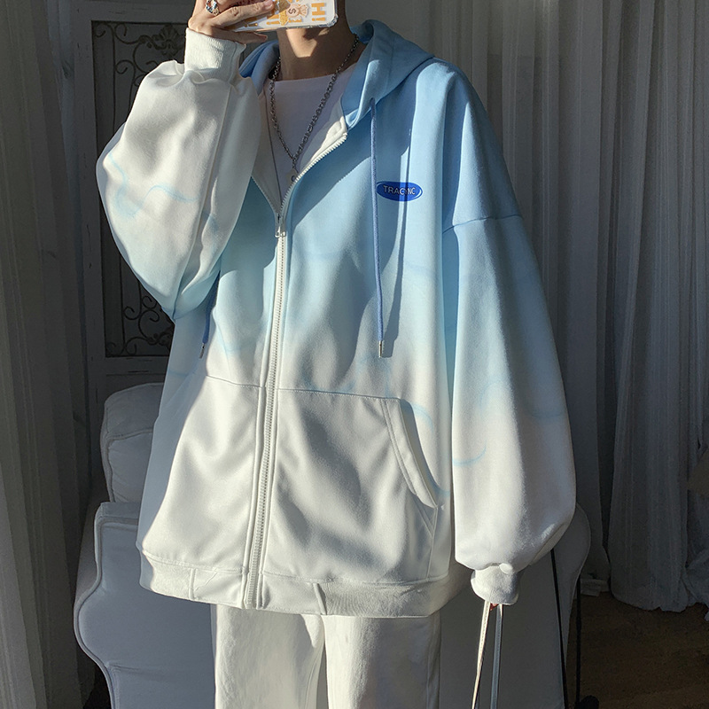 후드 스웨터 남자의 봄과 가을 트렌디 한 브랜드 지퍼 인 트렌디 한 느슨한 올 매치 탑 옷을 입은 그라디언트 카디건 재킷스토어 가기